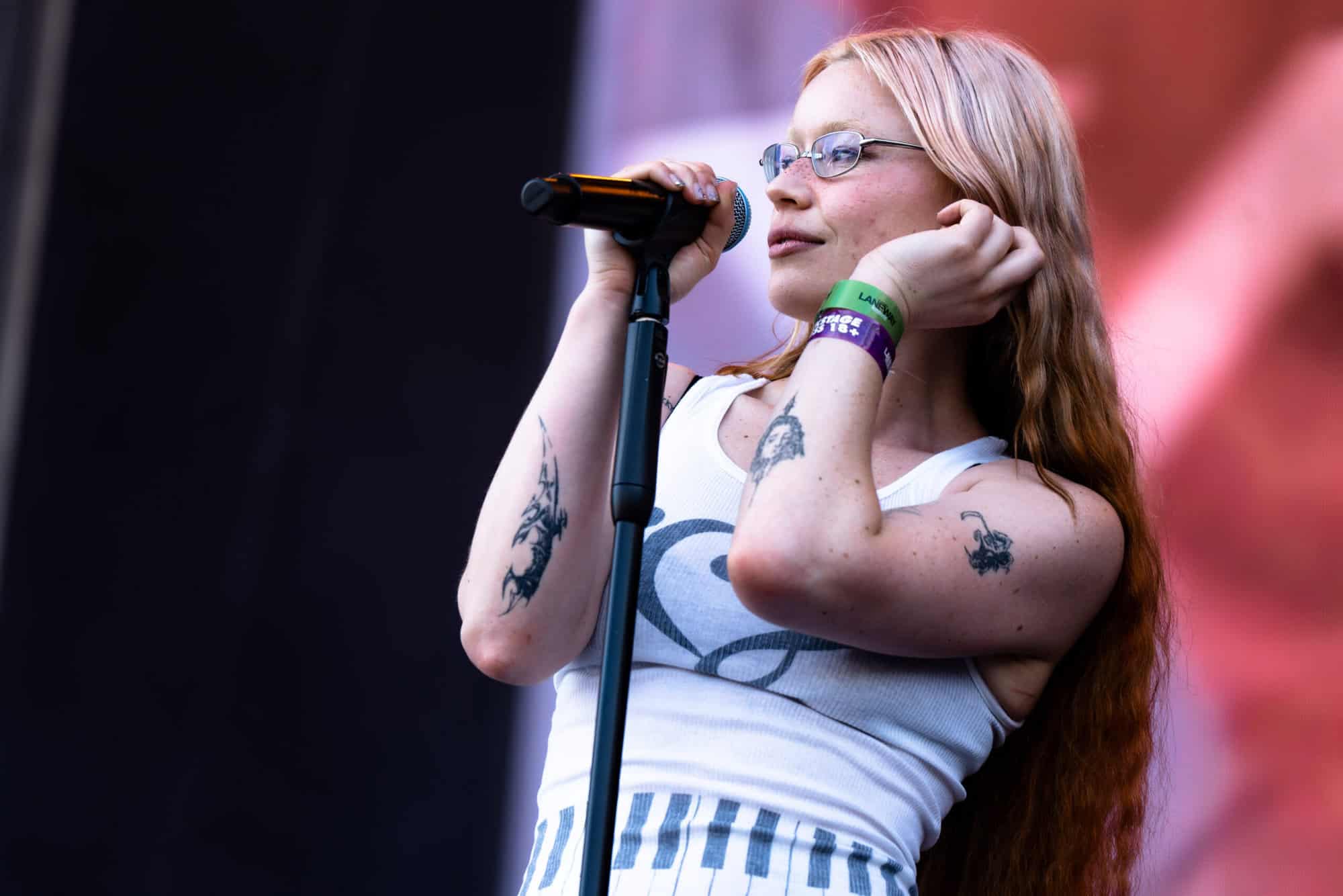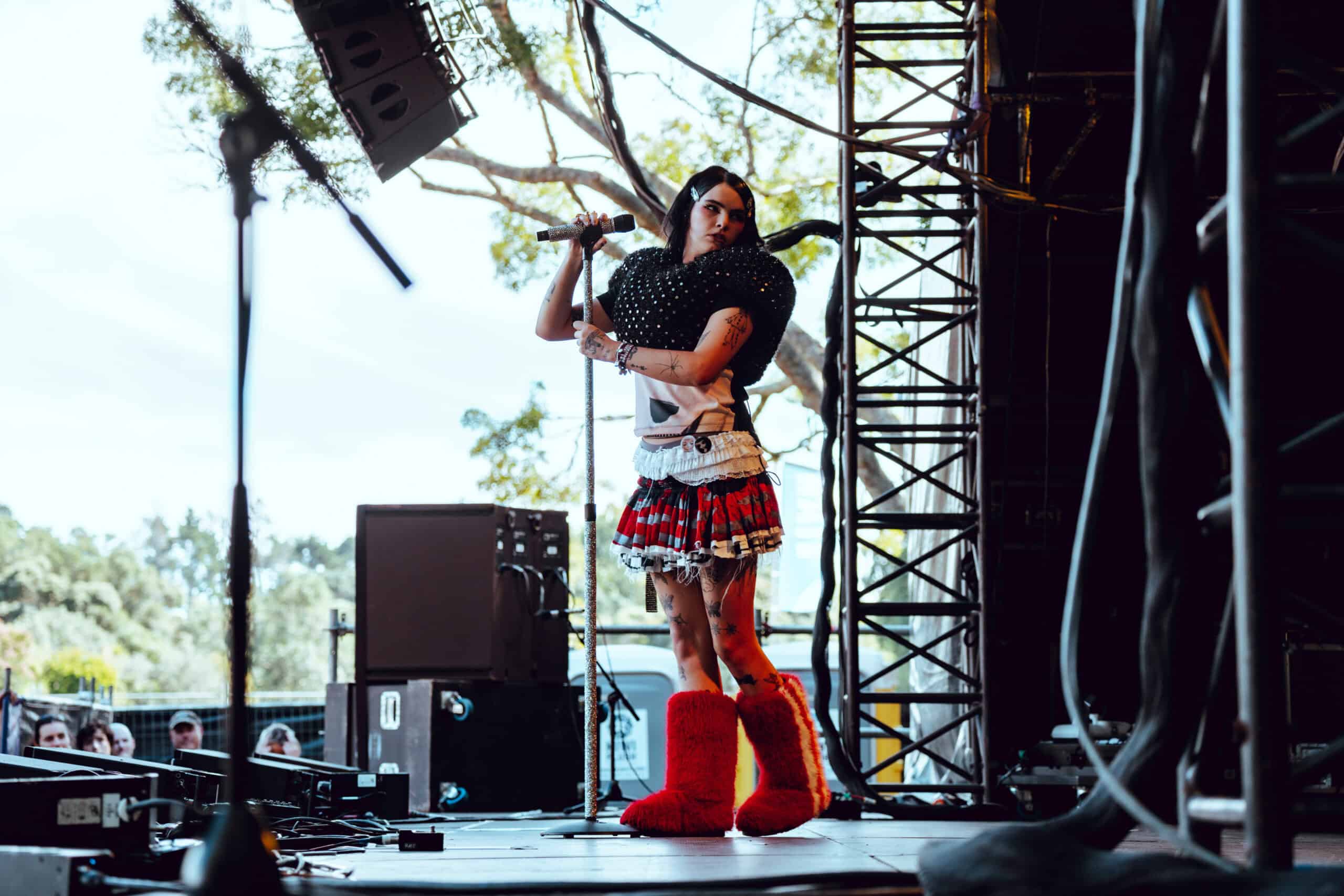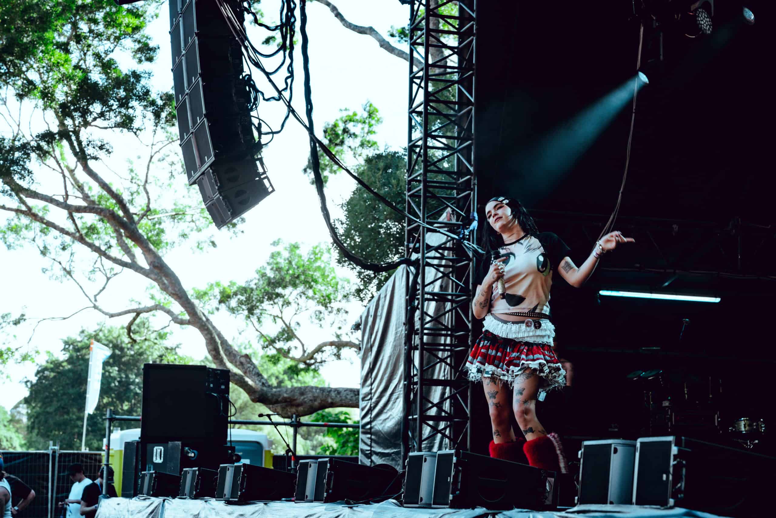 The last time I saw her at Laneway was pre-Supalonely TikTok explosion. Back then, her live show had a brighter aesthetic and a larger live band. Now, Benee has embraced a darker, weirder intensity — and I’m here for it.