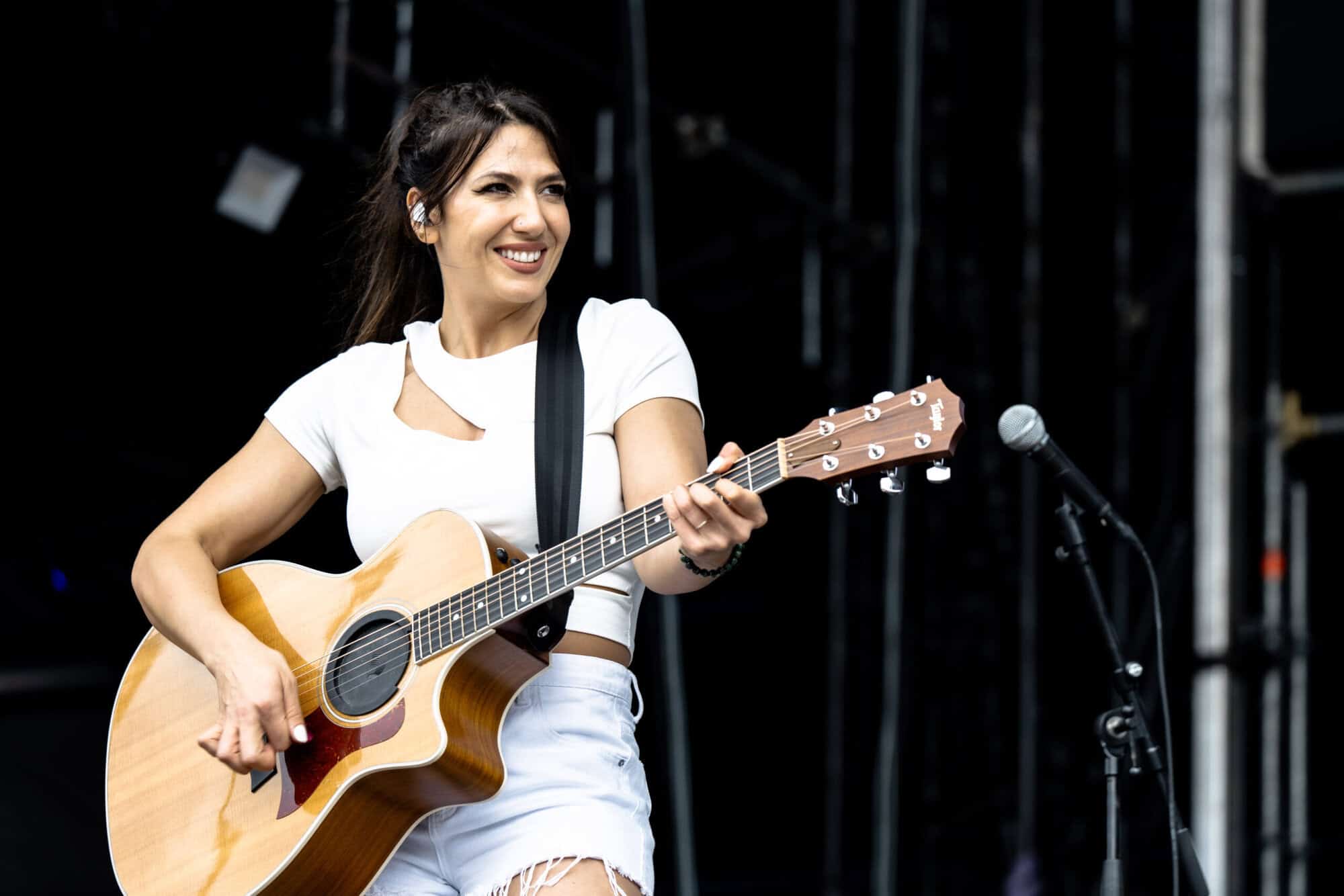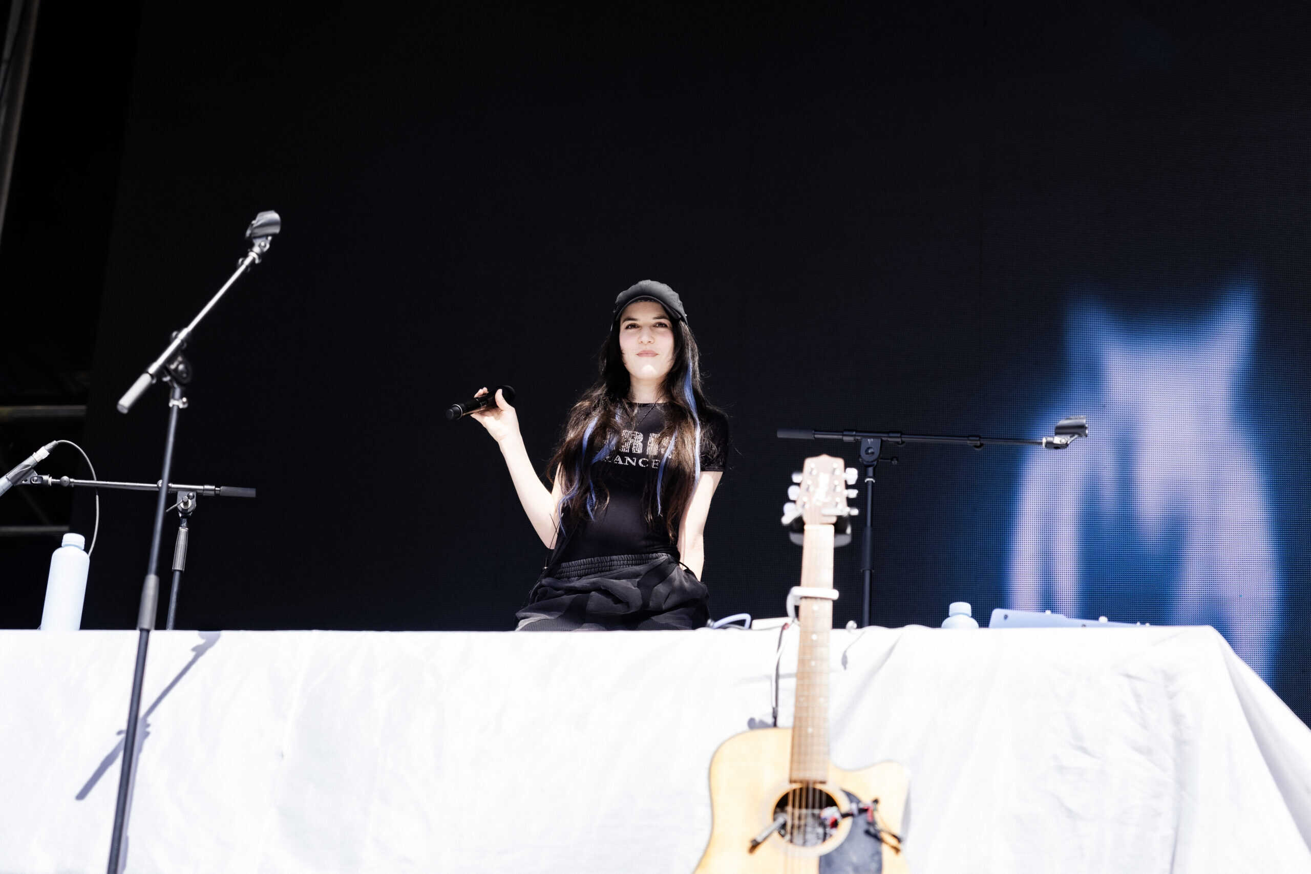 Cuban-American songwriter Gigi Perez was an excellent early afternoon highlight on the main stage. Clad in double denim, she delivered a set of full-bodied acoustic pop rockers. Her sense of melody was immediate — songs I’d never heard felt familiar by the second chorus. The delivery was encouraging and uplifting despite lyrical heaviness.