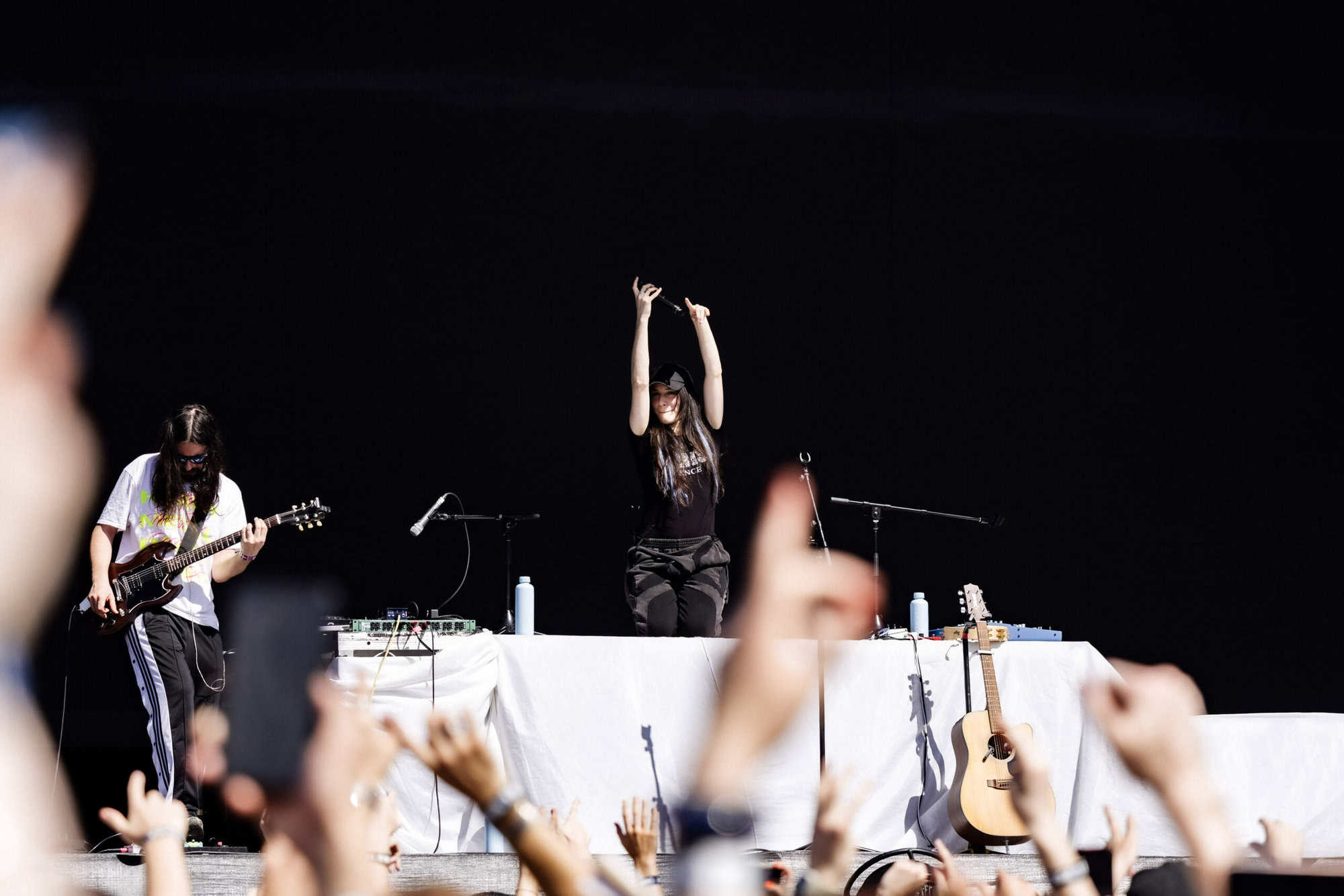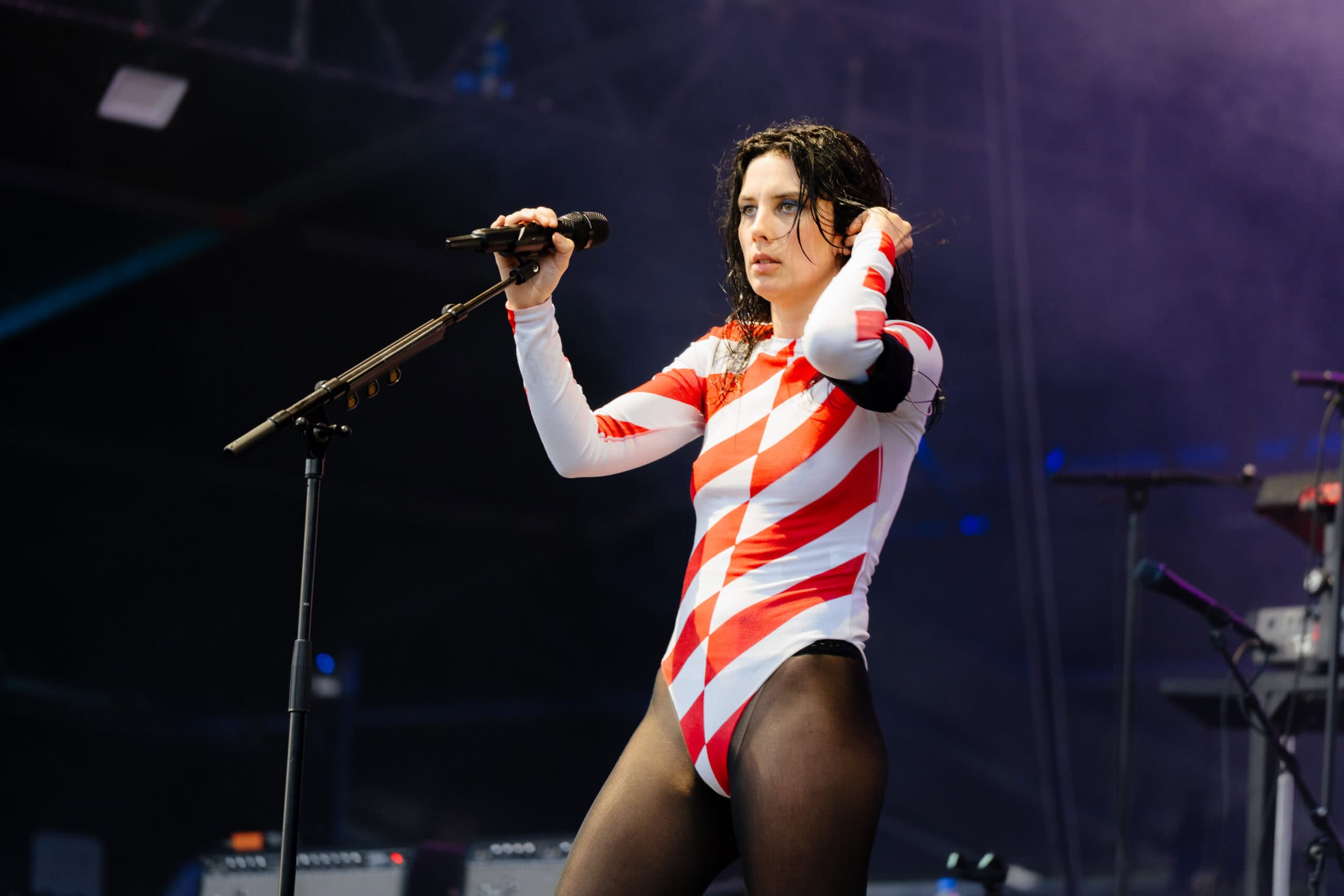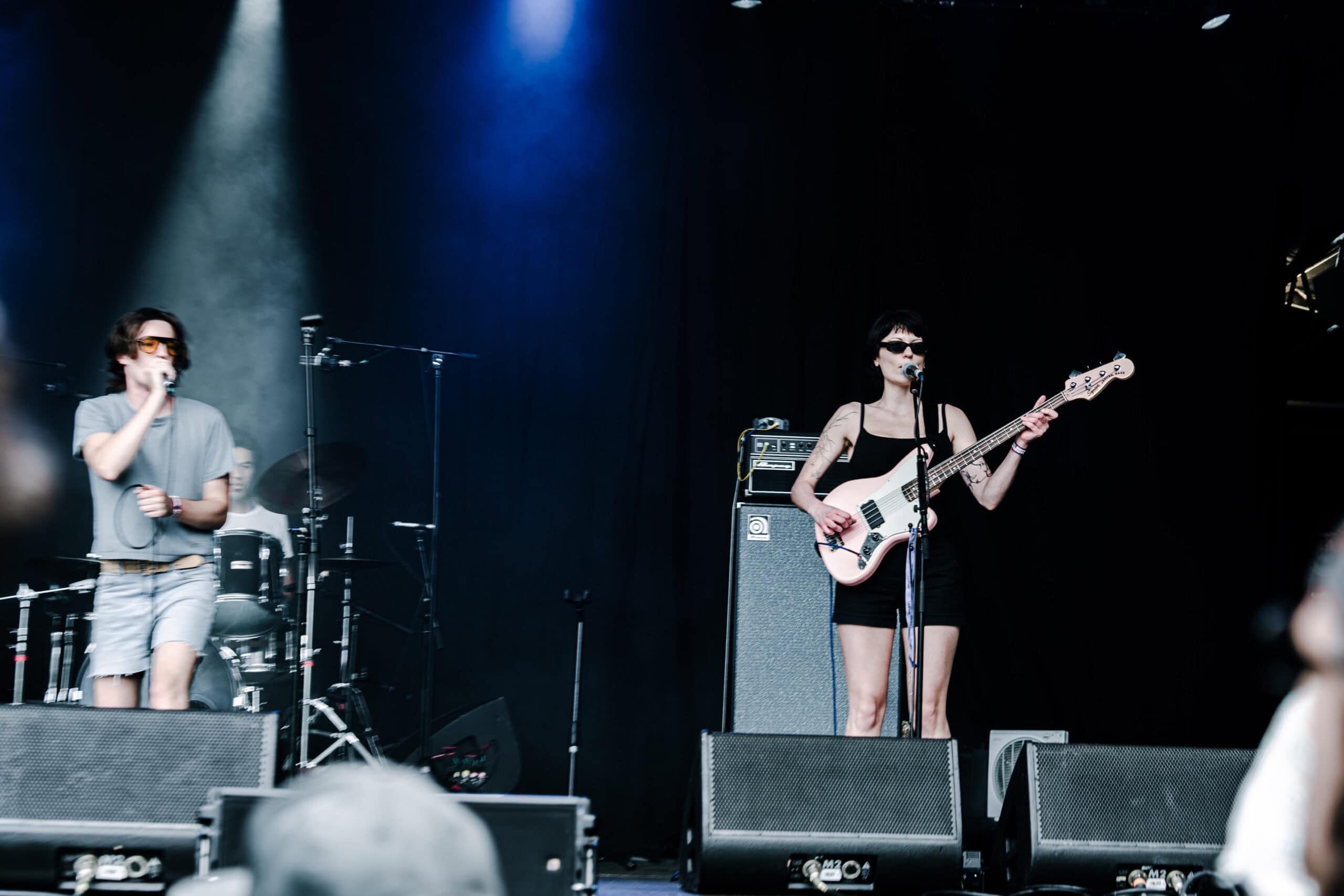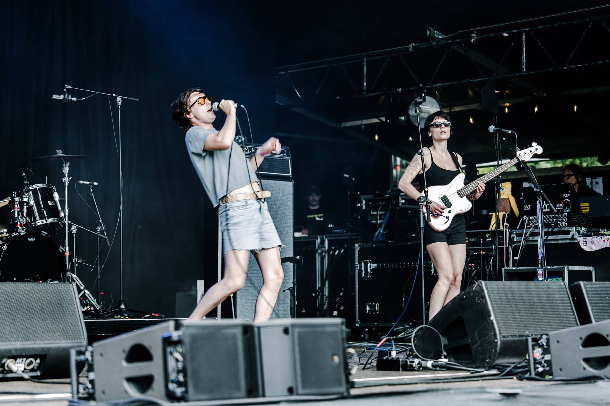 Back at the main stage — delicious Wise Boys vege-burger in hand — I watched Wet Leg crank up the energy with unwavering commitment to fun. Outside of vague awareness of Chaise Lounge (I had expected to be watching GEESE), I had done no prior listening. Wet Leg won me over instantly.