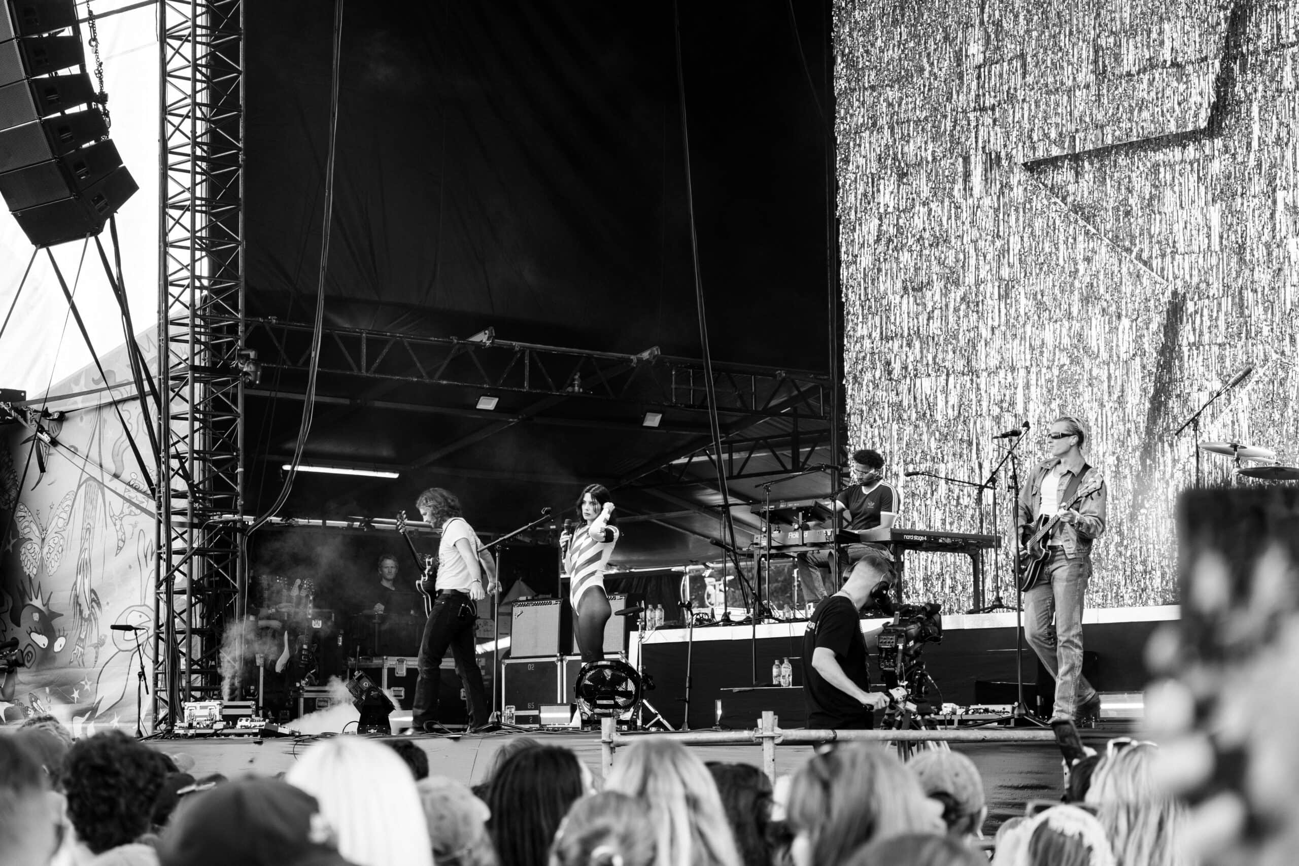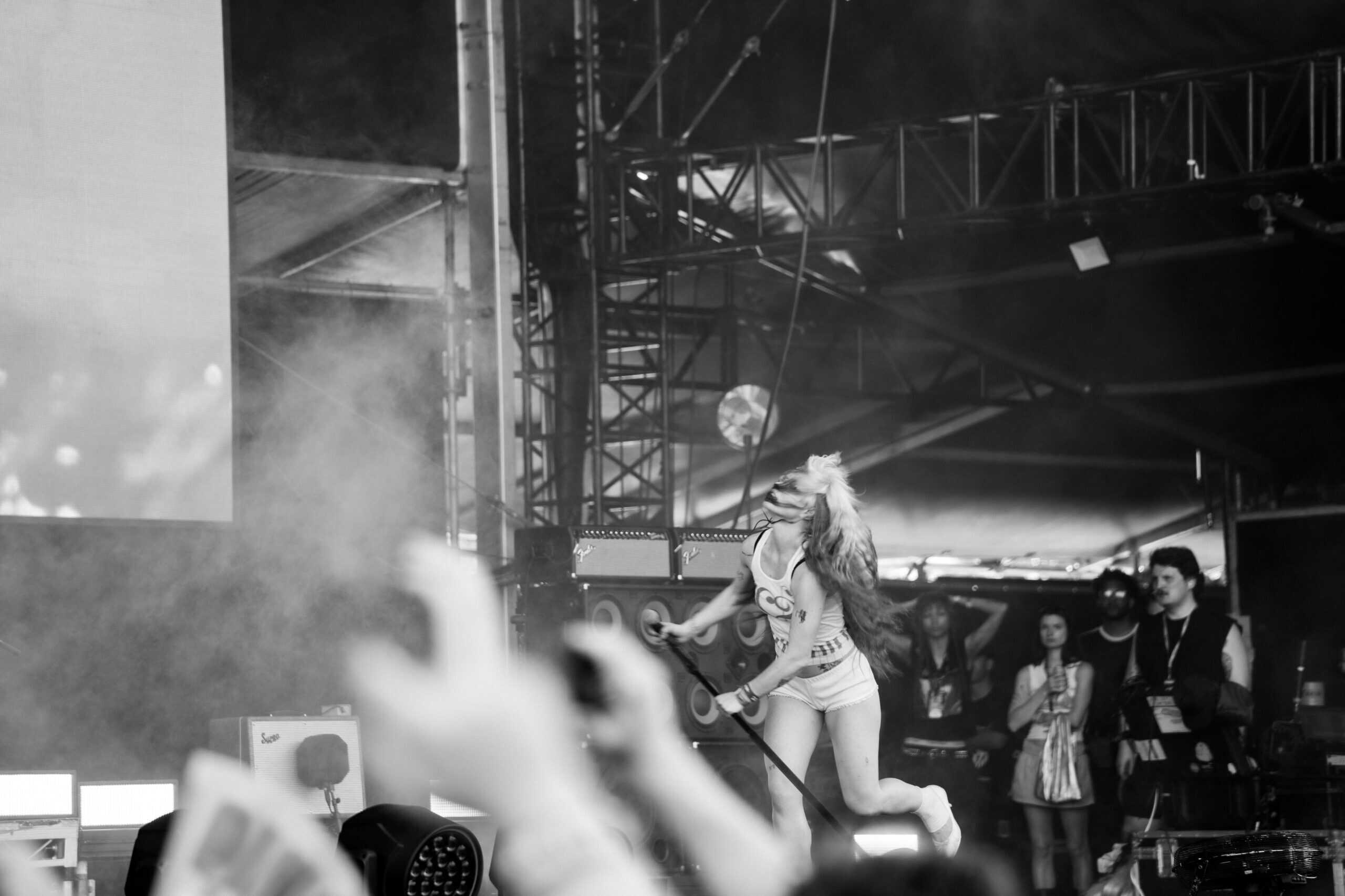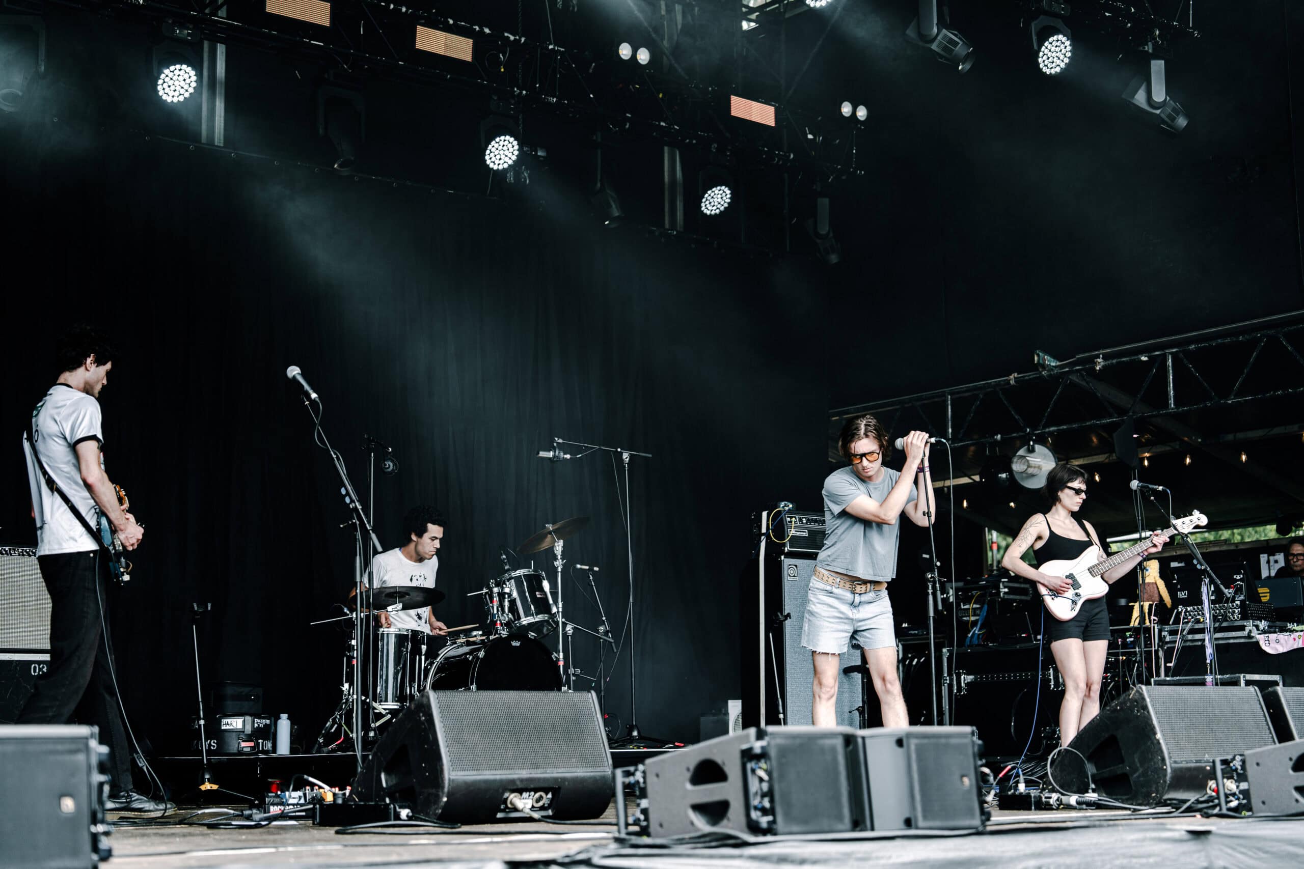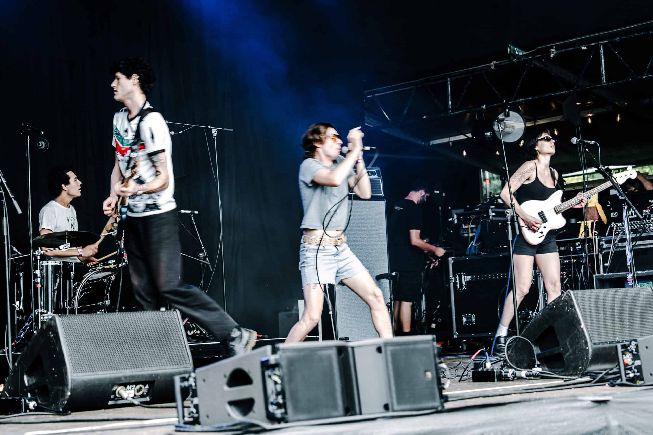 The moment Benee ended, an excited — and slightly aggressive — energy filled the front rails as fans jostled into position while GEESE set up. Anticipation was high for the Brooklyn band whose album Getting Killed had dominated end-of-year lists.