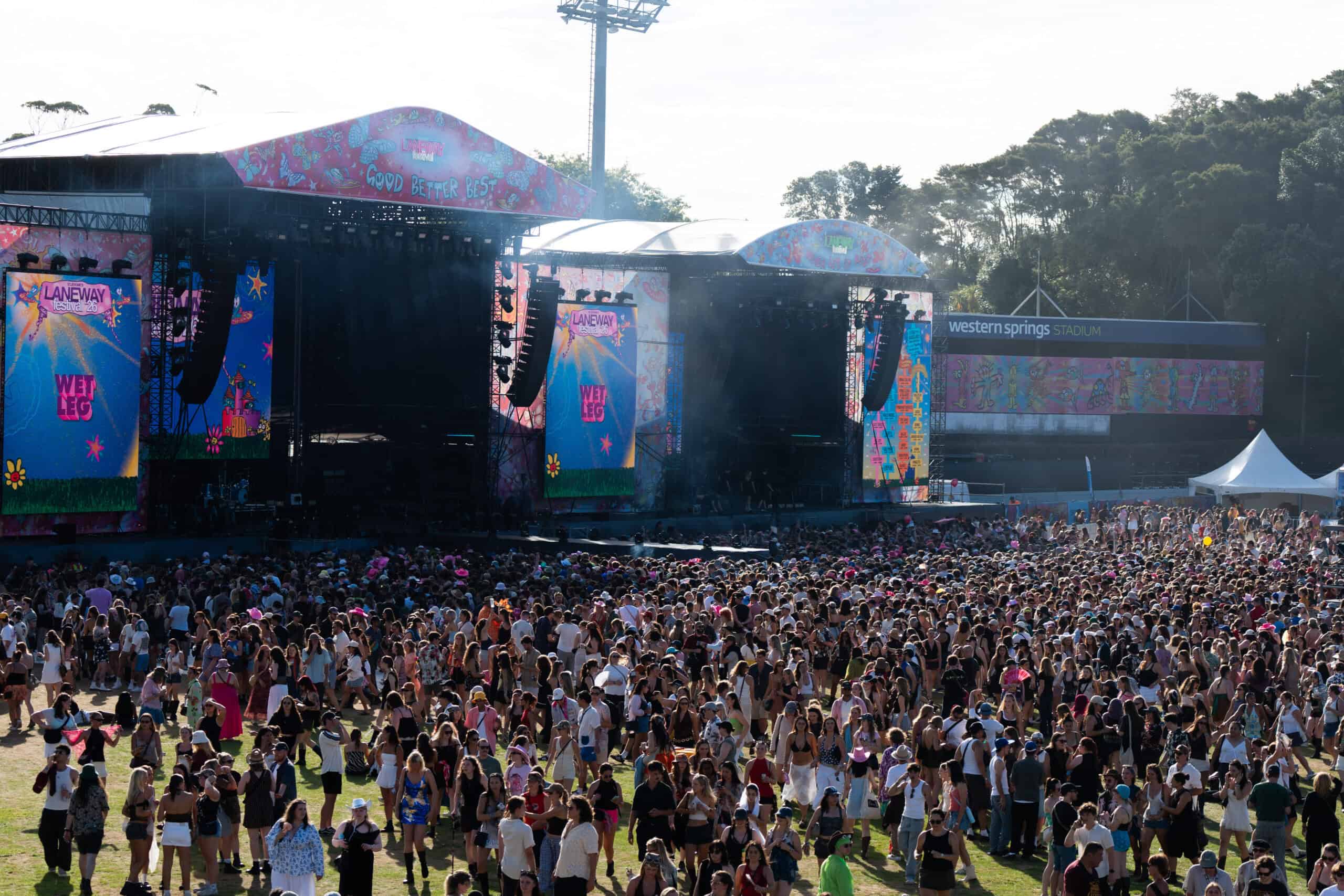 Having attended many Laneway Festivals over the years at both Silo and Albert Parks, 2026 was somehow my first at Western Springs. It’s a festival I’ve long associated with having a finger on the pulse of artists either on the verge of breaking big or pushing a sound uniquely theirs. Off the top of my head: Denzel Curry, St Vincent, Jon Hopkins, Grimes, Mitski, and Run The Jewels are all artists I fell in love with through seeing live at Laneway before listening to their records.