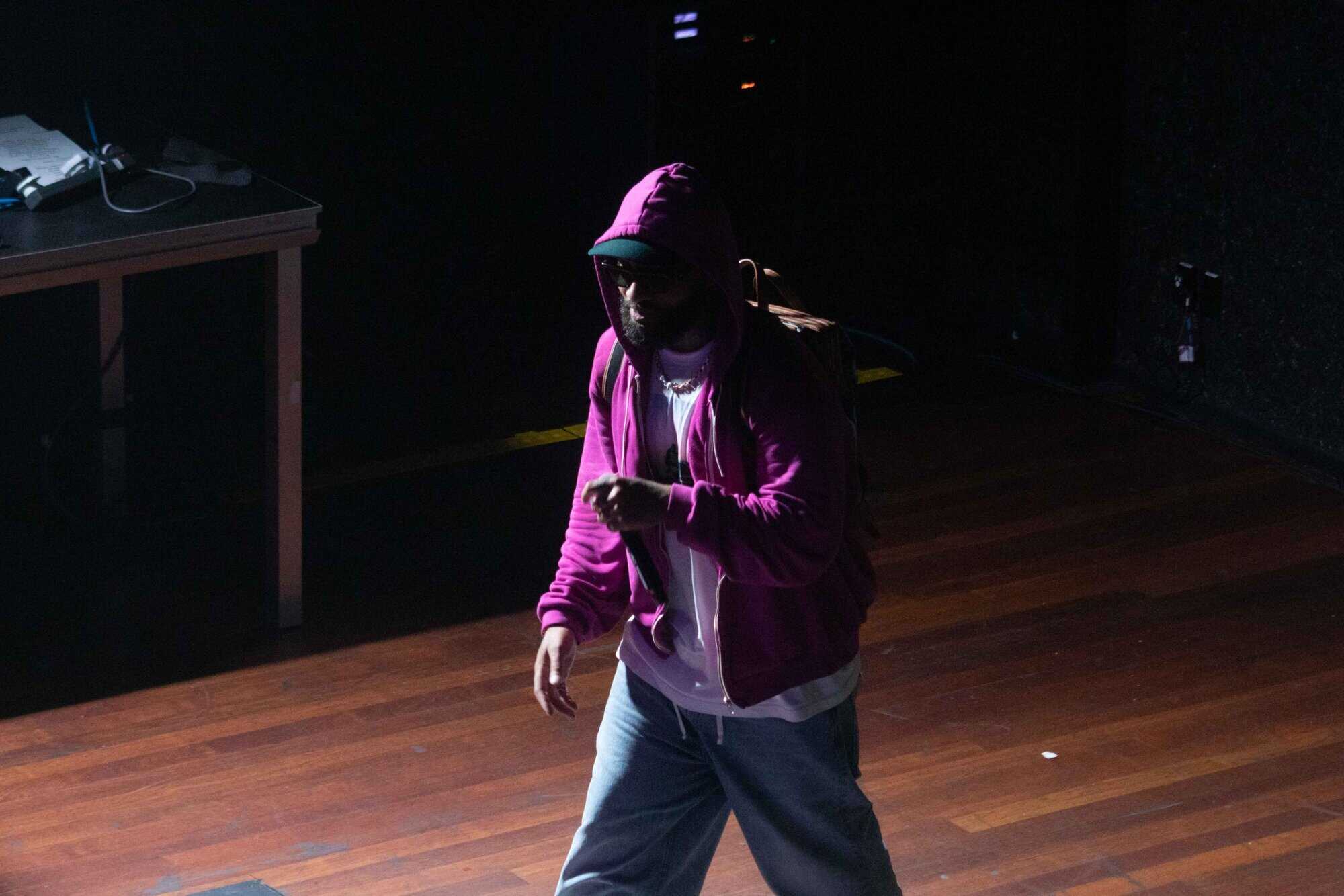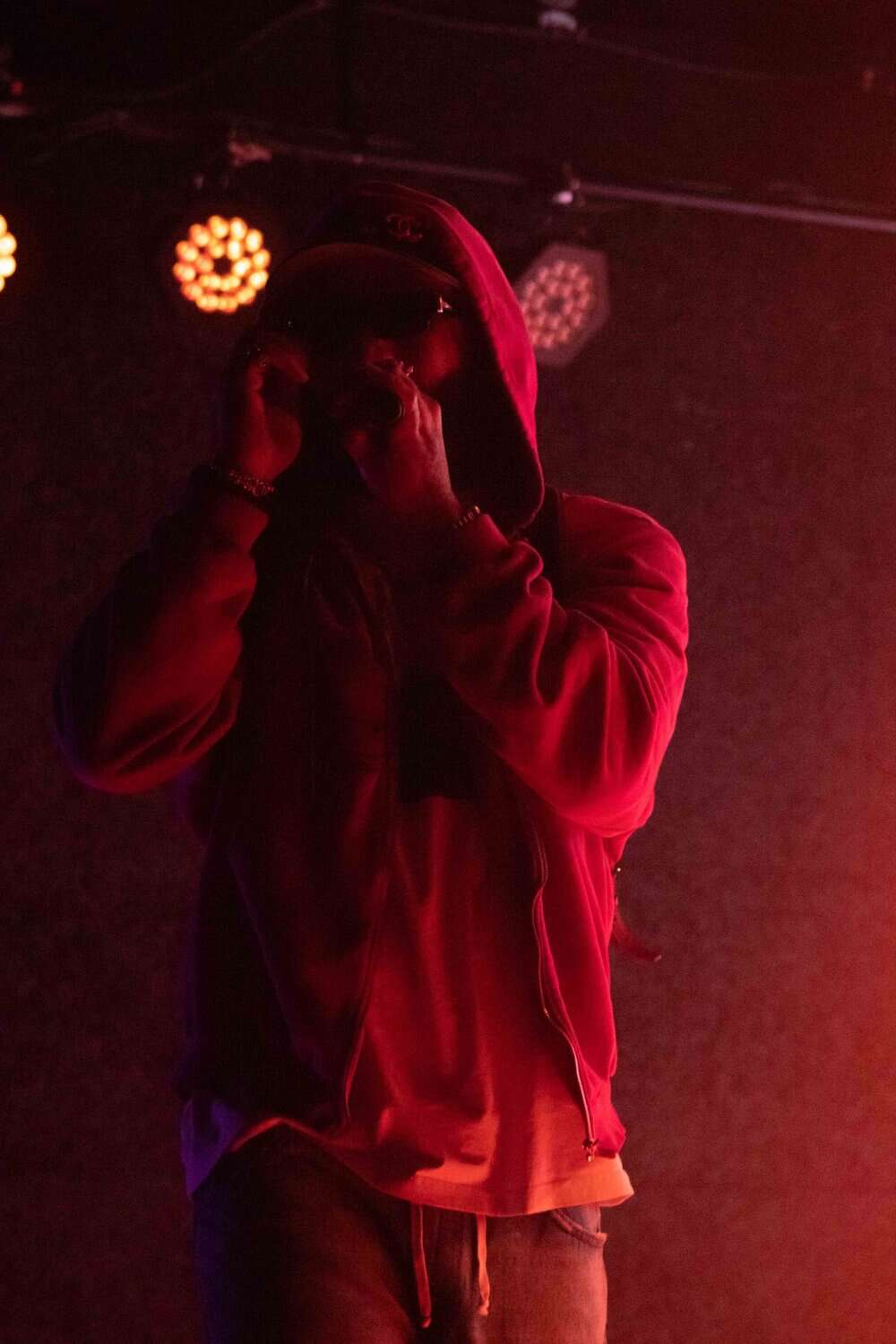 There were a couple of interesting aspects which caught my attention. Larry performed the whole show while wearing what looked like an expensive woman’s handbag on his back, and for much of his set we could barely see his face, due to the lighting. And secondly, he ended up with a couple of unannounced guests on stage – a young white bloke who looked like he’d won some sort of competition, and UFC fighter Israel Adesanya, who had a front-row view of the action and had appeared earlier on Larry’s Instagram story.