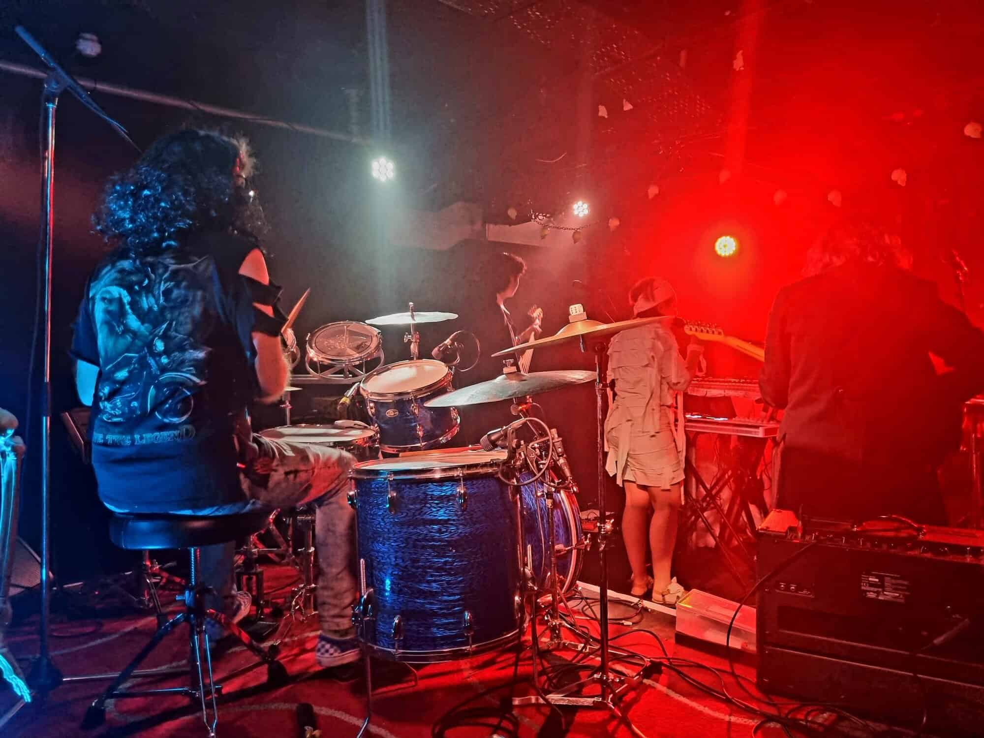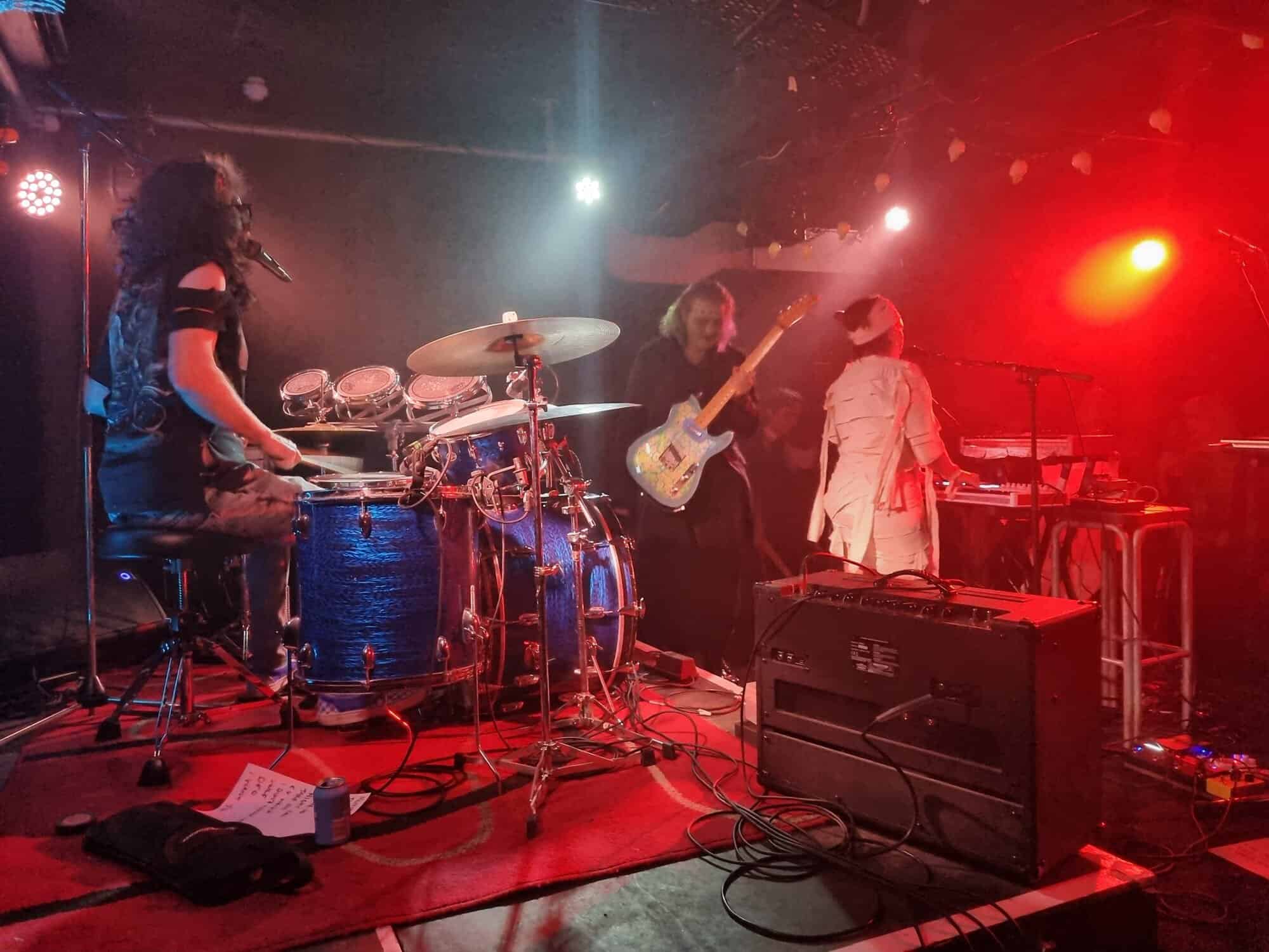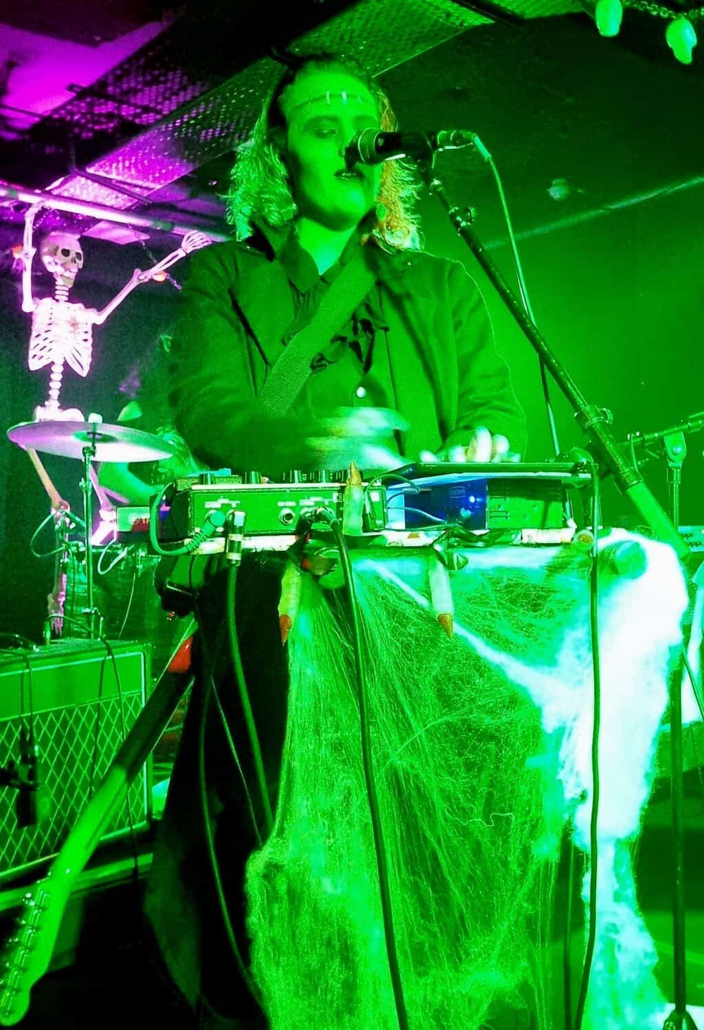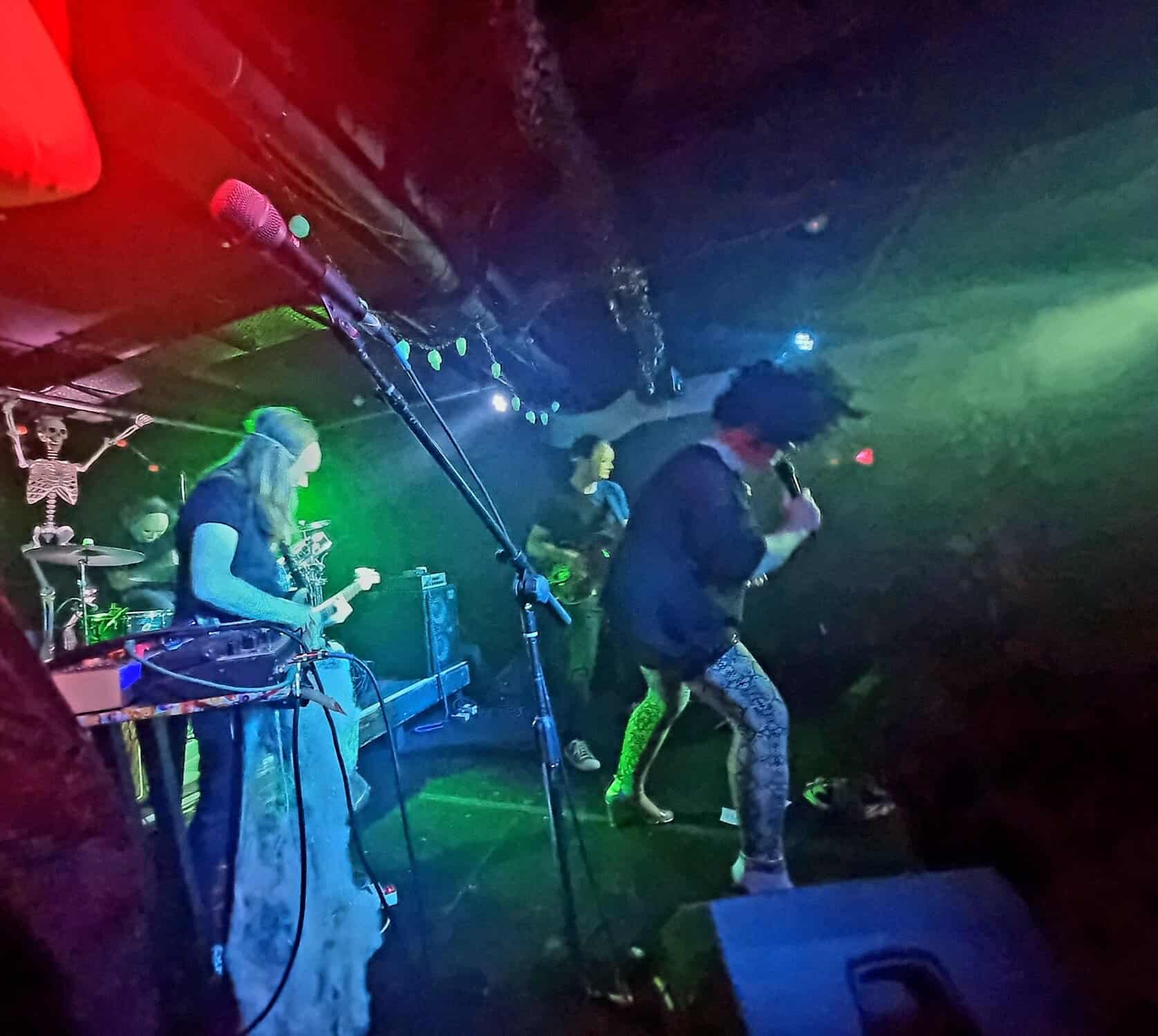 Are plagued by tech issues, somewhat befitting the po/night’s theme inadvertently. An extra Fugazi beer later, and Steph Brown, Fen Ikner, Ruby Walsh and Maude Morris are ready onstage, perhaps even more lavishly adorned than the members of The Golden Geese, immediately rampaging their way through a version of a classic – Monster Mash.