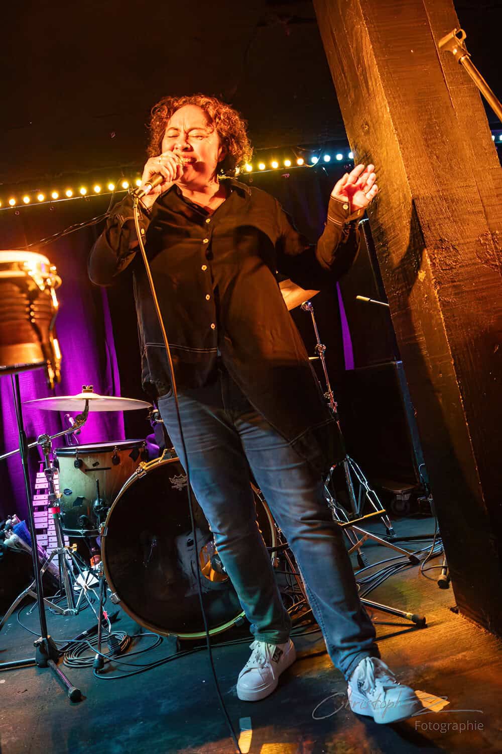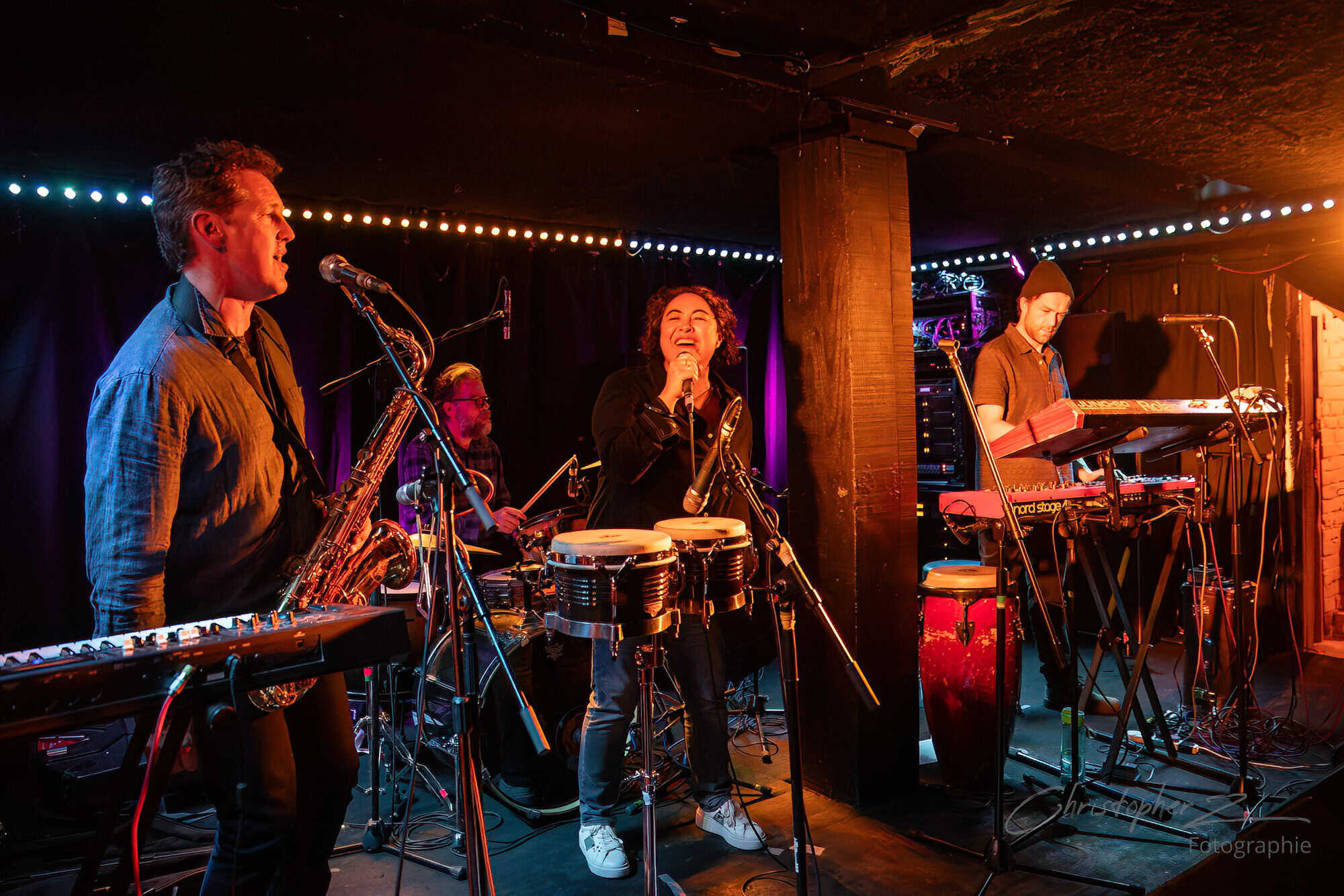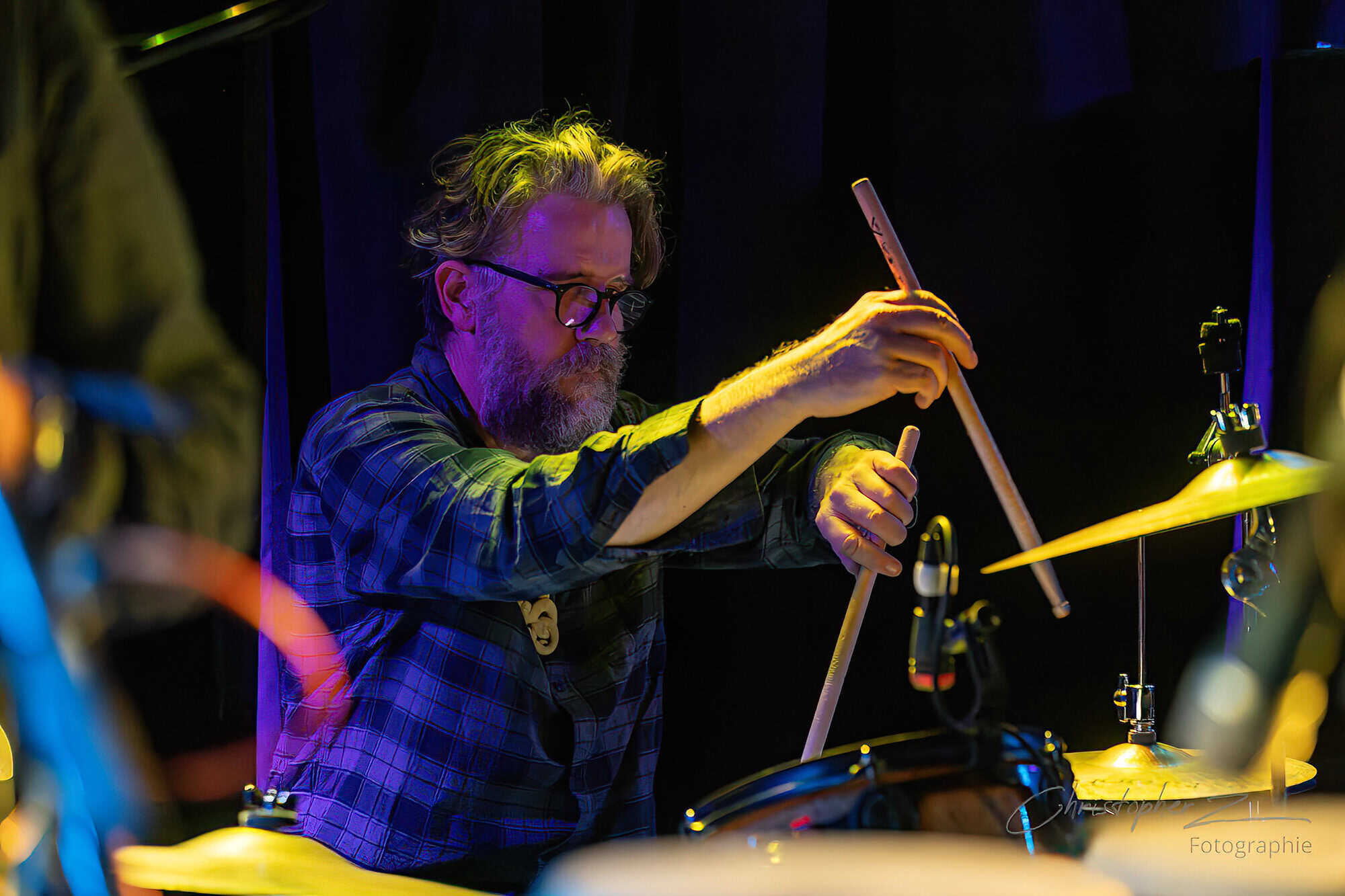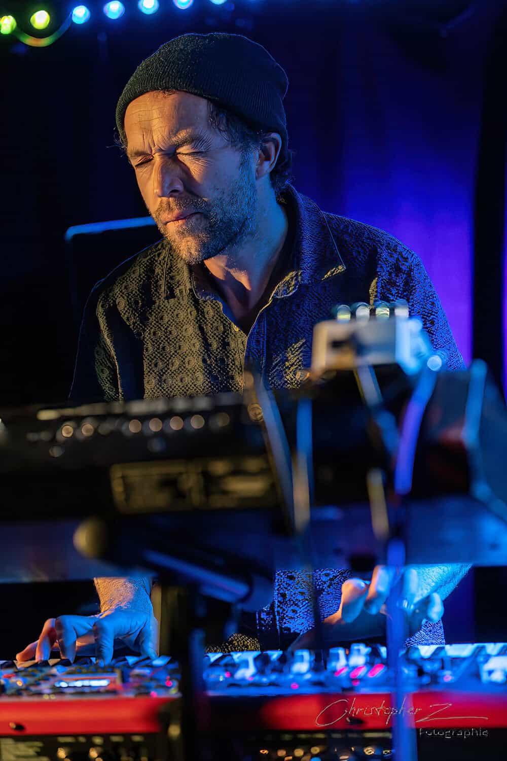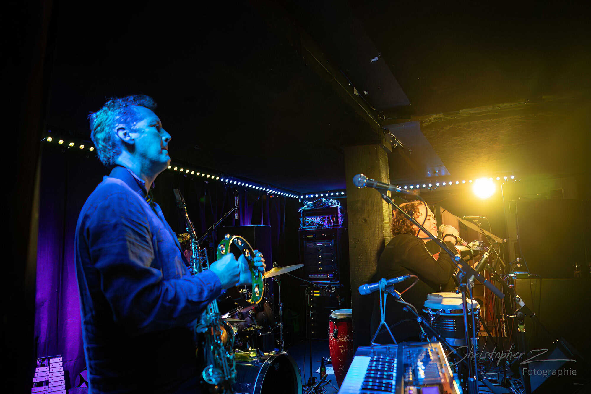 Nick acts as emcee, greets the crowd, introduces Chris O’Connor and takes up his sax and the trio launch into the jazz/funk of The Tunnel, O’Connor opting to shed his coat of many colours and get down to business behind his kit.