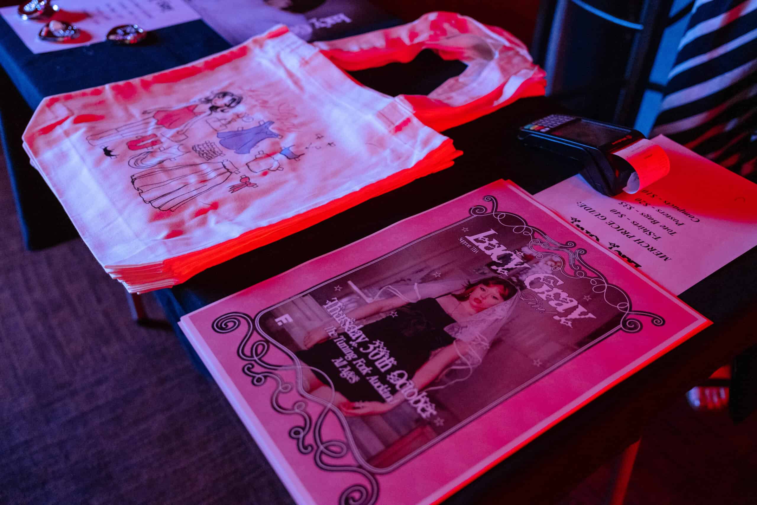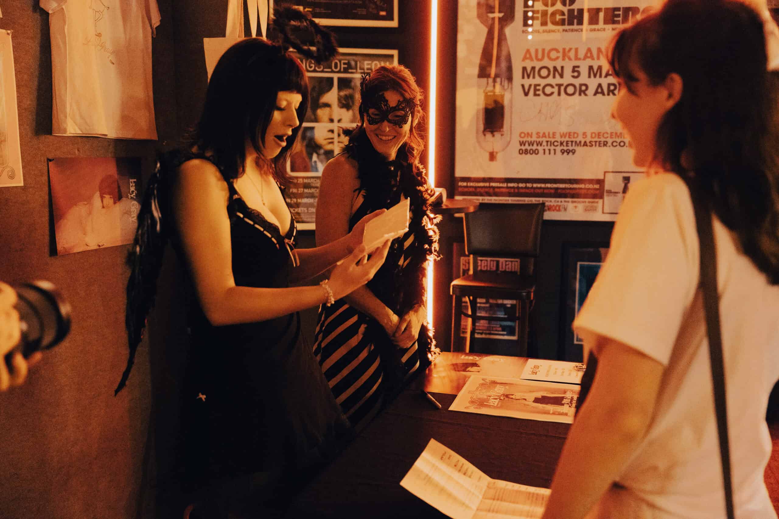 To the left of the entrance is the merch table, where a woman wearing a masquerade mask greets you with a warm smile. That is Ann, Lucyâs mother. She had flown in from Christchurch the day before, not only to help sell the merch but also to stay up late with Lucy decorating the entire stage. After a short chat with her, you can feel that something special is about to begin.