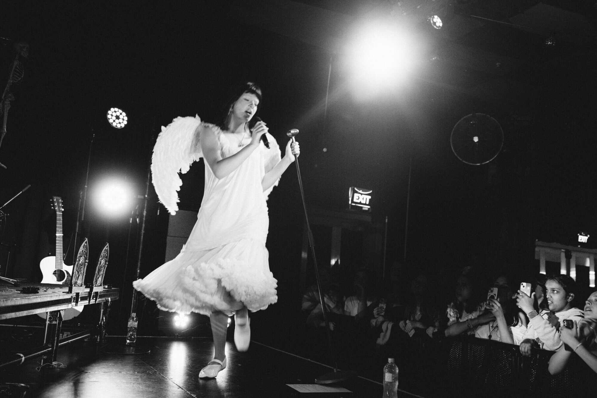After the song ended, Lucy stepped off the stage to roaring applause. The crowd was not ready to let her go as chants of encore filled the room until she reappeared. This time she looked completely transformed: black dress, black wings, and a black halo. The angel had turned dark. The transformation was stunning, not only for its symbolism but also for how quickly she pulled it off. Together with the detailed stage setup, her two contrasting costumes, and her encouragement for fans to dress up, it became clear that Lucyâs understanding of performance goes far beyond music. Her vision is total, immersive, theatrical, and brilliantly self-aware, showing a maturity and intelligence far beyond her age.