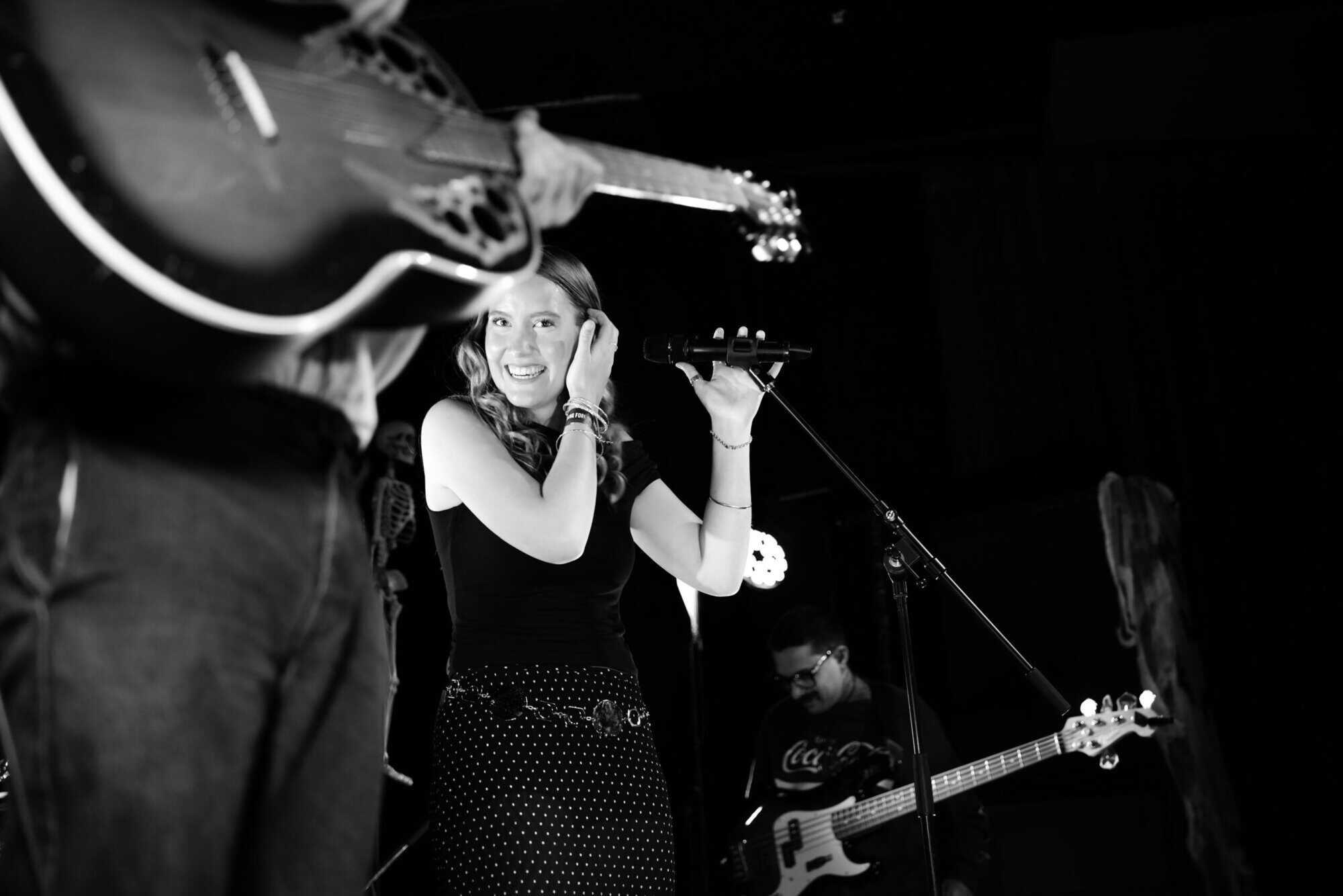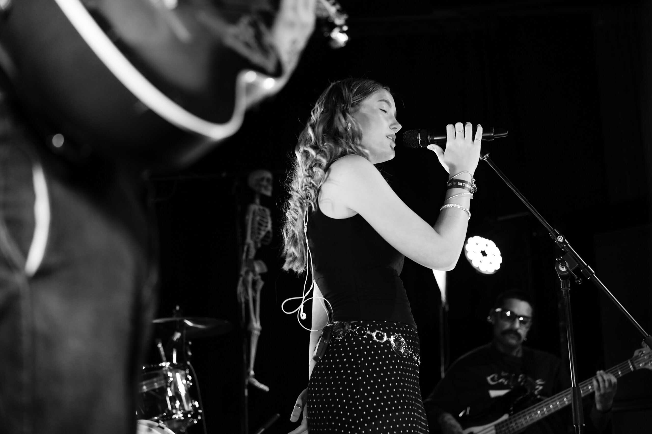 She kicked off with the pop-R&B track Whatâs the Worst I Could Do, striding confidently onto the stage. The song, a modern love story wrapped in emotional complexity, immediately drew the audience in. Over the course of her set, she delivered six more songs: two earlier originals (Look Where I Am and Williams Tragedy), two covers (Messy and Nice to Each Other), and two unreleased tracks (Heal and Lost Love). She closed with her newest single, Not My Own, captures the chaos of losing control in a fast-paced world â the sense of being overwhelmed, unheard, and detached from your own choices and identity. Her songs often circle around love, contemplation, and self-reflection, giving her work a distinct emotional depth. Her voice soared over the melodies, commanding attention and earning enthusiastic applause.
