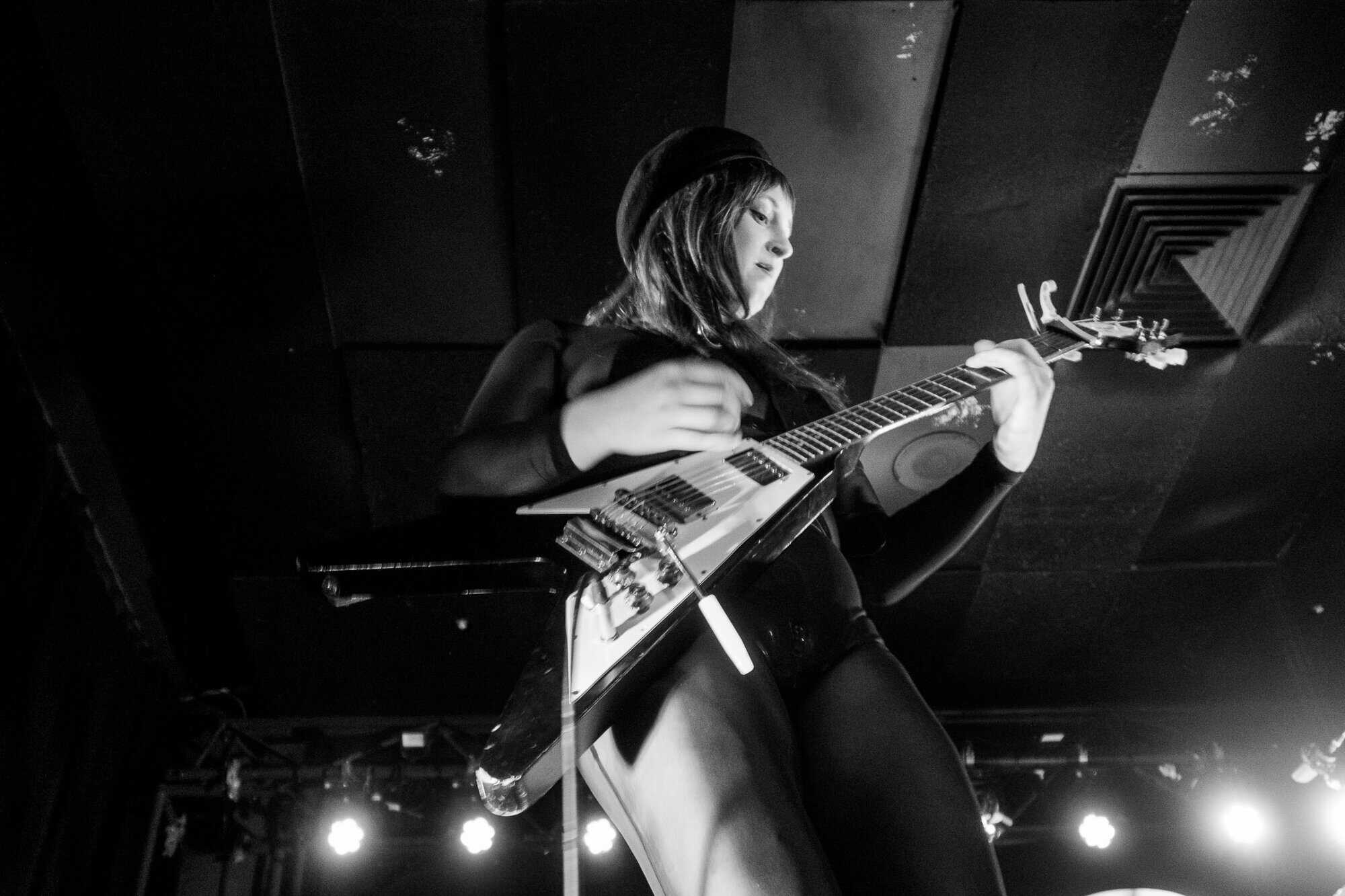 It’s a sold out crowd tonight, and Tuning fork is now full, with the merch table doing a roaring trade in Mannequin Pussy t-shirts and Pussy caps. As the band members check their gear (in true punk rock fashion Swallow The Rat were welcome to use their backline) the murmur of anticipation darts around the room. It’s a gentle start with the emotive keys of I Don’t Know You wafting, as it builds to a controlled crescendo of noise, the keys still creating pop-sensibility. It’s the first of four songs from I Got Heaven.