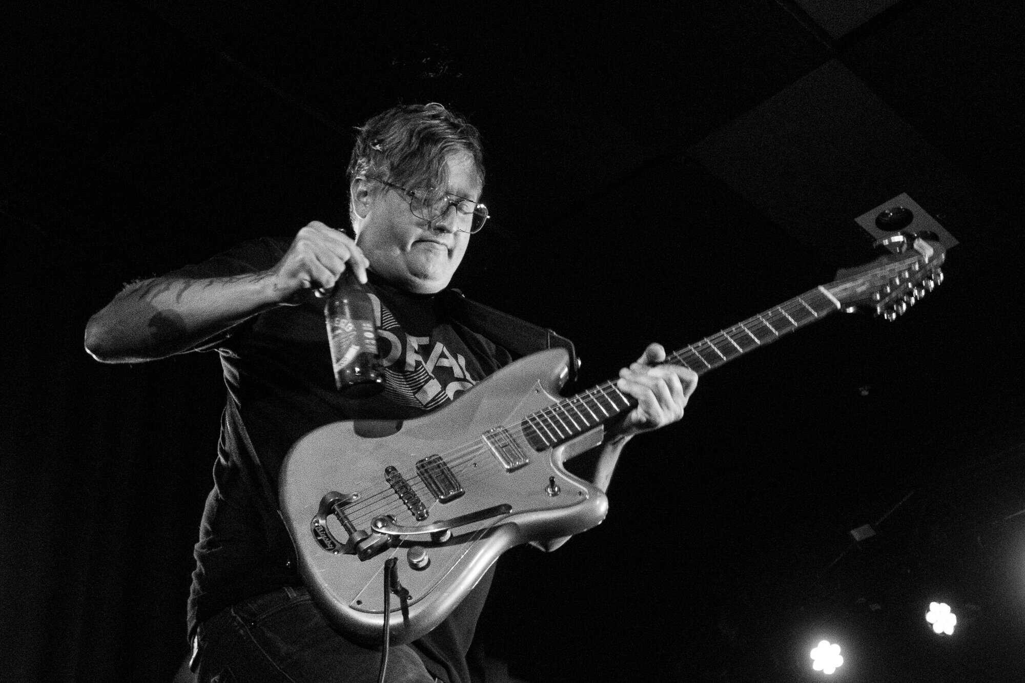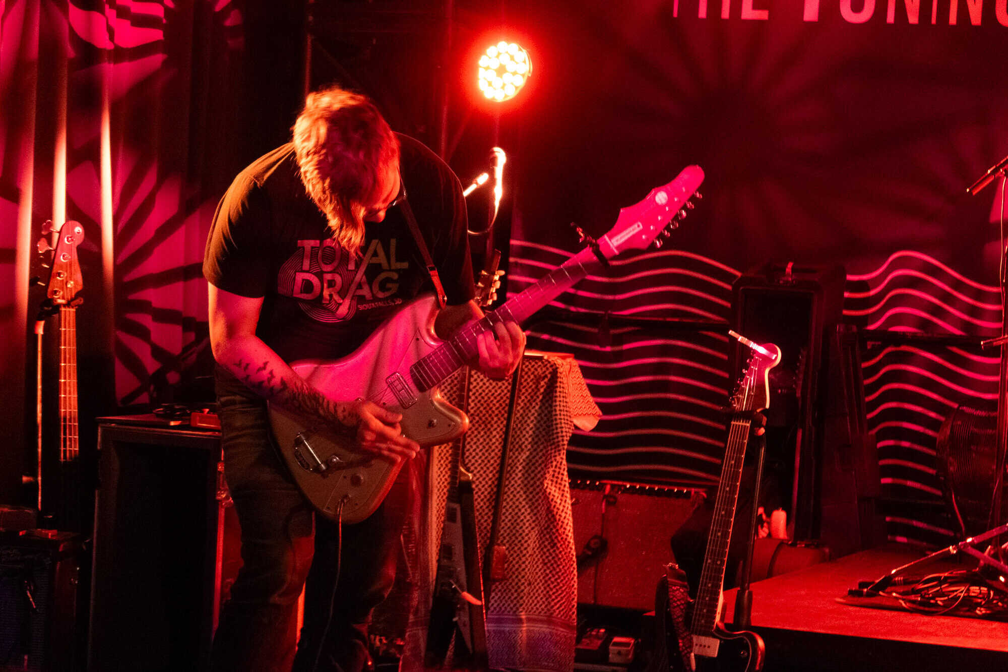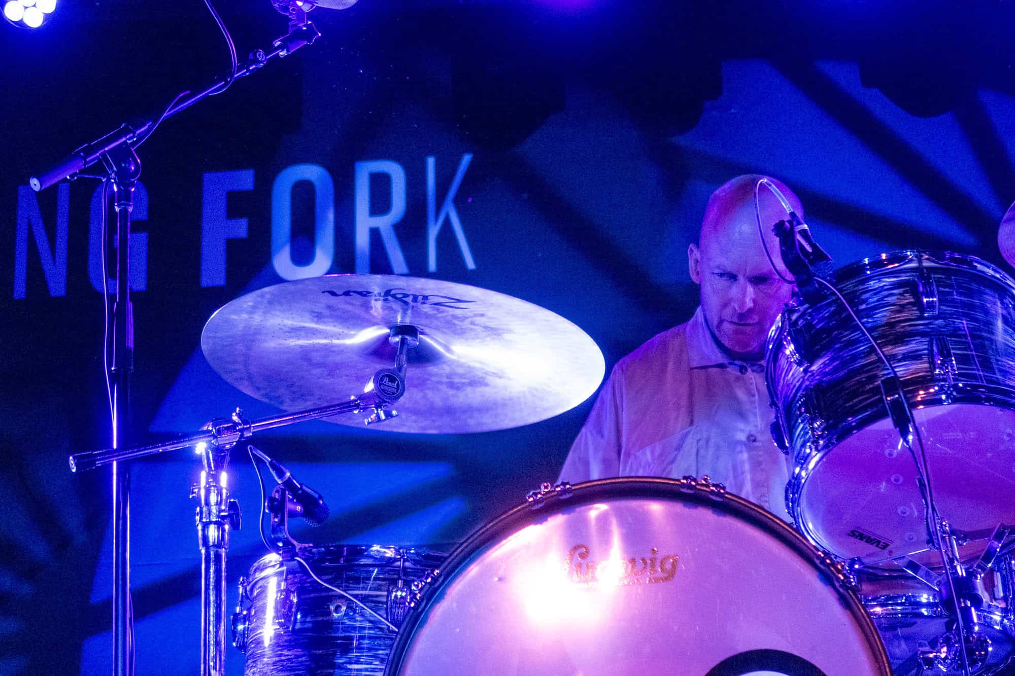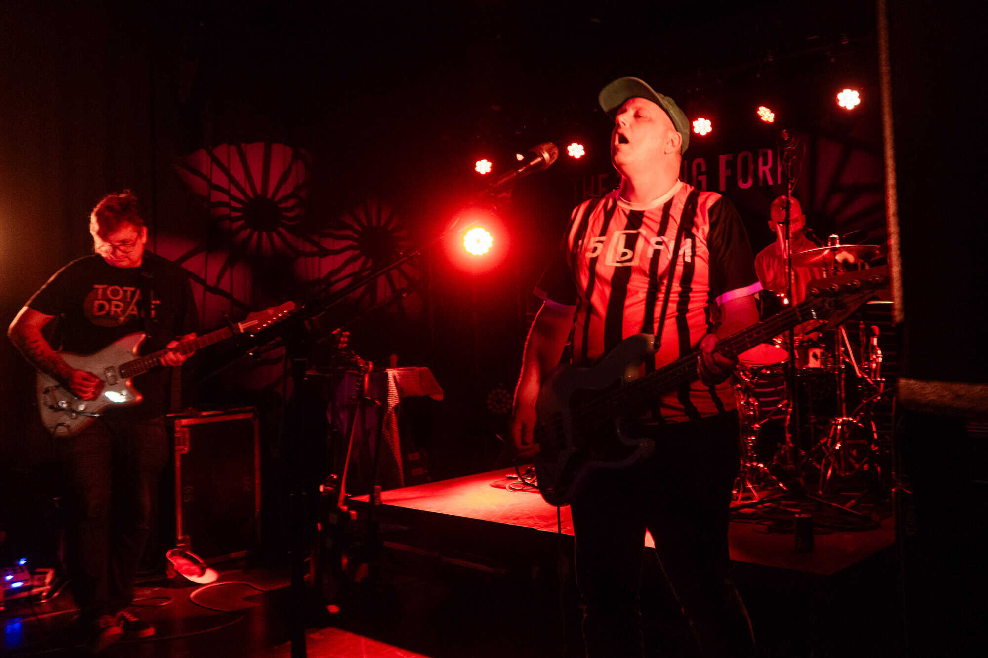 The three look mighty onstage, Brian Purington’s guitar creates havoc from the start, and many in the audience, not the usual suspects tonight, are drawn to the spectacle. As the band creates their own version of white boy punk funk, Stephen Horsley’s bass rhythms are cathartic, when grounded by Hayden Fritchley’s krautrock style drumming, as the ingrained danceability within Swallow The Rat songs hold the audience’s gaze.