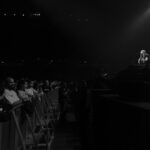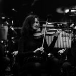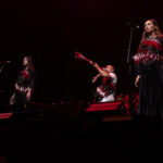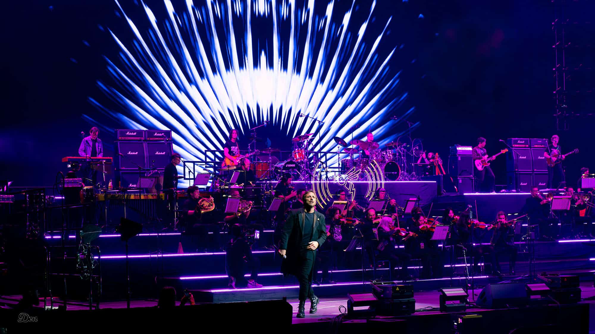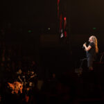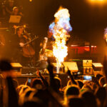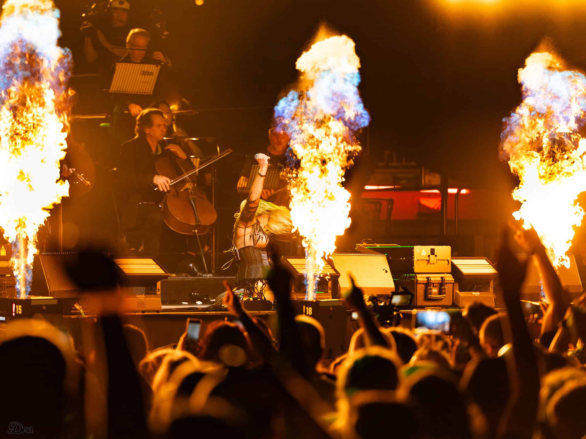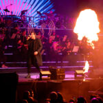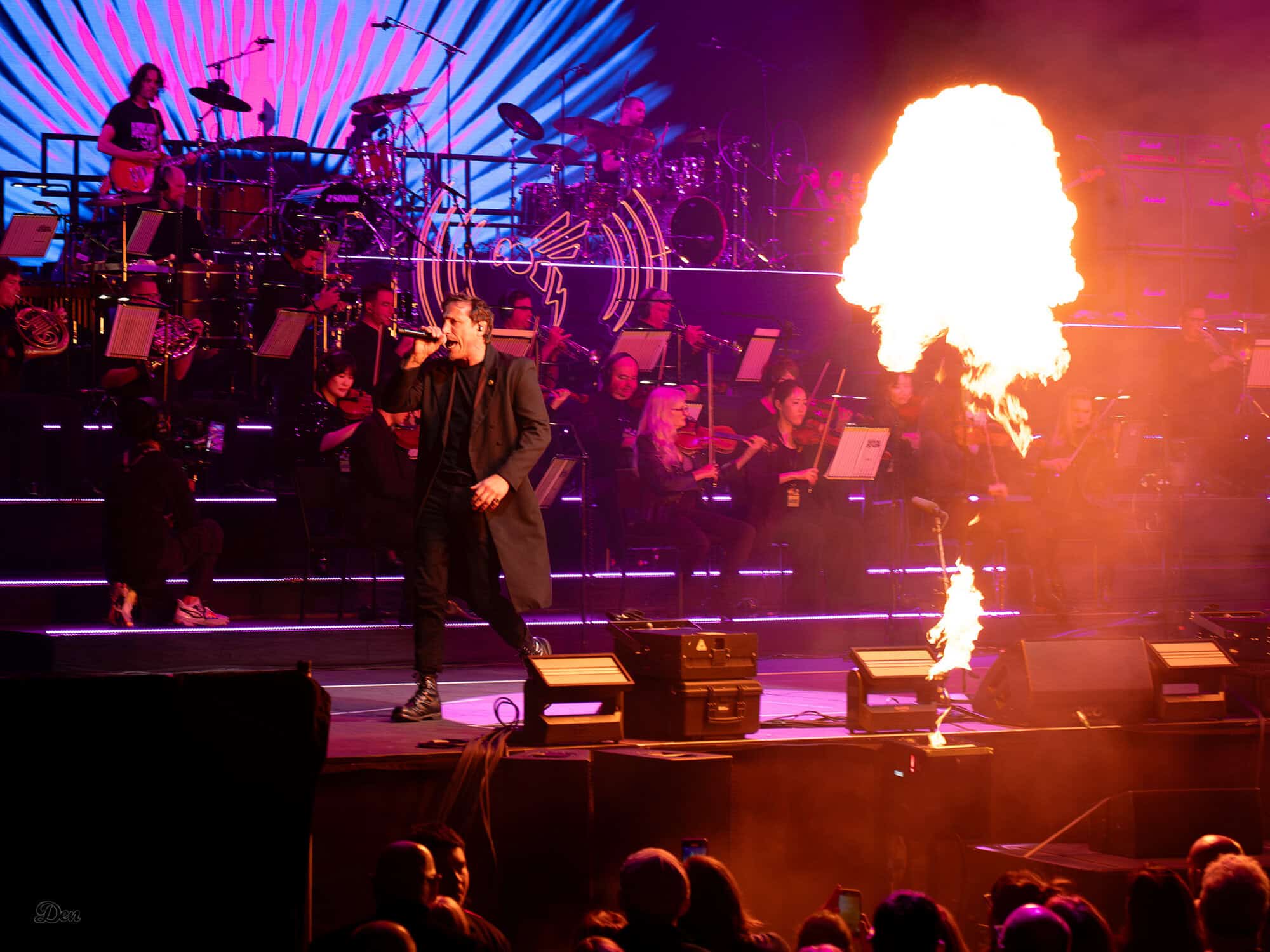 Then came the moment the crowd had been waiting for. The full orchestra filled the stage in tiered formation, surrounded by moody floodlights, cinematic visuals and pyro that flamed throughout the night.