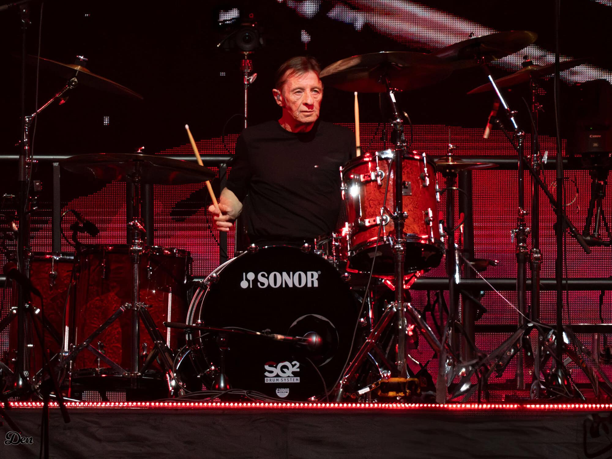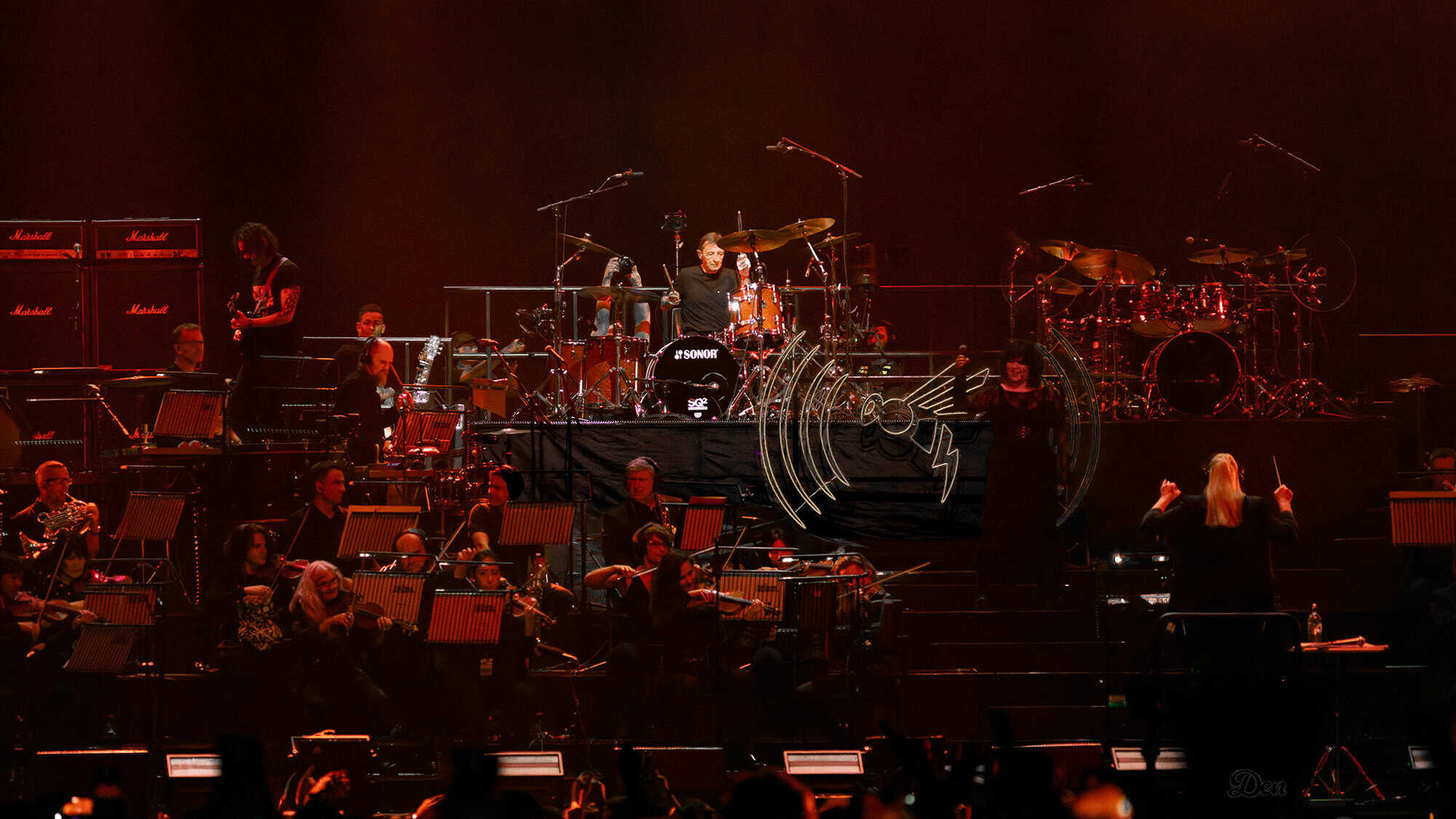 The true peak of the night came when Phil Rudd took his place atop the tiered stage to deliver a thunderous three-song AC/DC set. He kicked things off with Thunderstruck, featuring a fierce vocal performance by EJ Barnes. Rudd’s unmistakable hi-hat groove and rock-solid timing gave the song its relentless drive, elevated further by the orchestra’s sweeping accents.
