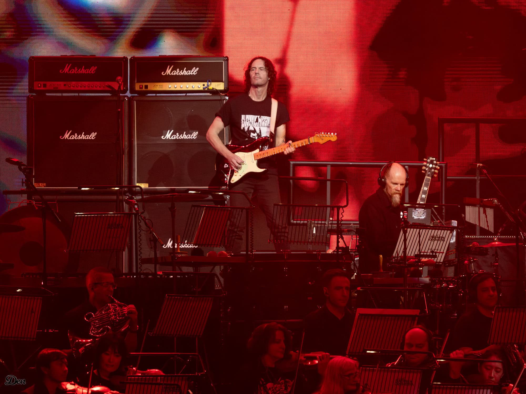 Throughout the set, vocalists rotated, each bringing their own flair, while the orchestra amplified the drama behind every riff and roar. Behind the scenes, Brett Adams, Alistar Deverick, Mike Hall, and Jol Mulholland (also on guitar) helped hold the intricate sonic web together—Mulholland especially, operating as a kind of second-in-command just under the baton of Williams.