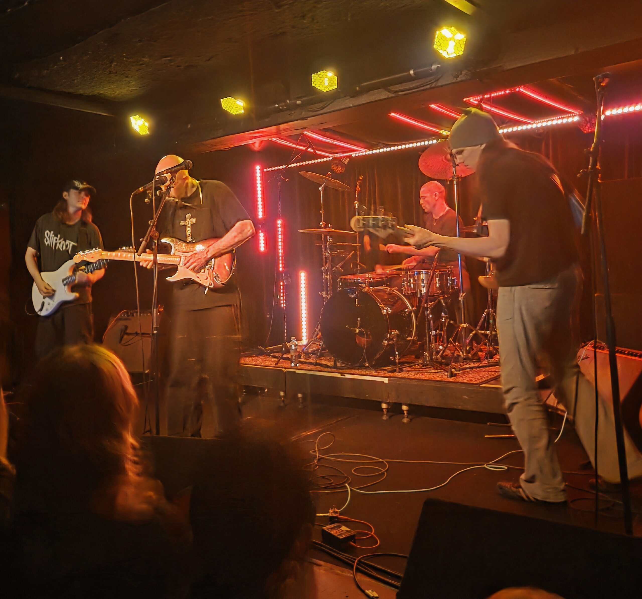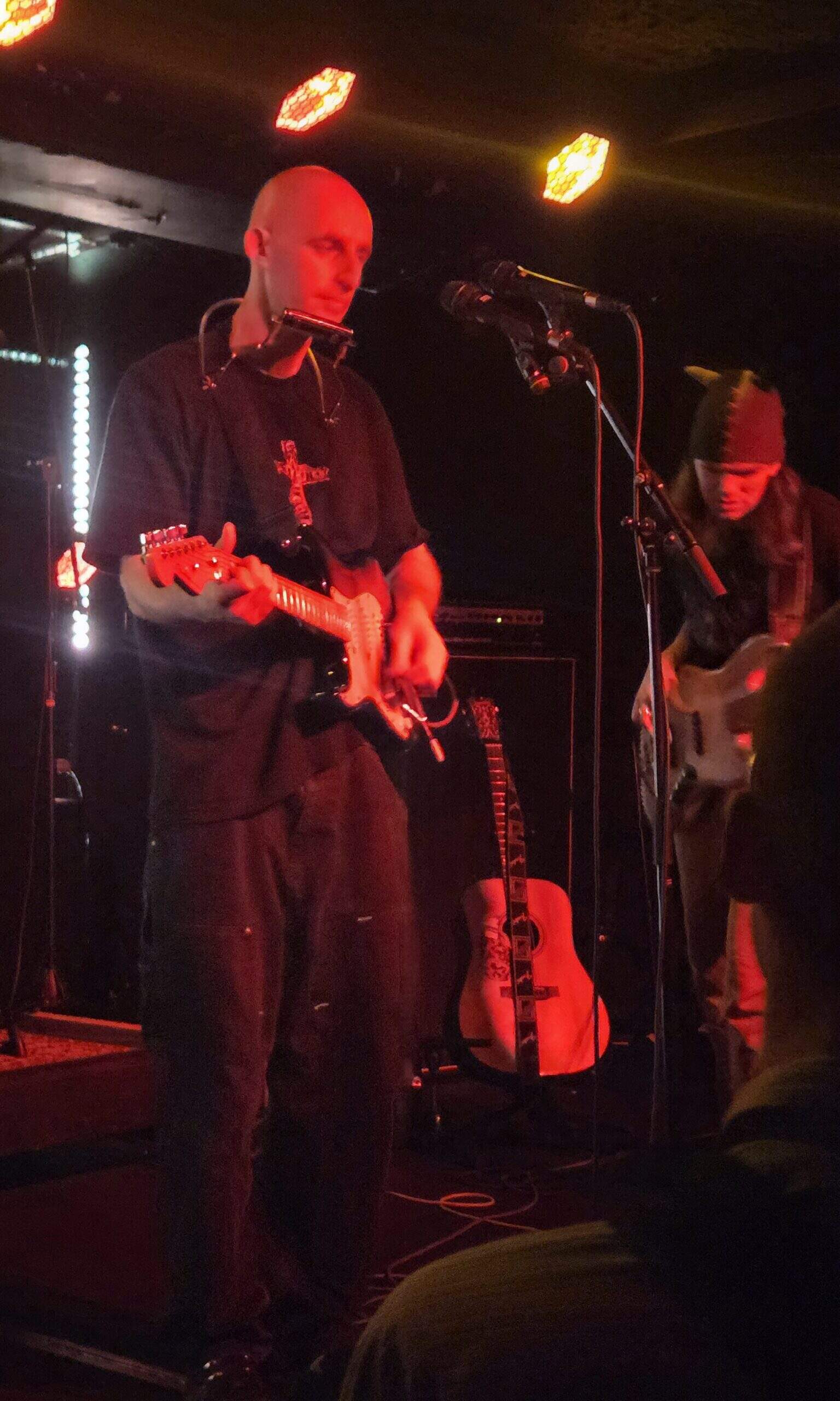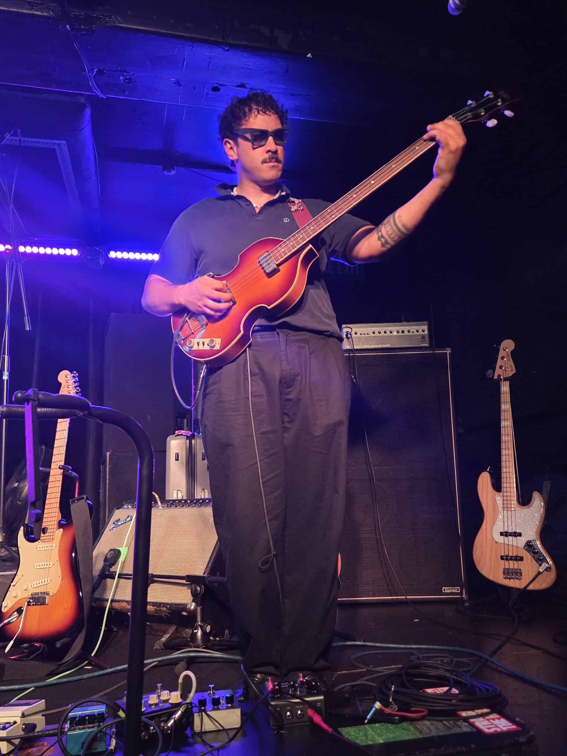 Joy, joy is when the trumpet comes out for Still Above, and not too later, more when Spit, which turns into a rumbastic ride, enters the realm of shoegaze. Noticeably, tonight, is the precision of how so many of his songs end. Few drag out, or become monotonous, most end on a moment that is high, leaving the audience sparkling. Tomorrow is Perfect mesmerises the room in it’s slowcore temperament, whilst Anyone, a song from Sparkles 22-24, a compilation of early recordings released last year, turns into a mega jam session and ends the night in supercilious stage recklessness. There was an encore, but by then I was at the merch table buying a vinyl copy of Mark William Lewis, and listening from afar, thinking my son had put me onto something to be treasured.