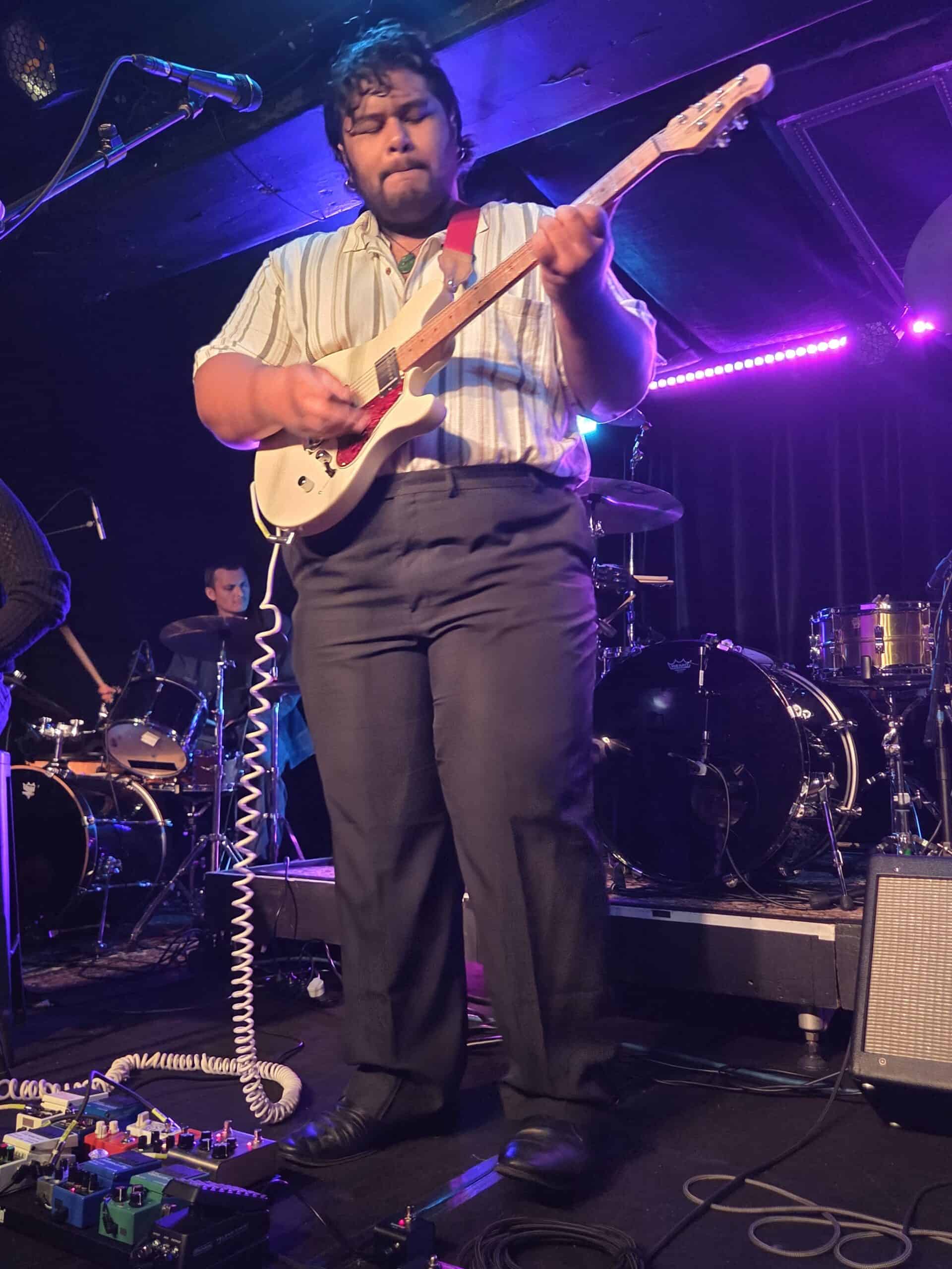 My hat is tipped to the choice of openers tonight, t’was an act of genius. LEAO is a project of guitarist/vocalist David Feauai-Afaese, with bassist Navakatoa Tekela-Pule, hawaiian-steel guitarist Levi Gemmell and drummer Larsen Tito-Taylor. Feauai-Afaese sings exclusively in gagana Sāmoa, his guitar strung high, and has a sound of duality. The traditional string sound of Samoan music, past and proud. But the added aspect is the modernity of rock, psychedelia, maybe even post-punk, that immerses the Fa’a Samoa vibe.