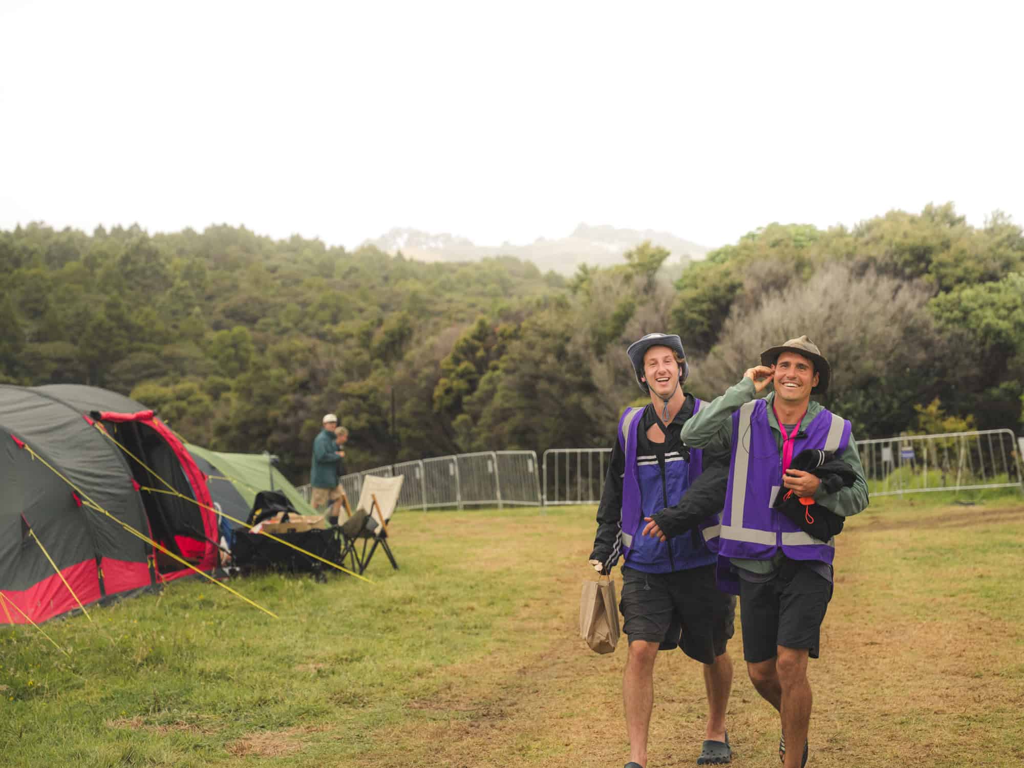 Despite the challenges of the weather, with strong winds and delayed access to the tent site, rolling in on day one, the energy was pure summer freedom. People were still rocking those “I woke up like this” festival outfits. Everyone was still smiling, genuinely smiling, and the whole place had that easy, barefoot-in-the-grass vibe (or gumboots). No stress, no queues-from-hell, just good humans and good tunes. The Main Stage was well-positioned, with everyone able to secure a viewing spot, and the smaller Kawakawa Stage was particularly impressive, set amidst the bush.