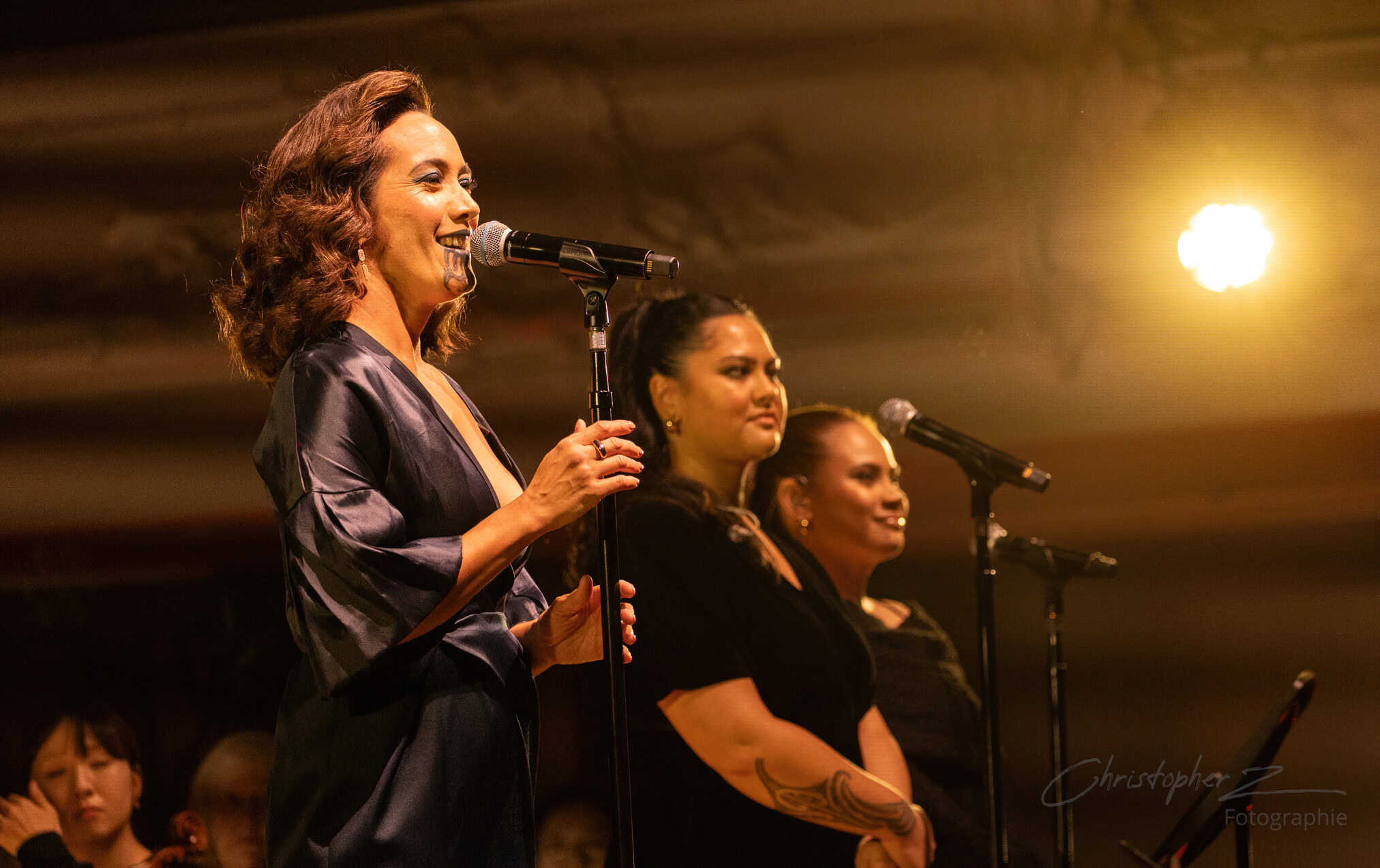 Ria has two women at her side…vocalists Arihia Cassidy and Ngakirikiri Kershaw provide support and harmony.