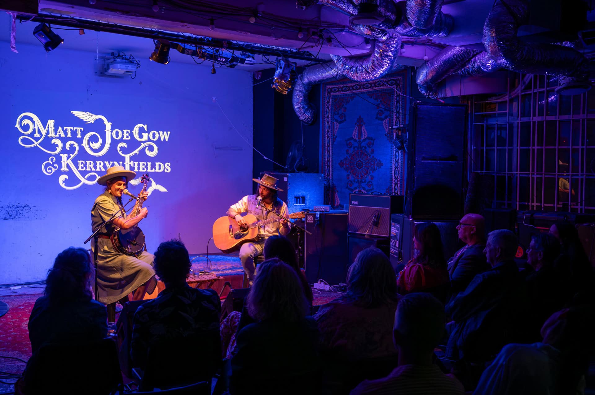 Matt Joe Gow and Kerryn Fields team up to give us two headliners for the price of one as a packed house made The Wine Cellar the place to be on this busy Saturday night in Auckland.