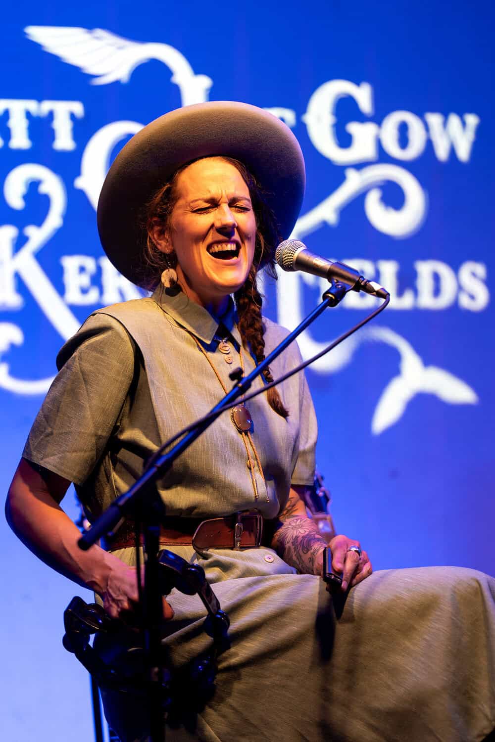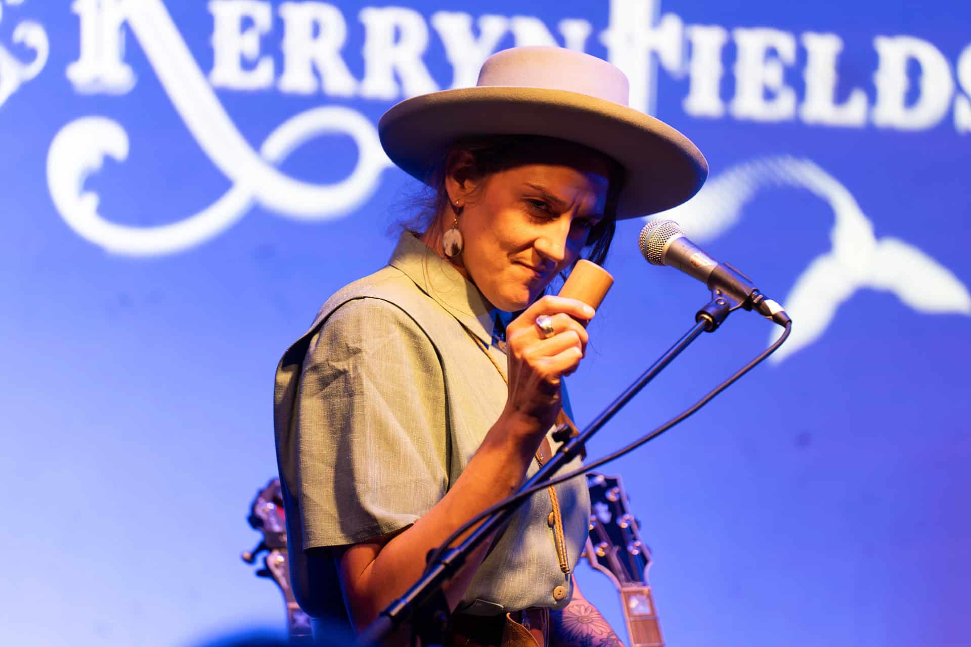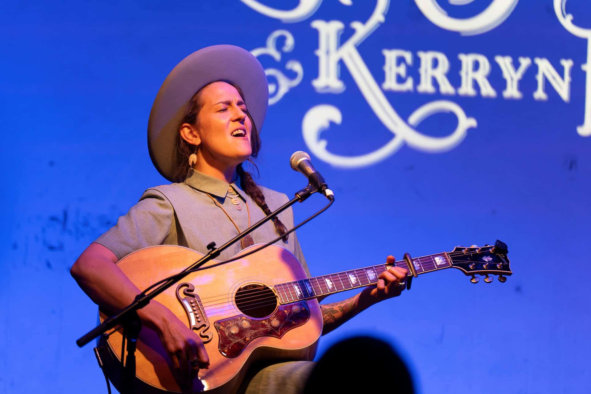 Anyway, with banjo in hand, Kerryn sings a new tune, Prairie Song, while Matt, strumming an acoustic guitar, harmonizes. The sound is sweet and the crowd is immediately entranced.