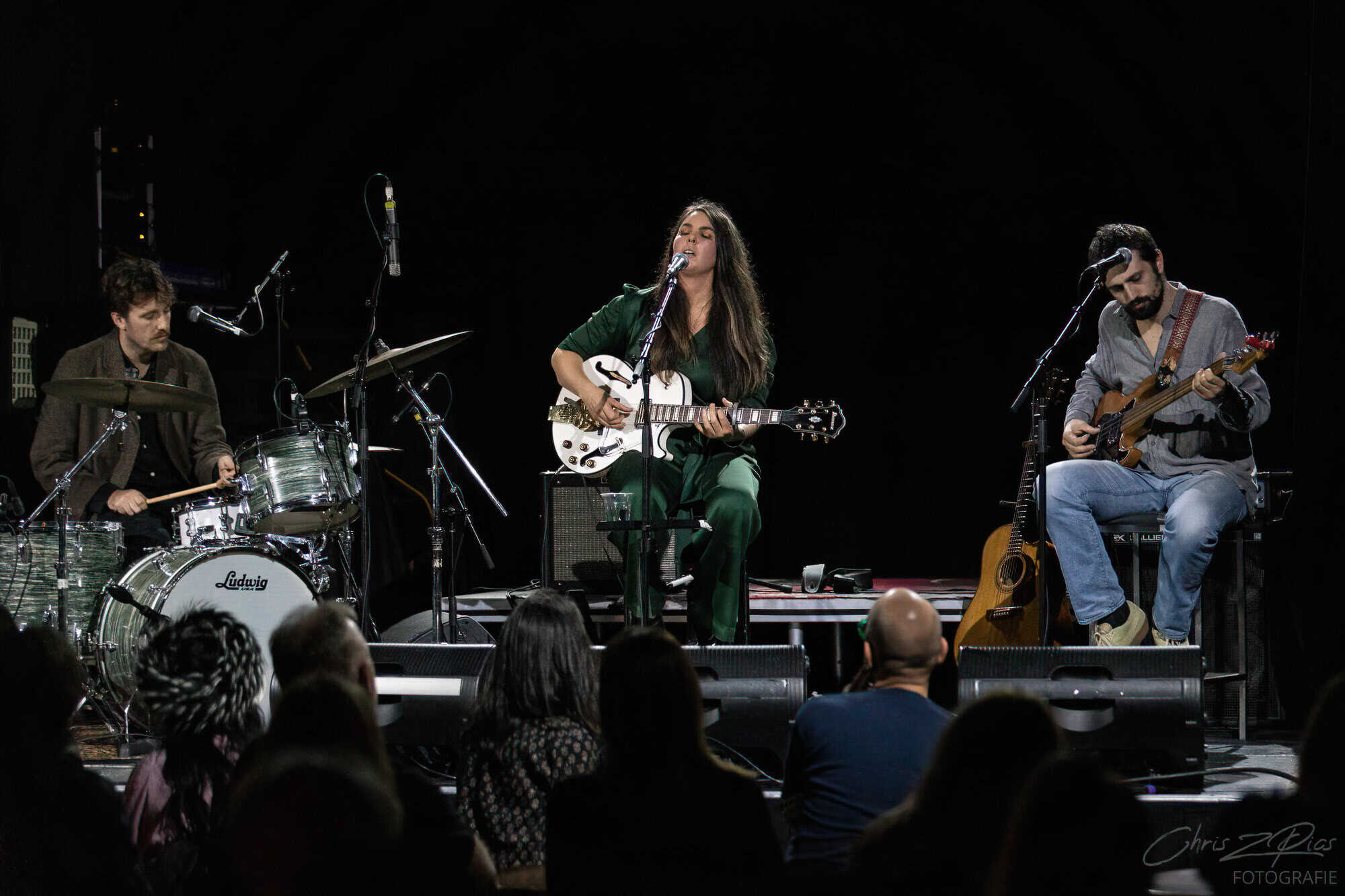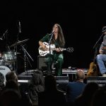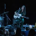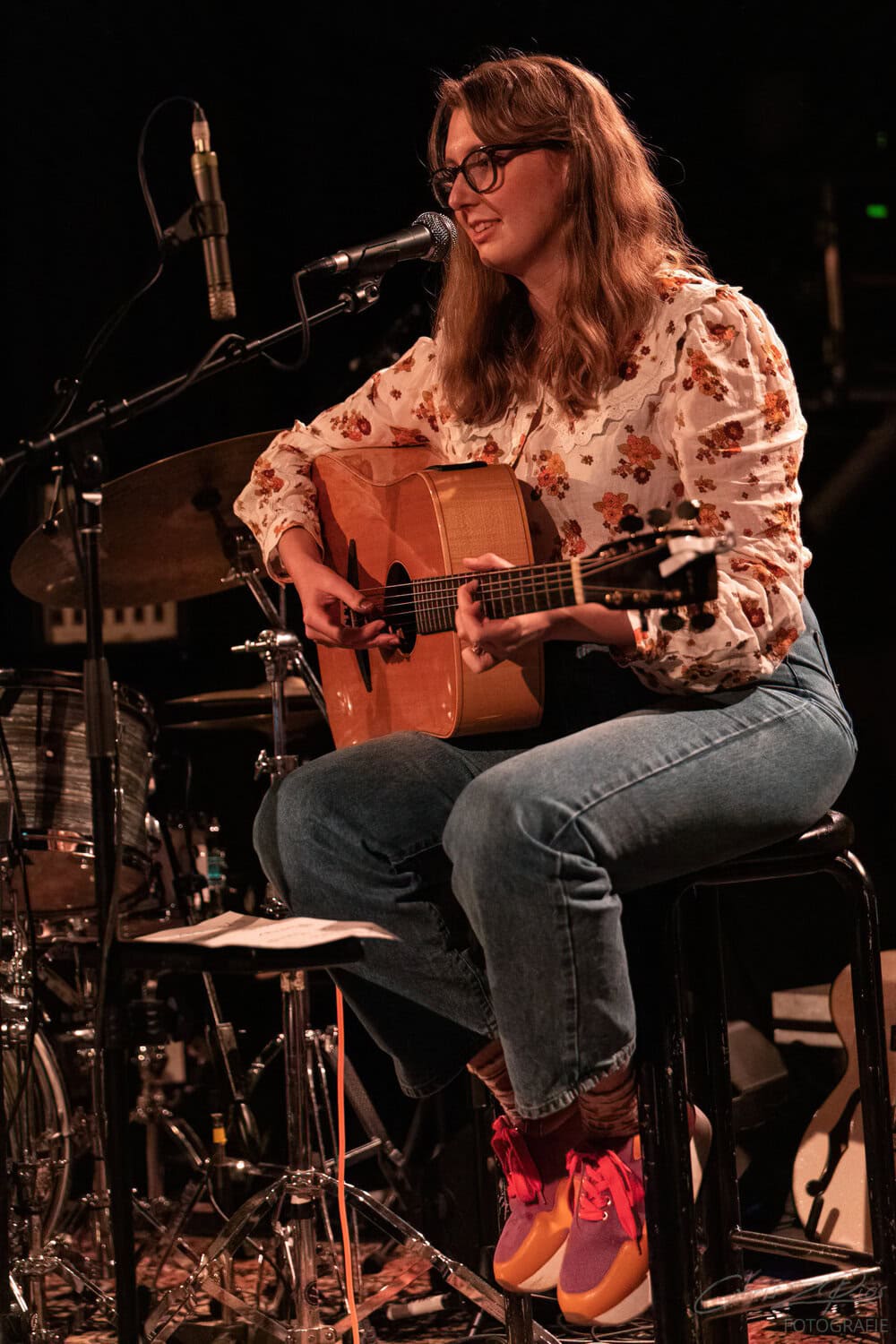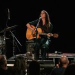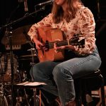 It was 9pm when Mel took the stage, initially solo, acoustic with a shout of “We love you Mel!” coming from the audience. Mel gets settled in, taking time to find a safe place for her glass of water which is precariously perched on a small platform in front of her.