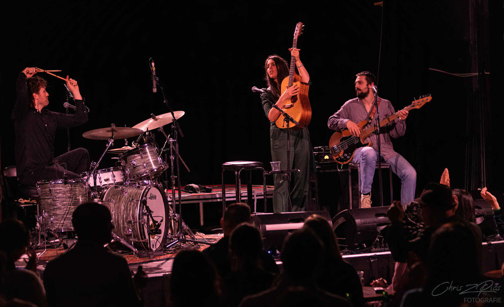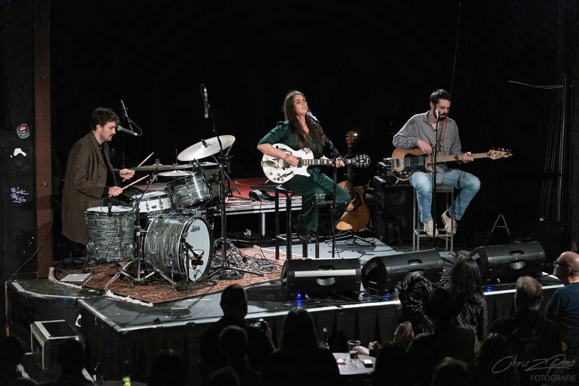 “I was going to open with a song called Blame”, explains Mel, noting that it might be too depressing, she saves it for the second song and instead plays Down So Long from Drylands.