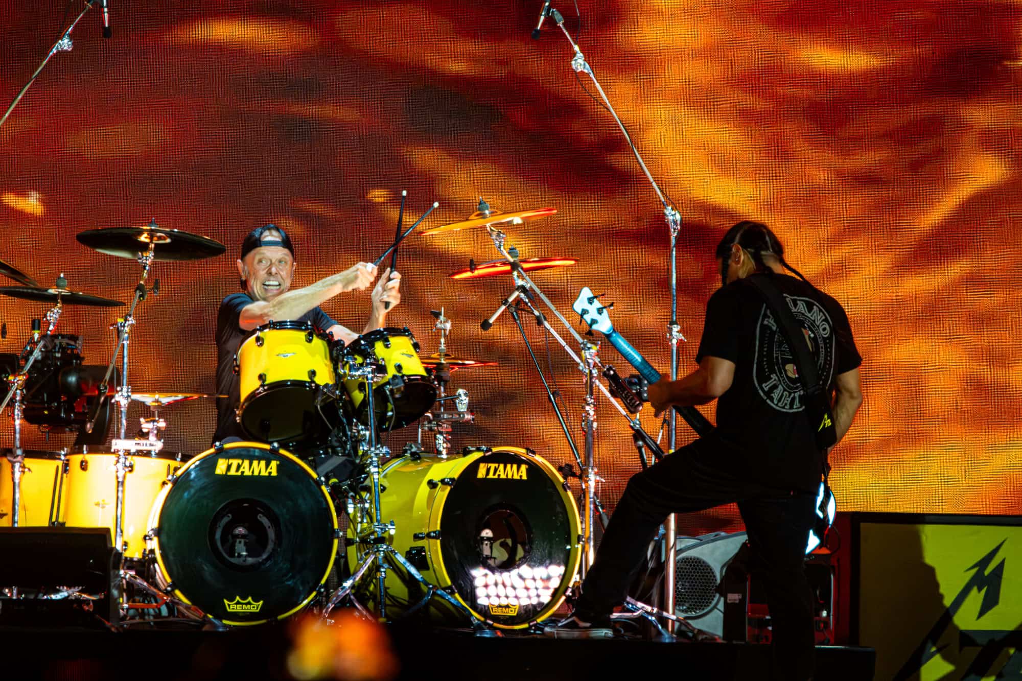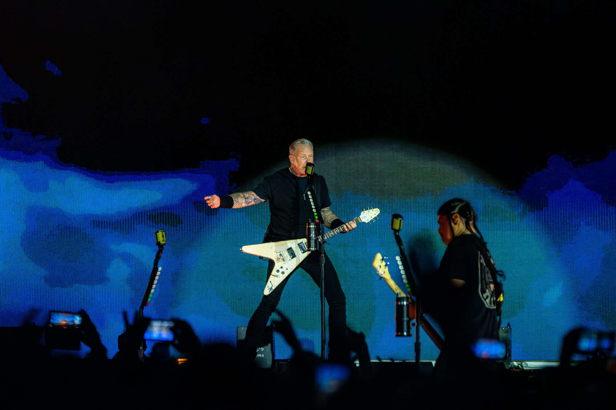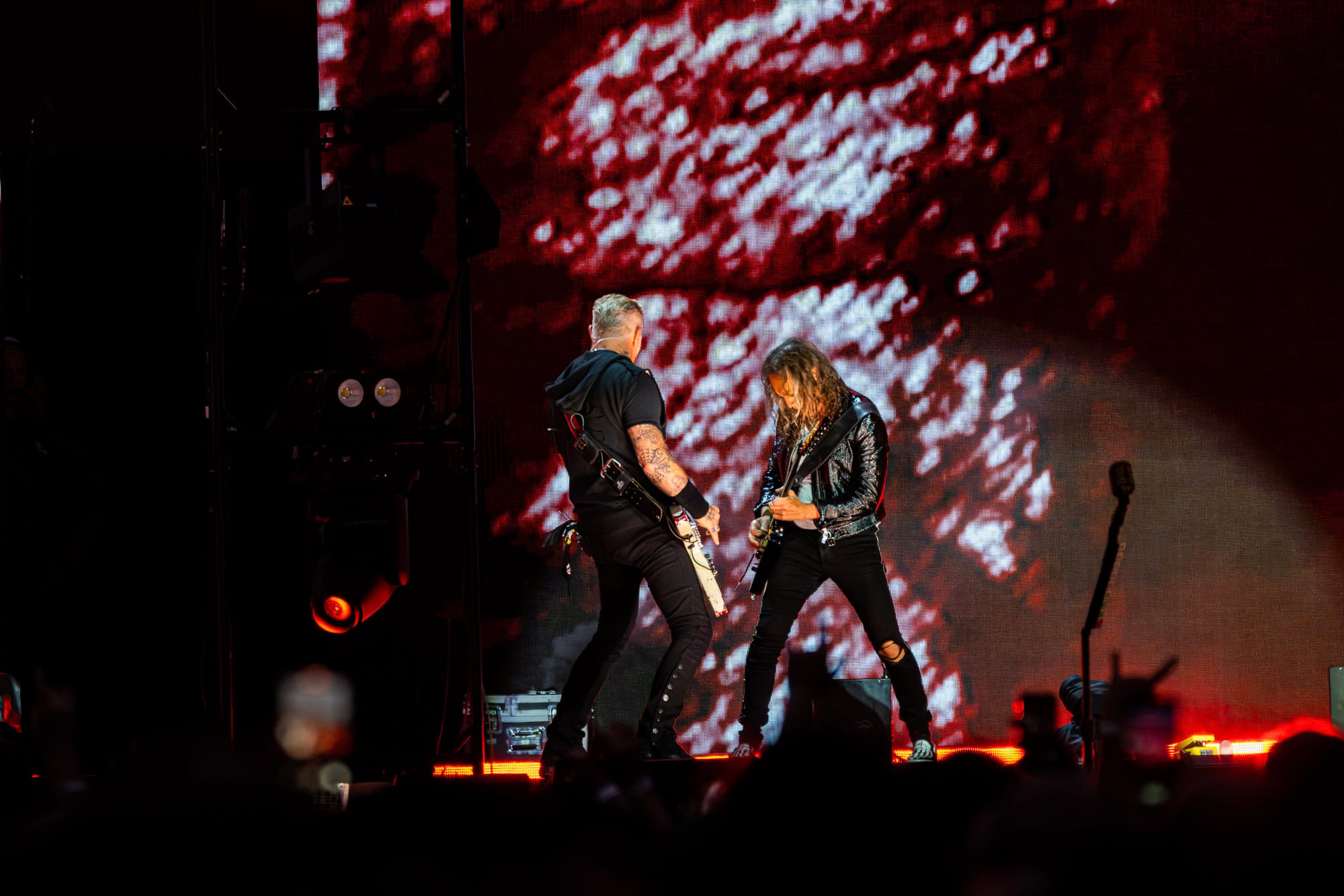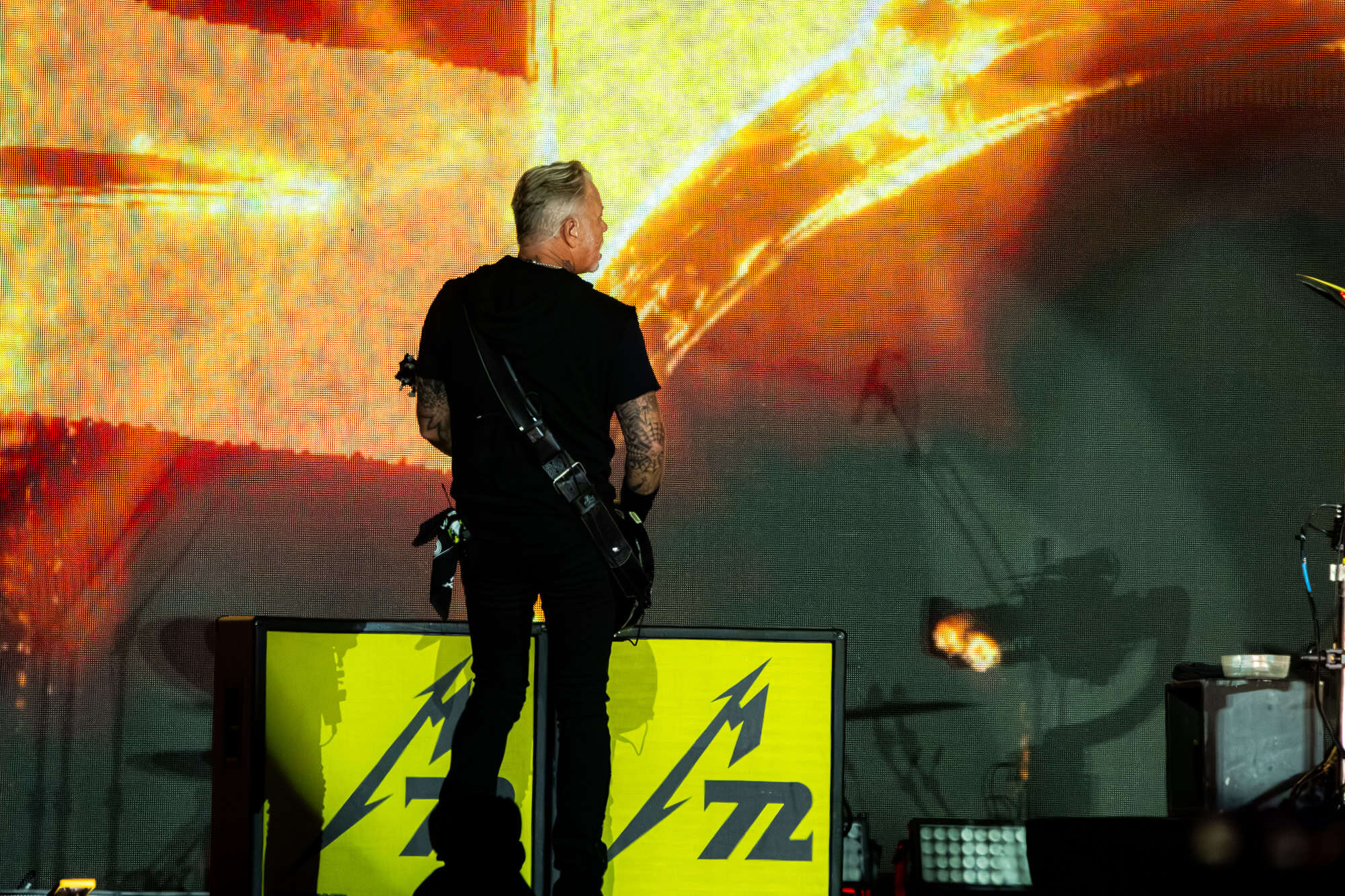 Seek & Destroy detonated and the stadium turned playful. Giant black and yellow Metallica beach balls were unleashed over the crowd, dozens of them bouncing slowly above the floor and fighting against the wind that forced them back towards the stage. Grown adults swatted them with the enthusiasm of sugar-drunk kids at a birthday party. Lux Æterna gave the 72 Seasons era its moment, buzzing with high-tempo adrenaline and proving that the new material belongs in the same space as the classics. Master Of Puppets followed with its sharp, sudden, tsunami of sound. The place nearly levitated. Entire rows turned into mosh lines. People screamed the lyrics with the intensity of confession through the plumes of smoke and blur of phone screens.