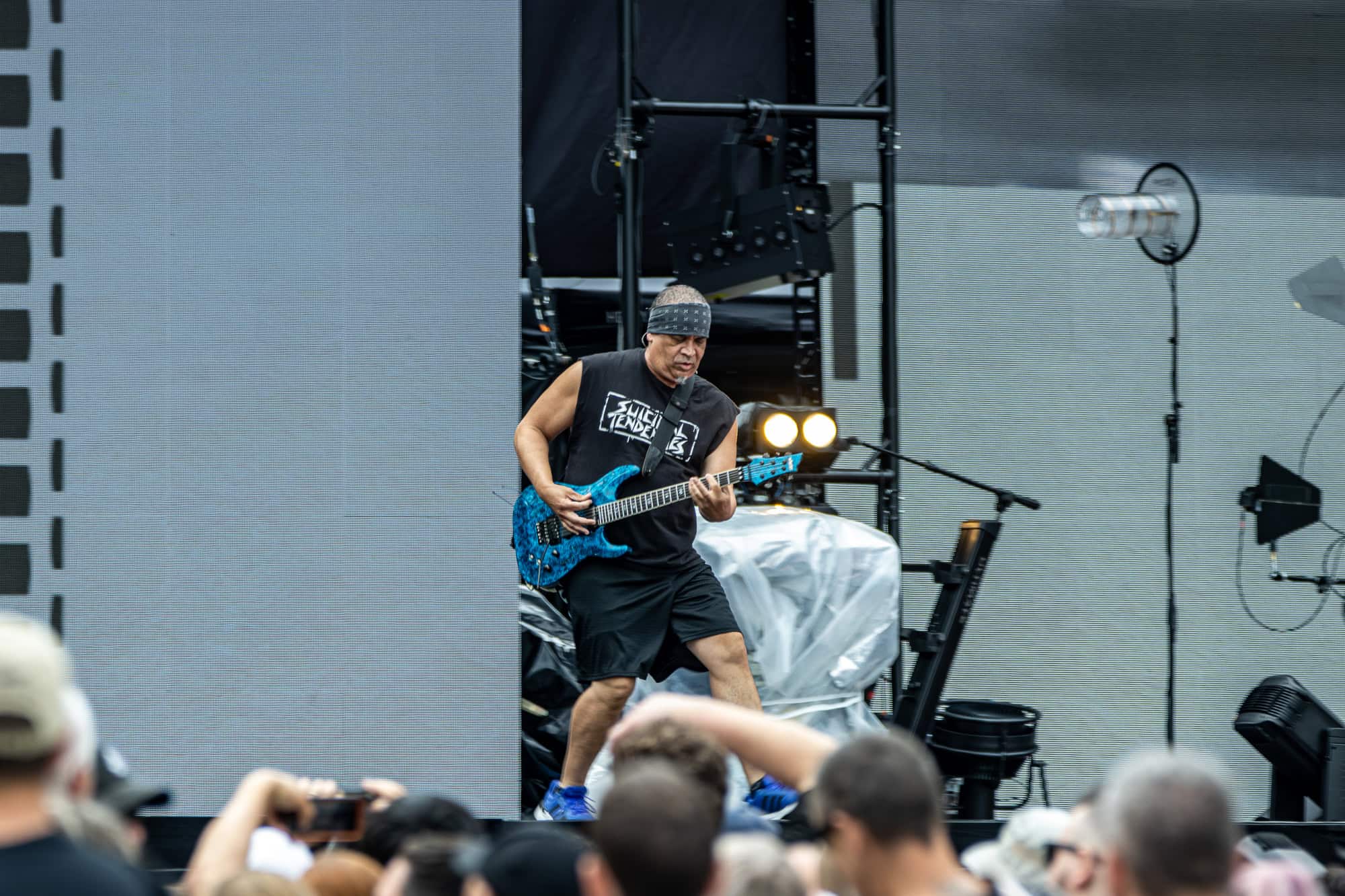 The crowd barely had time to wave before Creeping Death detonated out of the speakers – unfortunately to a heavy soup of audio mixing that would occasionally resurface through the night. With the crowd’s energy so high, you could argue it felt like a raw part of the experience, that this wasn’t a sterile hi-fi arena show and instead it was a very loud band wrestling with the physics of an outdoor stadium.