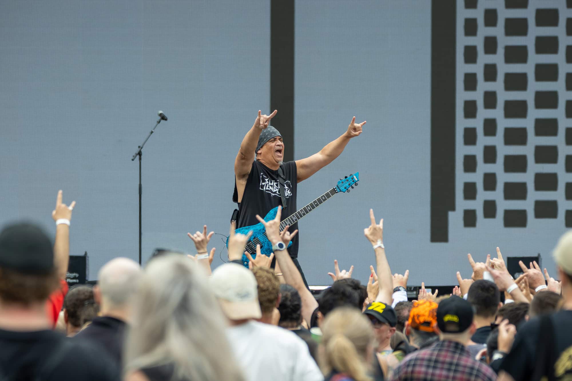 You could feel the build-up before you even saw the stadium. On the train into Kingsland, whole carriages were black cotton and denim, faded tattoos and a sea of well-worn band shirts and patches. Every second person had that excitable energy. Every third person had that look of someone quietly vibrating, trying not to admit how much this night means to them. A lifetime of riffs stored in the back of the skull, finally about to be absorbed at weaponised volume.