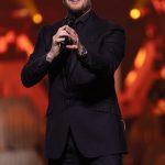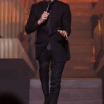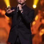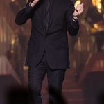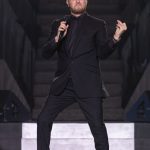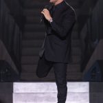 Dressed in black, the 5 time Grammy winner performed Dean Martin’s Sway and referenced his influences – including Bennett, Sinatra and Elvis Presley, with whom he made a posthumous recording of Fever, before accompanying himself on guitar and segueing into a short medley of The King’s hits.