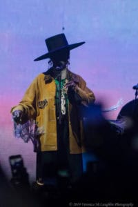 Spark Arena was pretty close to being sold out – a packed house that absolutely adored Lauryn Hill – all ages, cultures, colours, genders. And everyone standing on the floor was directly in front of me. I braced myself and my ridiculously heavy camera for the show to start. Hill appeared in silhouette – in an enormous wide-brimmed black hat. And when the stage lights came on her face was in complete darkness, that hat blocked every last bit of light from above. She struggled to keep it on her head, as the numerous (electric) fans on the edge of the stage threatened to blow it off.