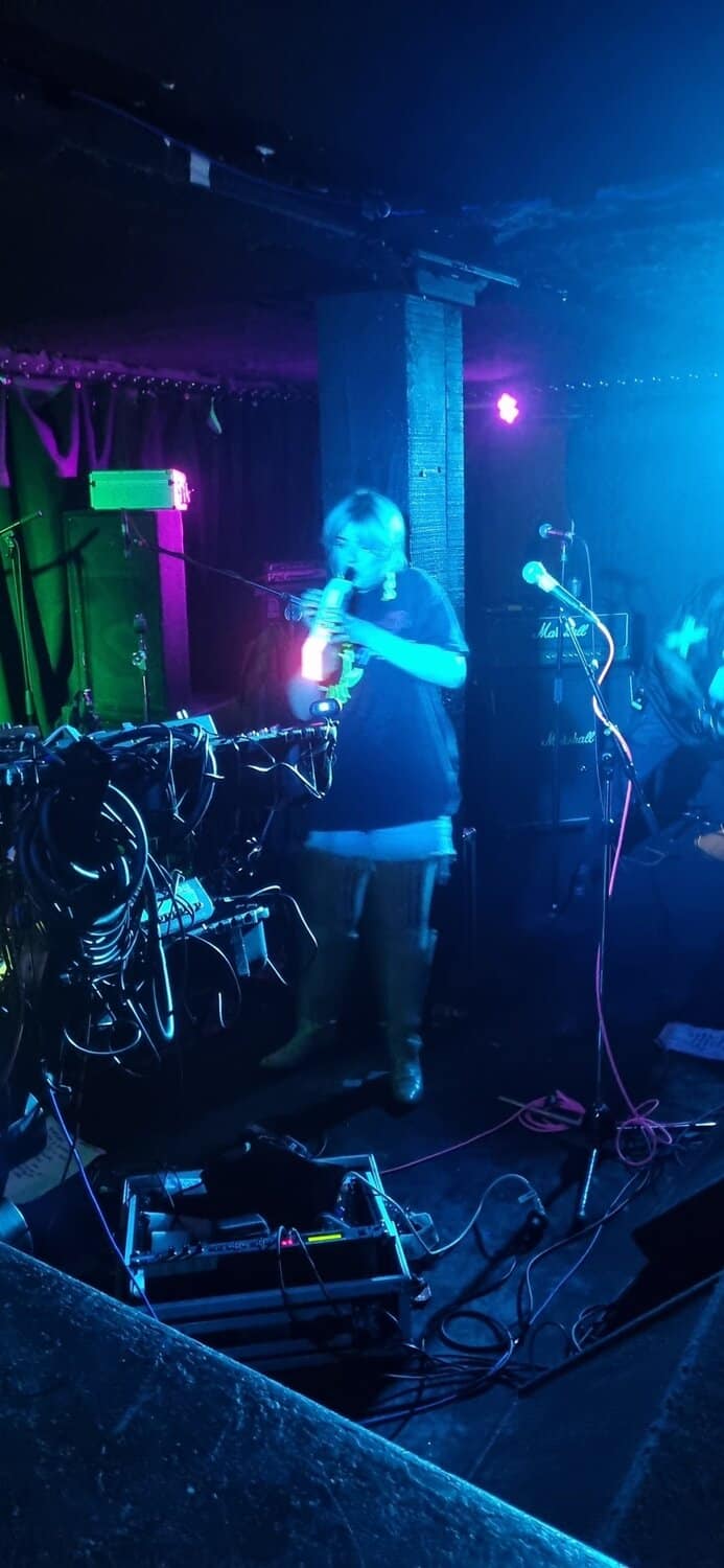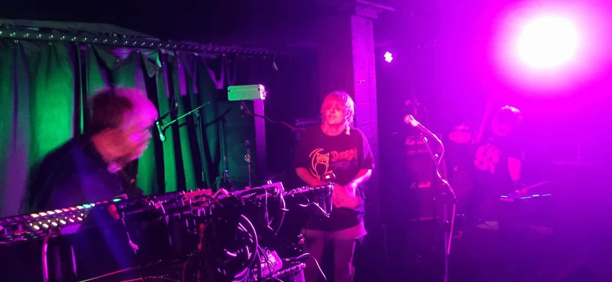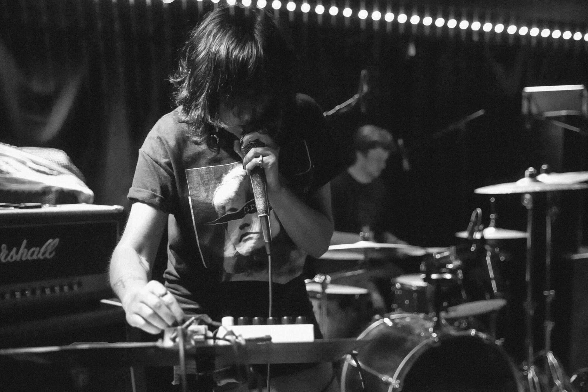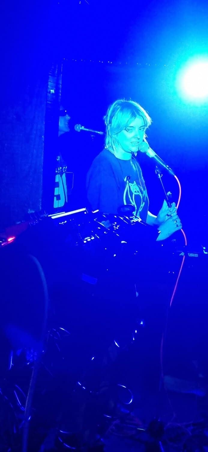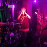 But if a group is going to bare themselves with just rhythmic tools, whence narratives are delivered in a manner of pre/post punk absurdism, think Cabaret Voltaire/Coum transmissions without the cut ups, visuals and triggers, then absolutism needs to prevail. Nick Harte’s bass skills are meritorious, there is a fluidity and an intricacy that holds, The affecting of Hannah Harte vocals adds. However the drumming is at times colourless, perhaps a symptom of youth. In a set that was a little long, I found myself wanting  a whole lot more from Moider Mother. Click on any image to view a photo gallery by Brenna Jo Gotje: