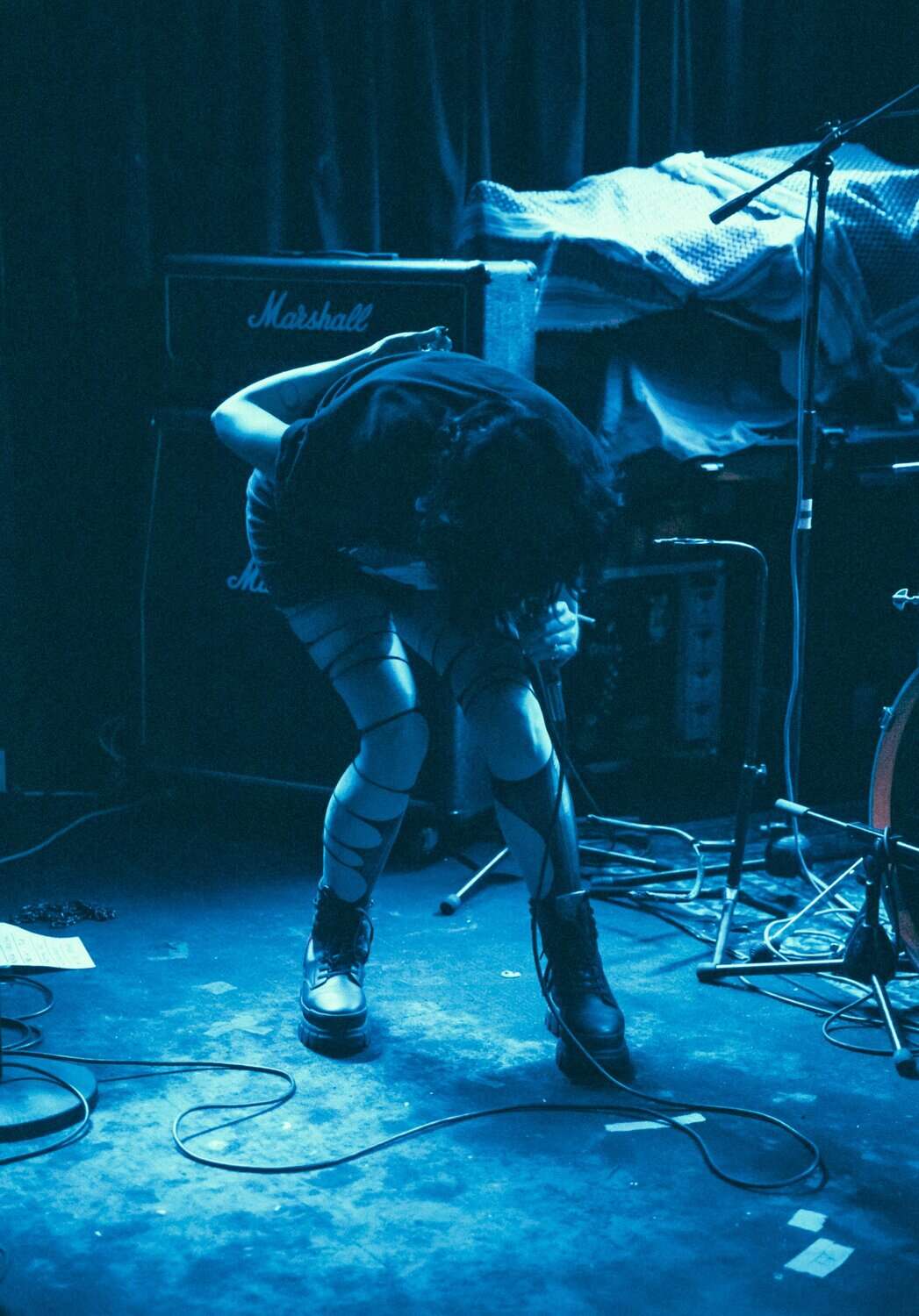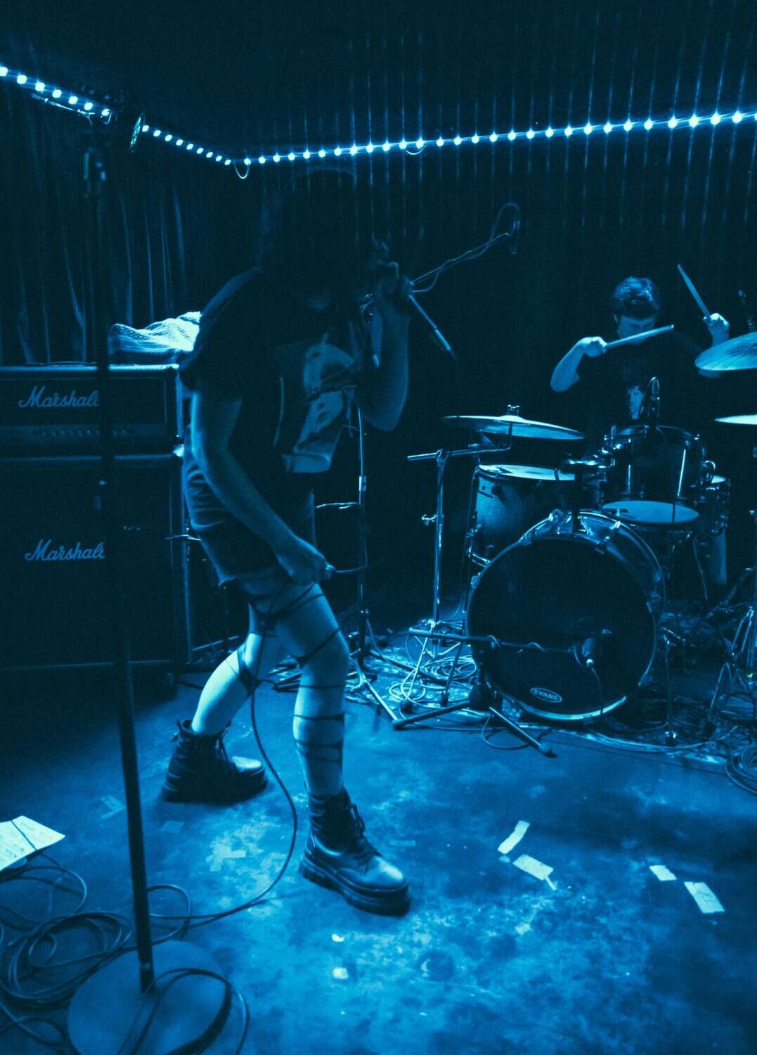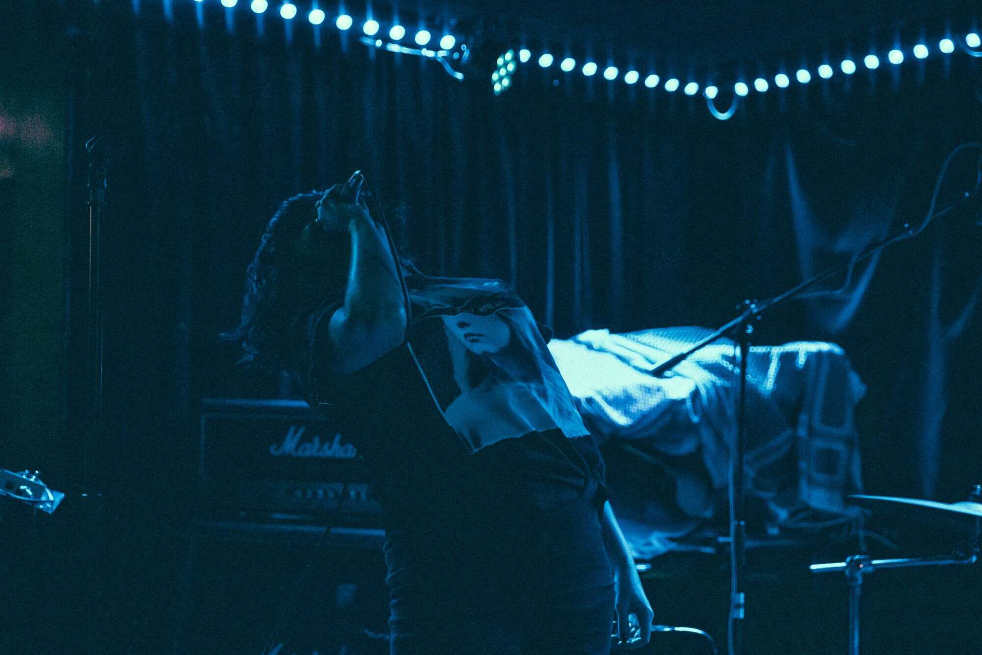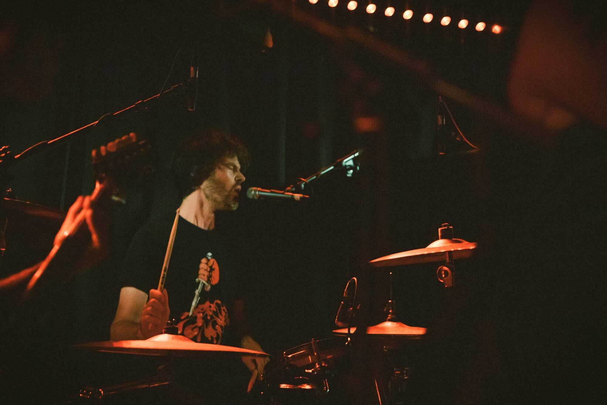 But if a group is going to bare themselves with just rhythmic tools, whence narratives are delivered in a manner of pre/post punk absurdism, think Cabaret Voltaire/Coum transmissions without the cut ups, visuals and triggers, then absolutism needs to prevail. Nick Harte’s bass skills are meritorious, there is a fluidity and an intricacy that holds, The affecting of Hannah Harte vocals adds. However the drumming is at times colourless, perhaps a symptom of youth. In a set that was a little long, I found myself wanting  a whole lot more from Moider Mother. Click on any image to view a photo gallery by Brenna Jo Gotje: