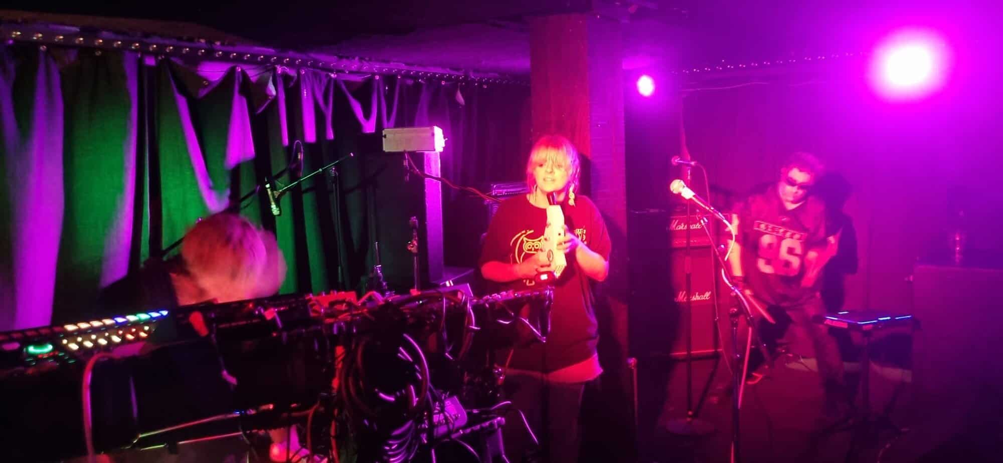 Tonight is Ōtautahi Moider Mother’s debut Tamaki Makaurau show, yet they are not headlining. Moider Mother are Hannah Harte, Noah McKay and Nick Harte, Nick Harte was/is The Shocking Pinks, a band that flamed and then (perhaps in abeyance) flamed-out.