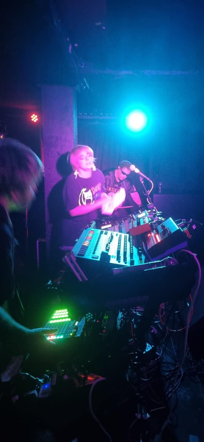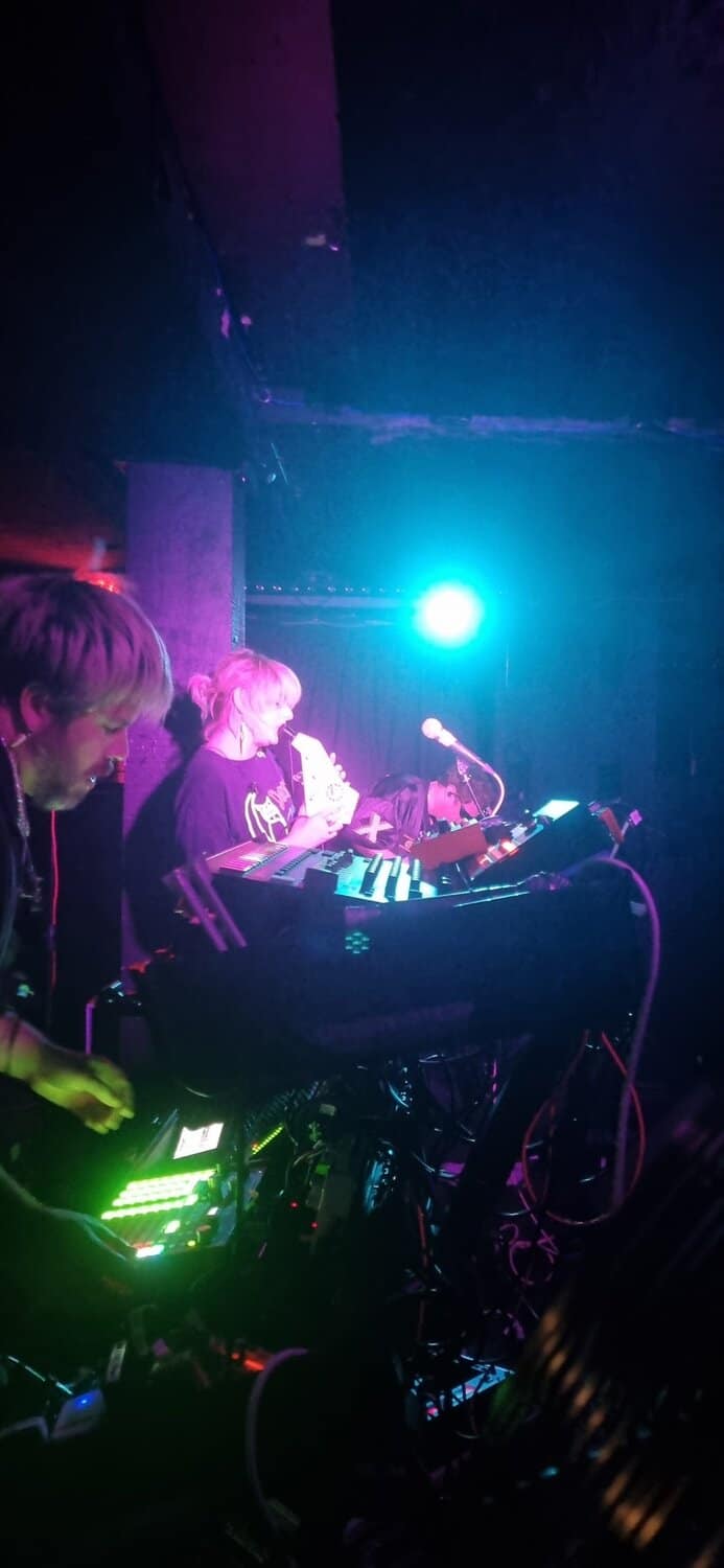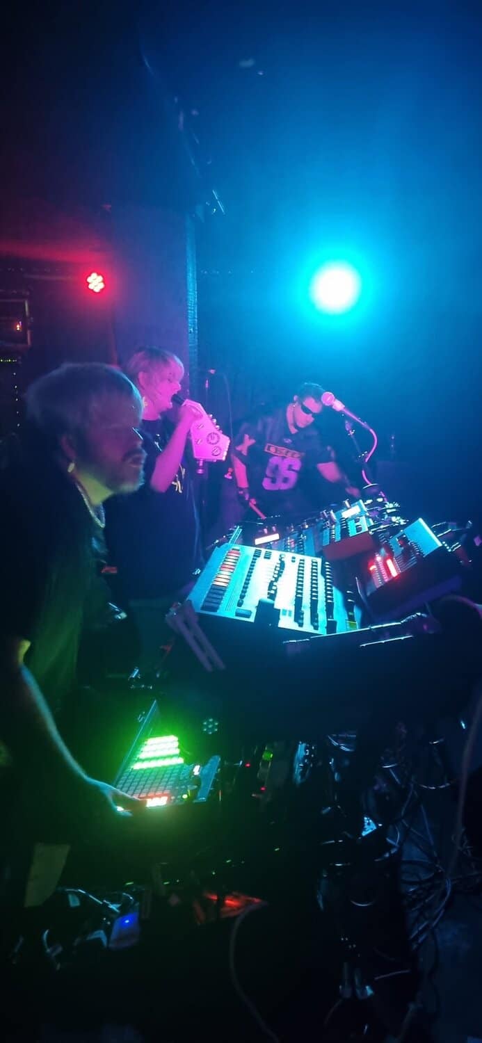 Are Billie Fee (she/her), Mikey Sperring (he/him), and Damian Golfinopoulos (he/him) A bus driver, an opera singer, and a Greek filmmaker. Onstage there is a humongous array of diabolic digital devices on one side, while Fee and Golfinopoulos inhabit the other ⅔’s with microphones and much less gadgetry.