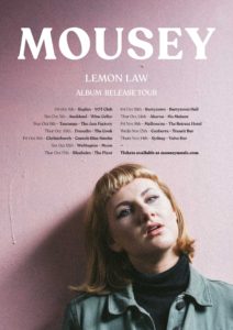 One of the most exciting new acts in New Zealand music, Mousey, has just announced her first-ever nationwide tour to celebrate the release of her debut album, LEMON LAW, due for release on October 4.