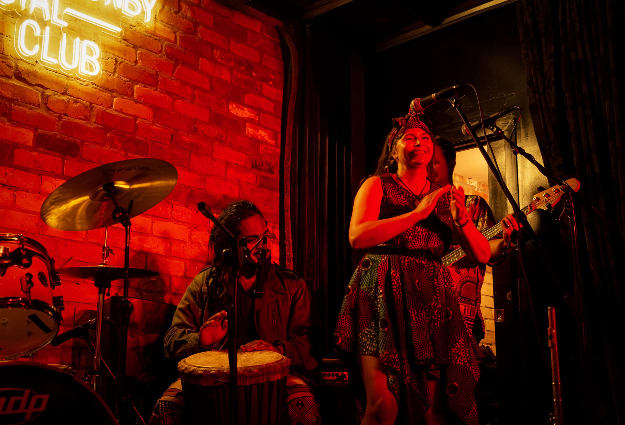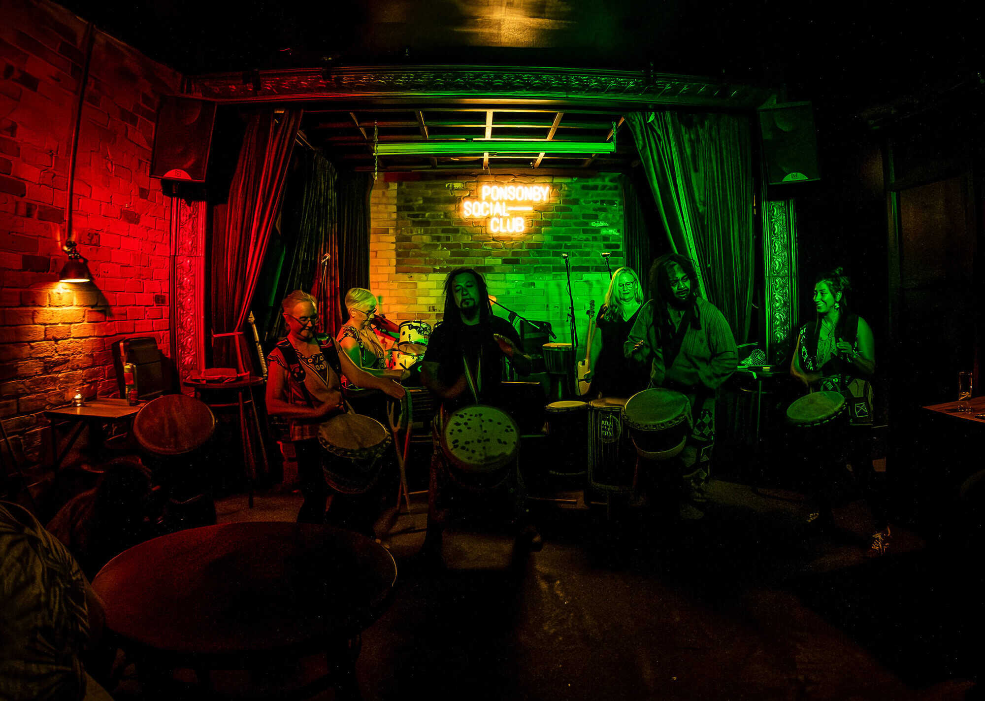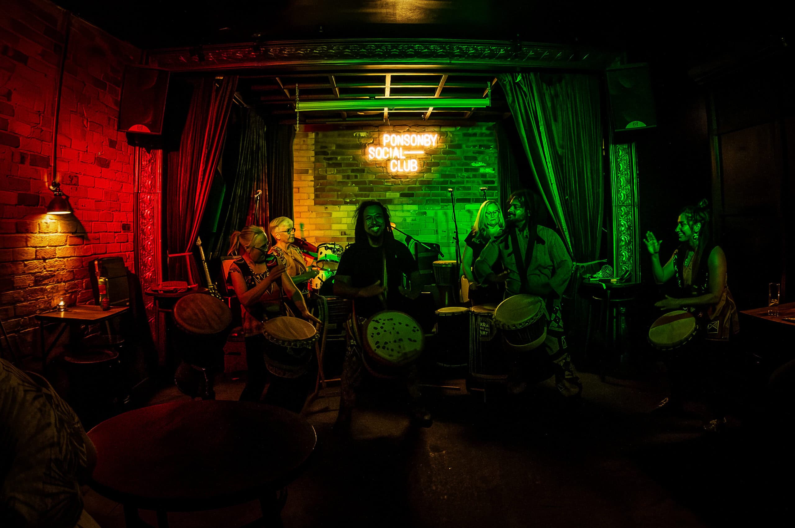 They’re supported, and sometimes aided by Kra Ko To Kra, a local drumming club bringing some African and Brazilian bounce to the Ponsonby Social Club.