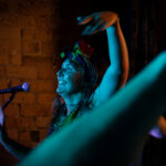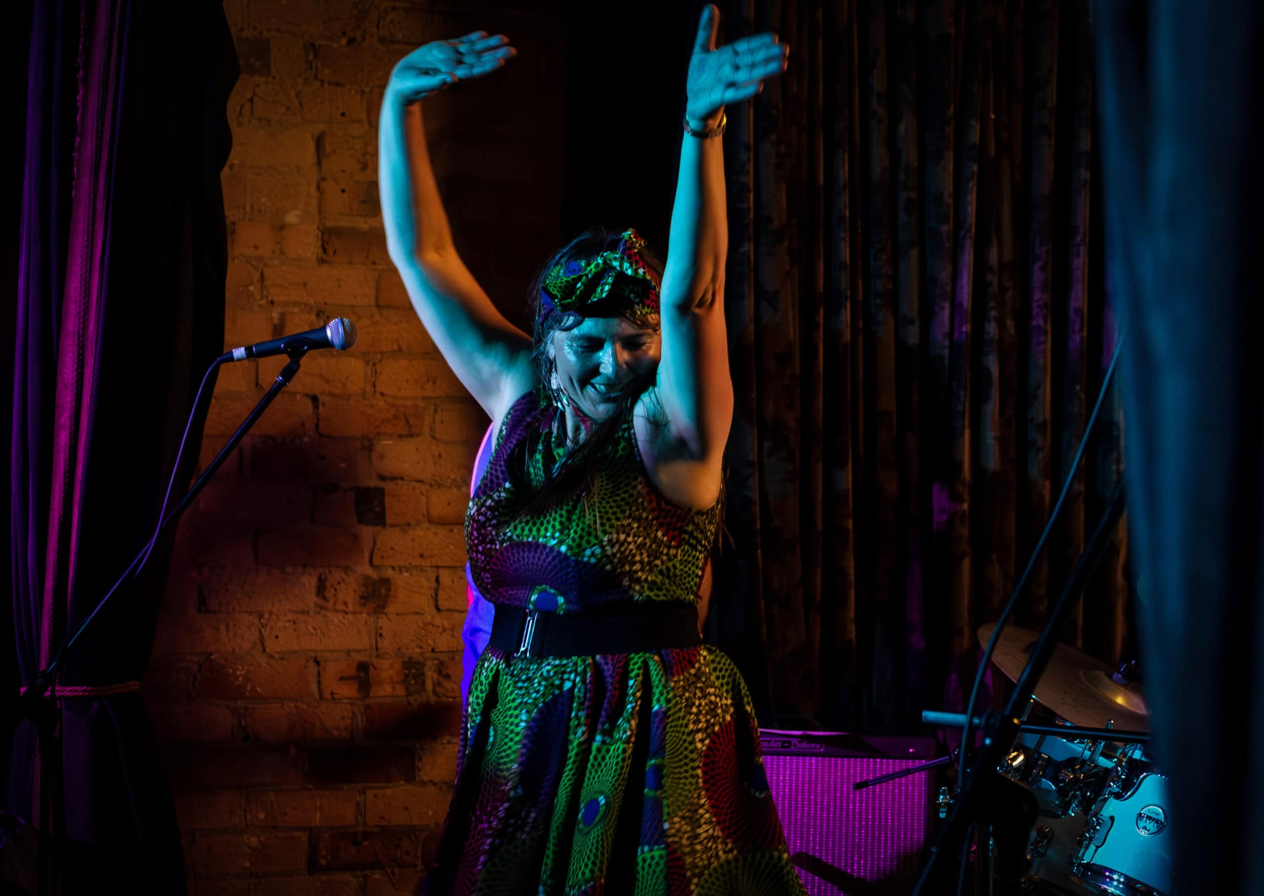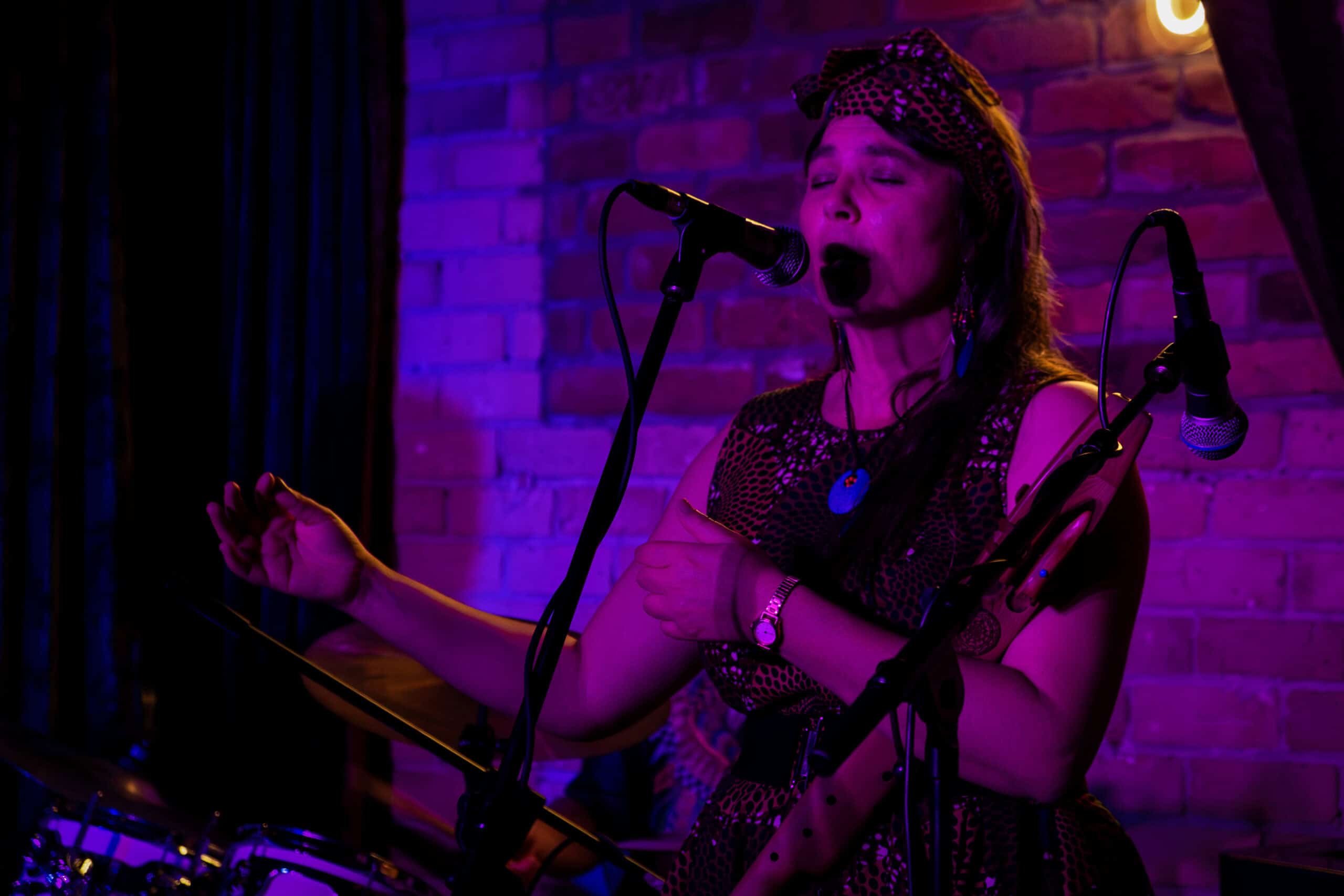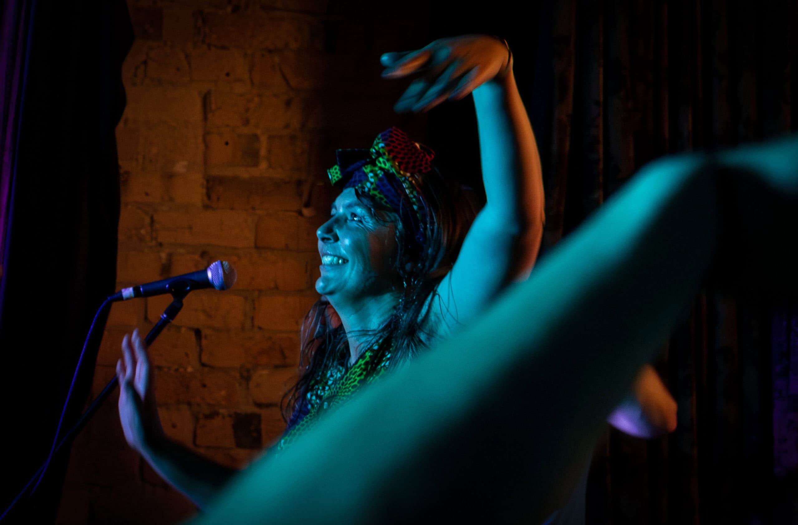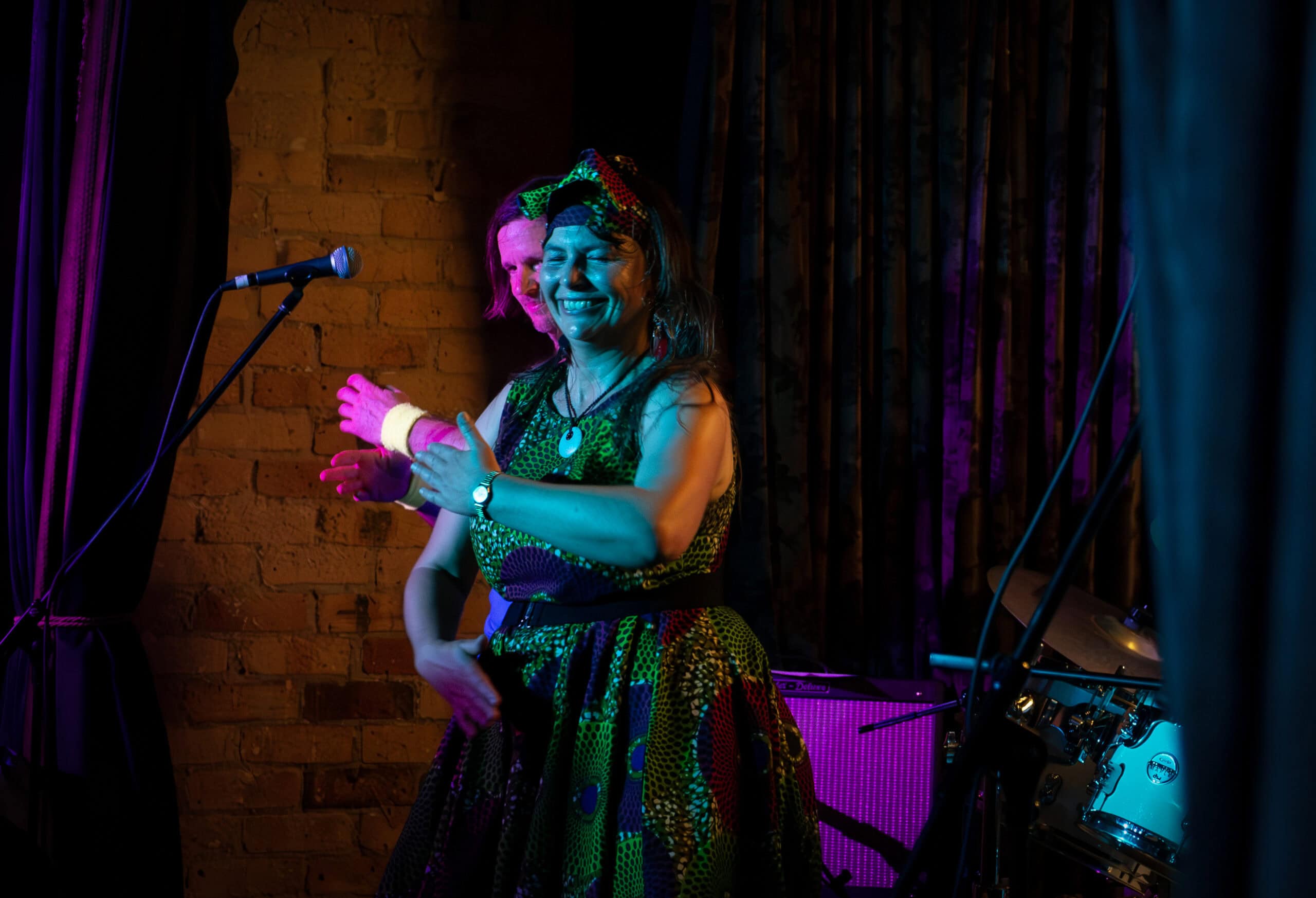 Over this is Tamara and her flutes, or on a bongo drum, or dancing or leading the crowd through a refrain or hand waving move. Her smile and energy are infectious and the eager audience are soon completely contaminated.