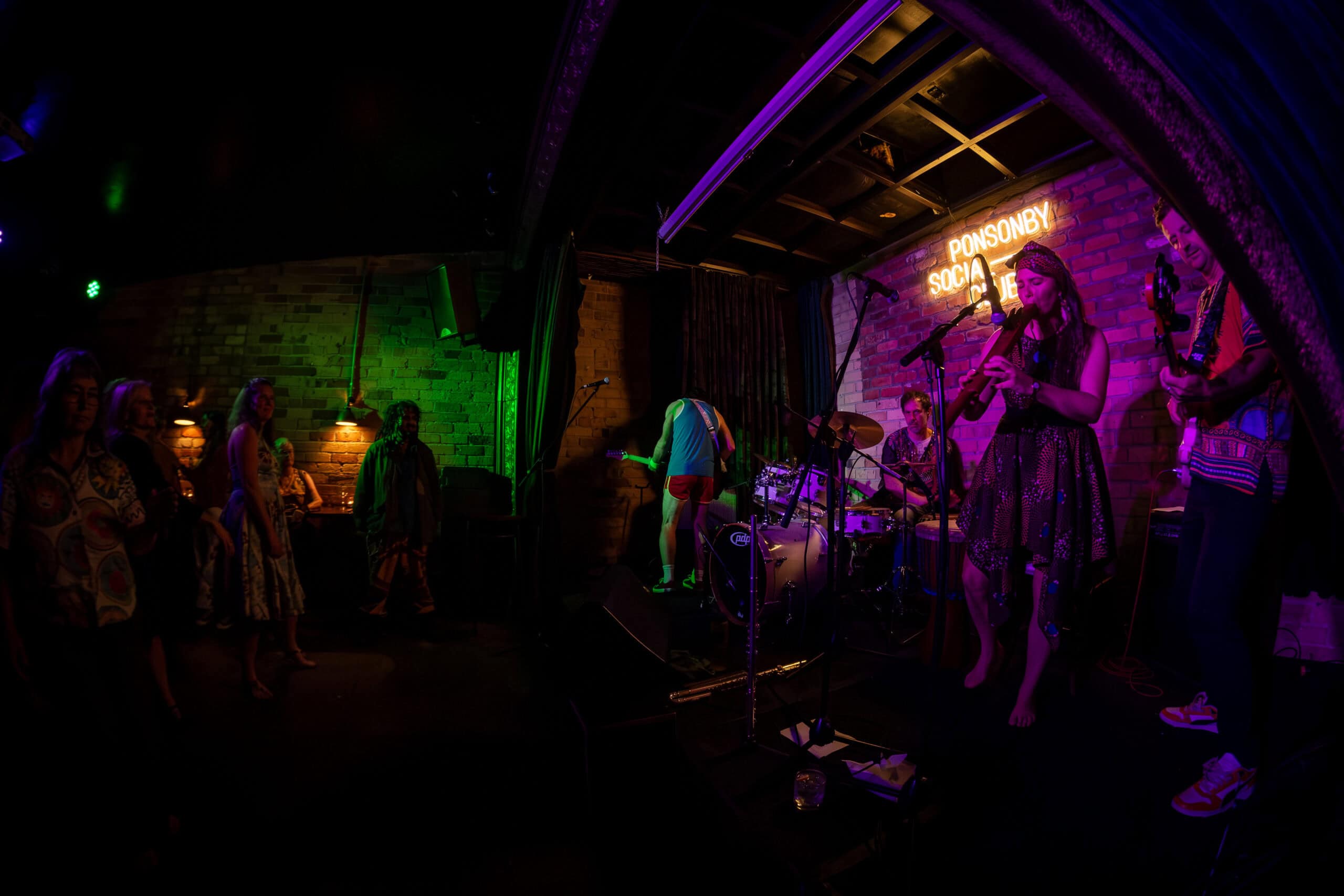 The dancing gets more animated as the heat builds. At times it seems half the group have leapt from the stage (not a great height) and have joined the fray or leading a conga line around the small but perfectly formed Ponsonby Social Club.