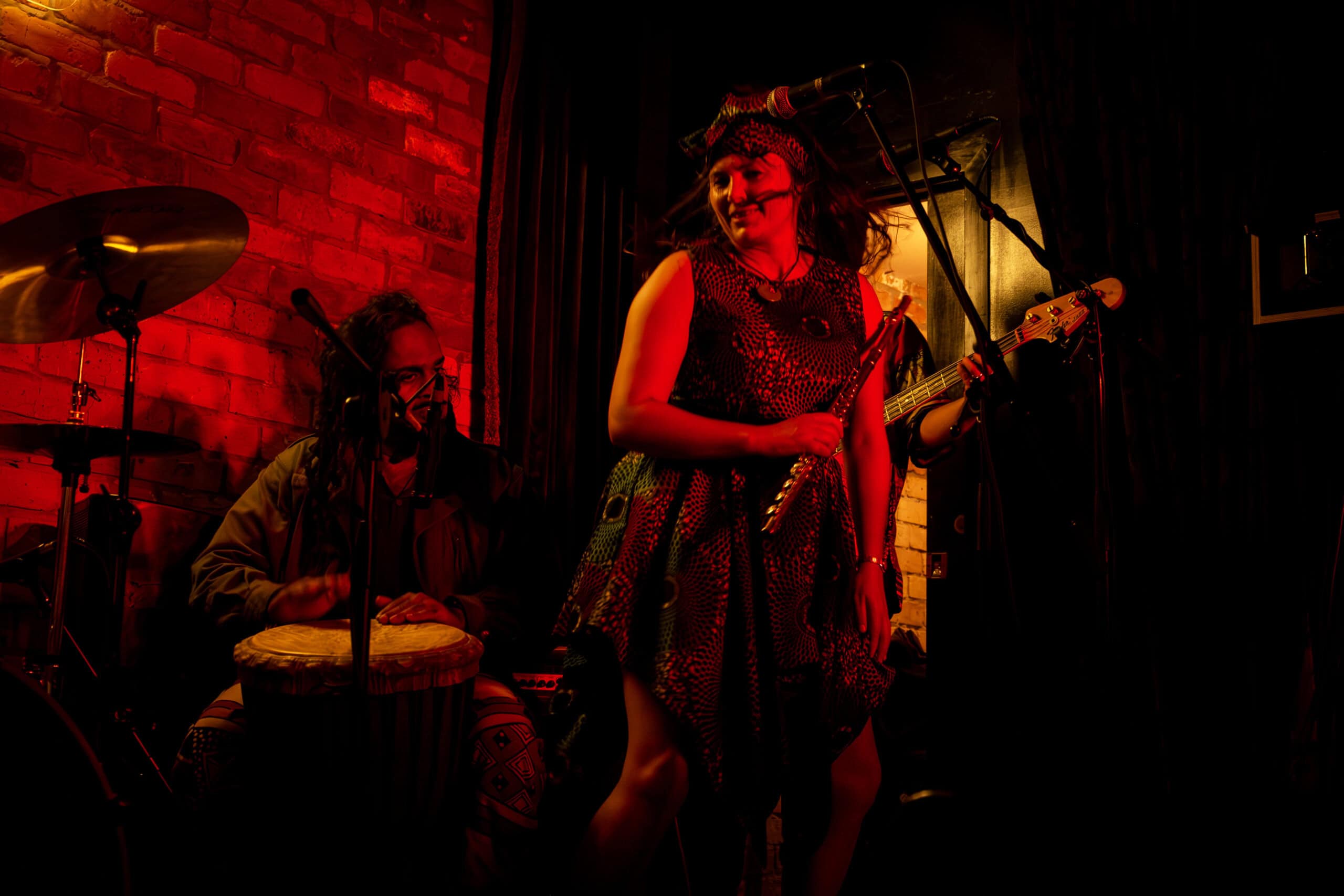 The modus operandi varies as some numbers are introduced with Tamara’s mellifluous flute meandering over shimmering drums before a sudden thwack of kick drum, guitar and bass announces the real reason we’re here. Others start off with a jumping vibe that keeps up a relentless pace that seems like an eternity, but feels not so long once its over.