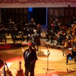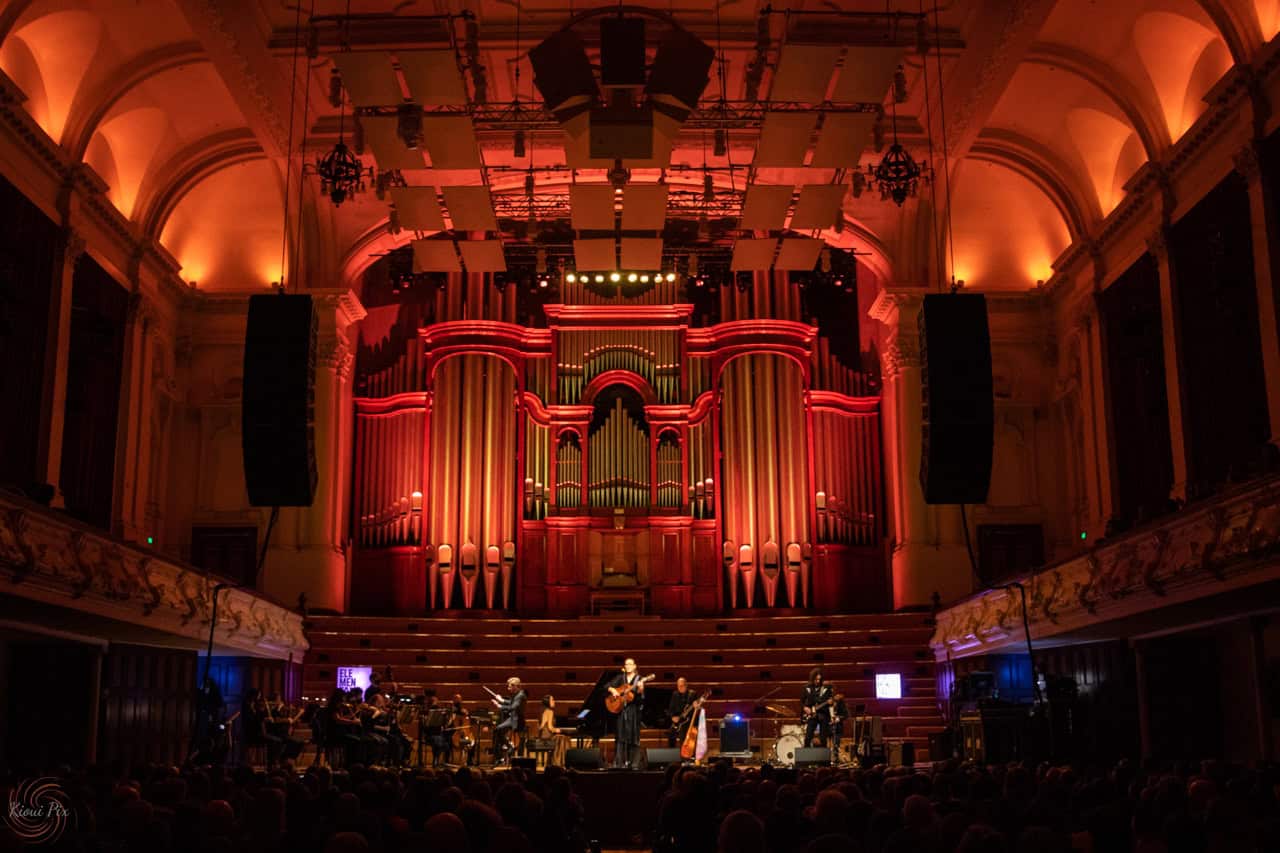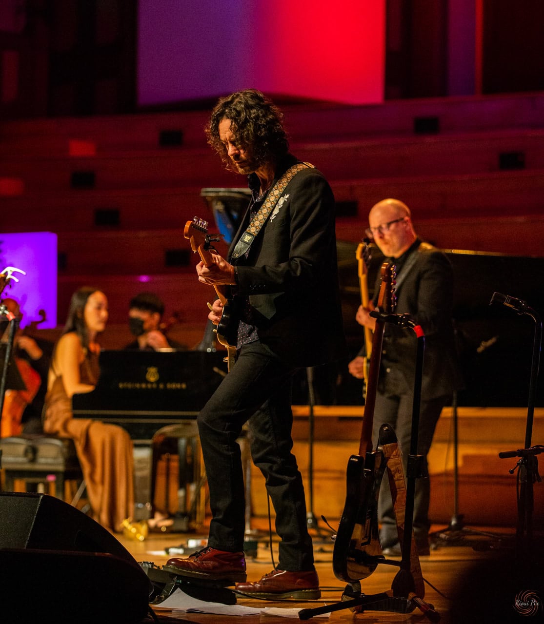 No more of the usual intimacy of the Wine Cellar or Tuning Fork, solo or with Sam Taylor. This was the Town Hall and a different experience altogether. Like seeing an old friend on stage for a graduation ceremony; in this case graduating into the company of the many-stringed Auckland Philharmonic Orchestra (APO).