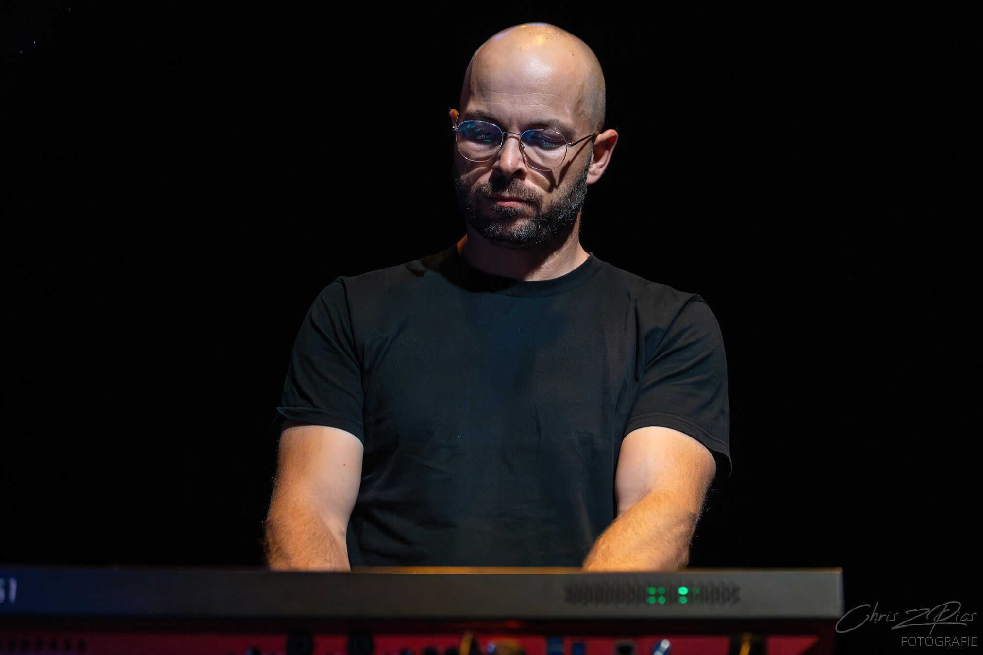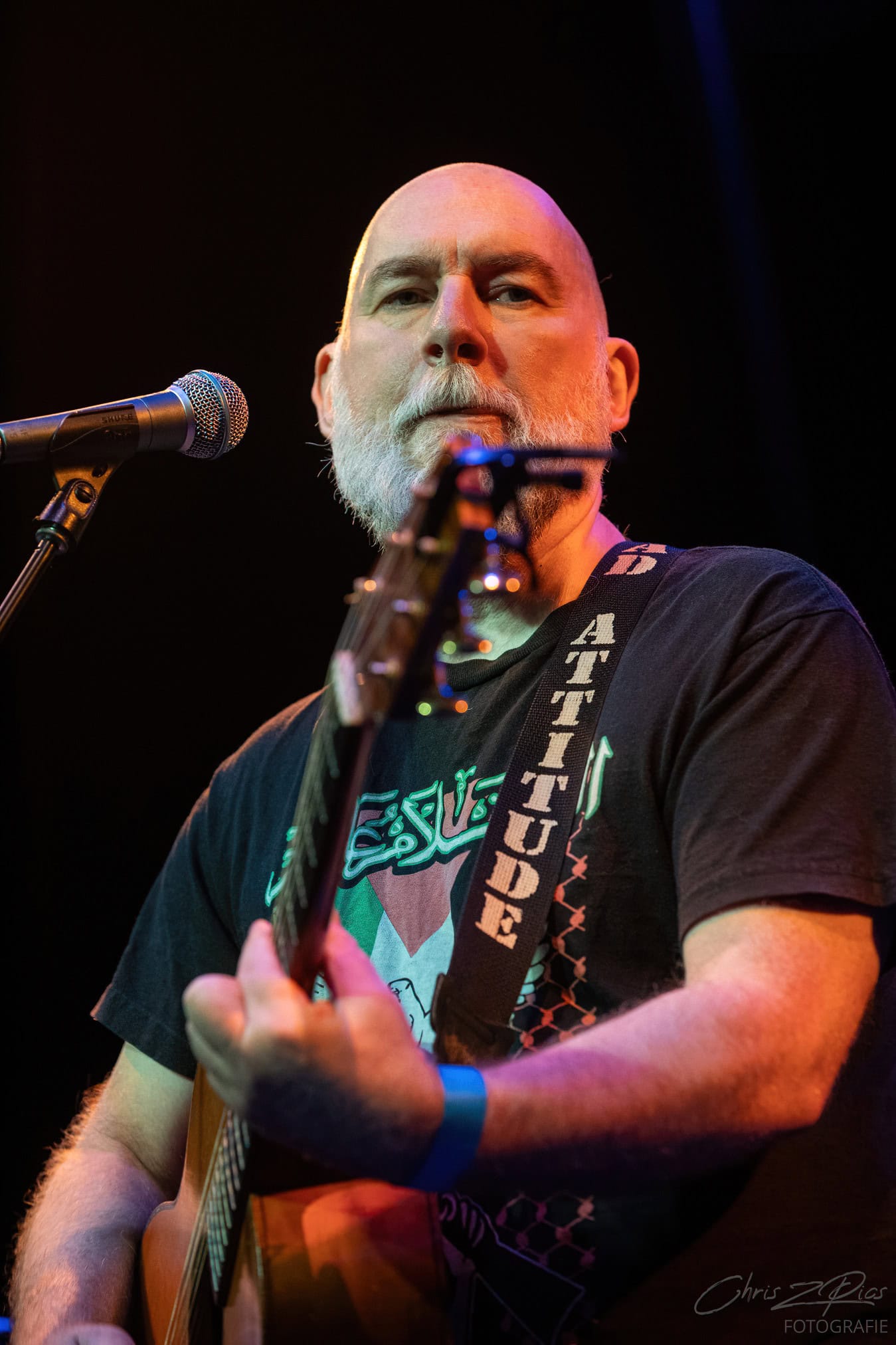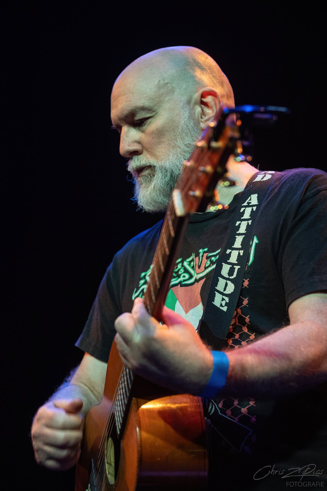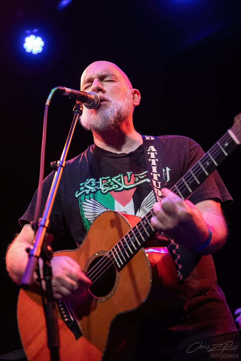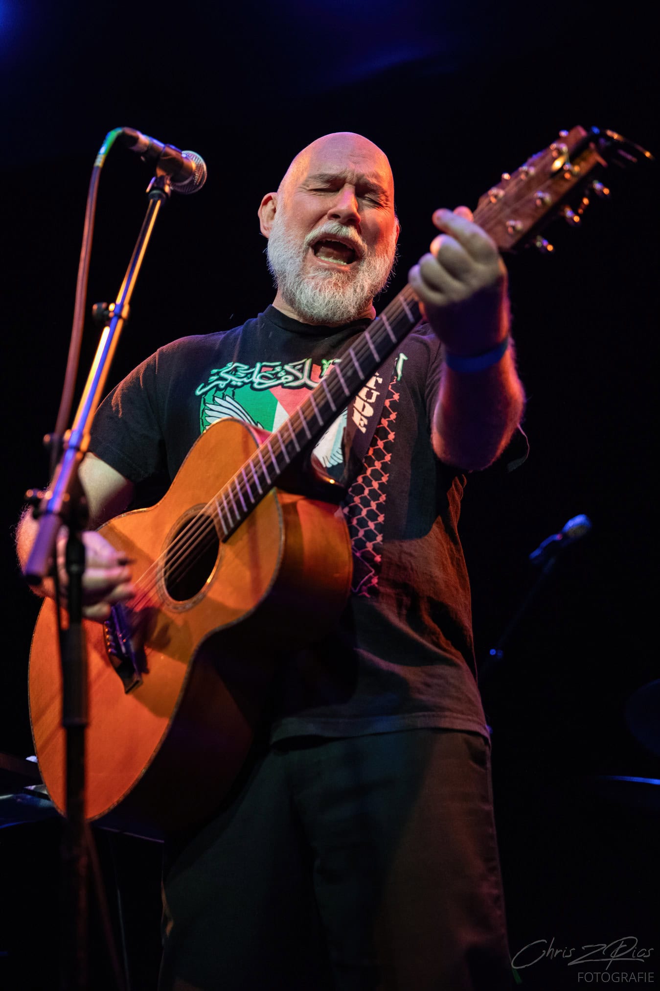 Tonight, its SJD on acoustic guitar overlaying various pedals that bring in a wide palette of sounds. Looking  monastic, happy and comfortable in his skin.