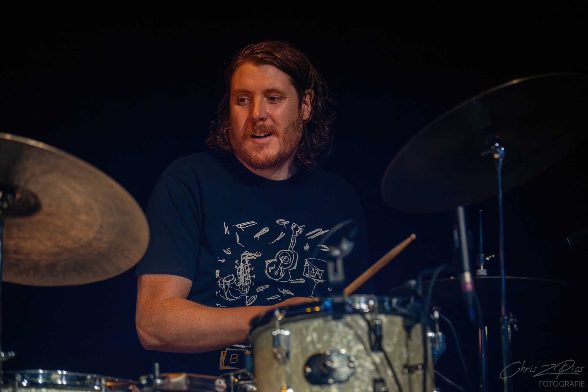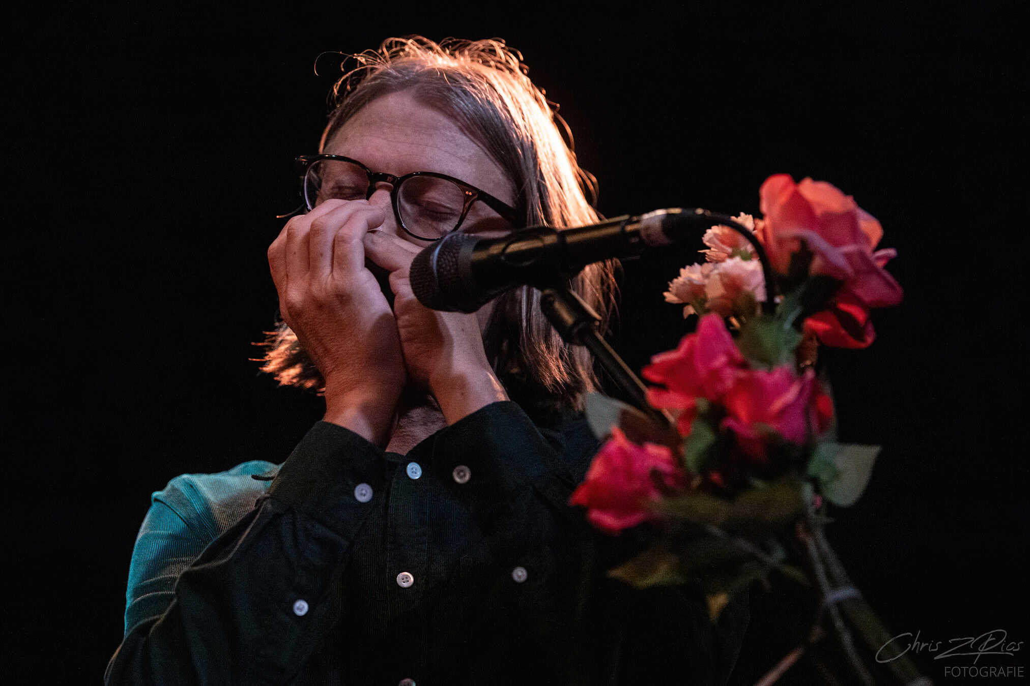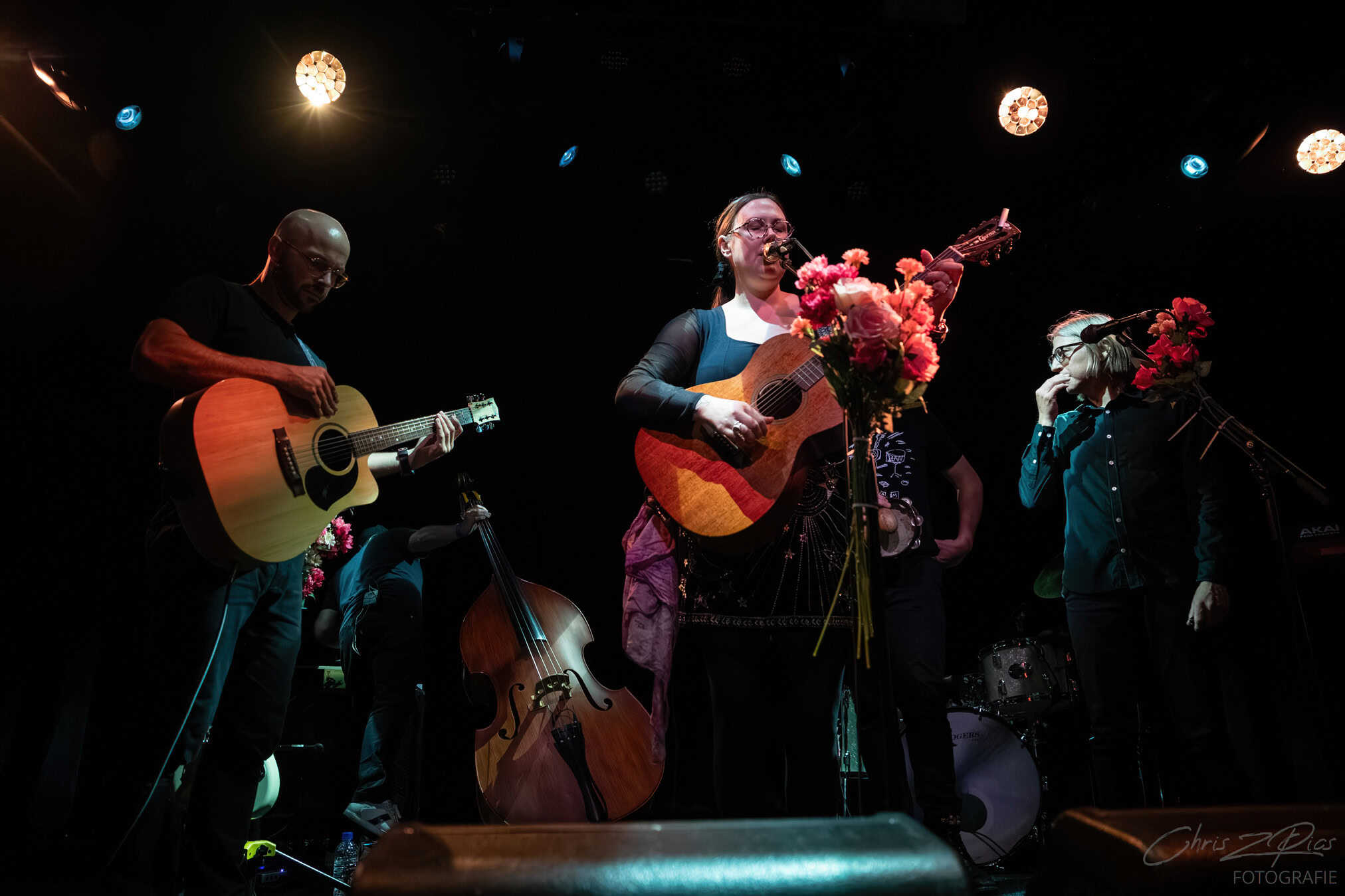 And what a band. Each with their own impressive CV. The four cluster around Reid for the opening song: Tom Healy, usually on guitar plays harmonica. Richie Pickard on double bass.  Joe McCallum conjures creative percussion. And there he is: Reid’s loyal guitarist Sam Taylor.
