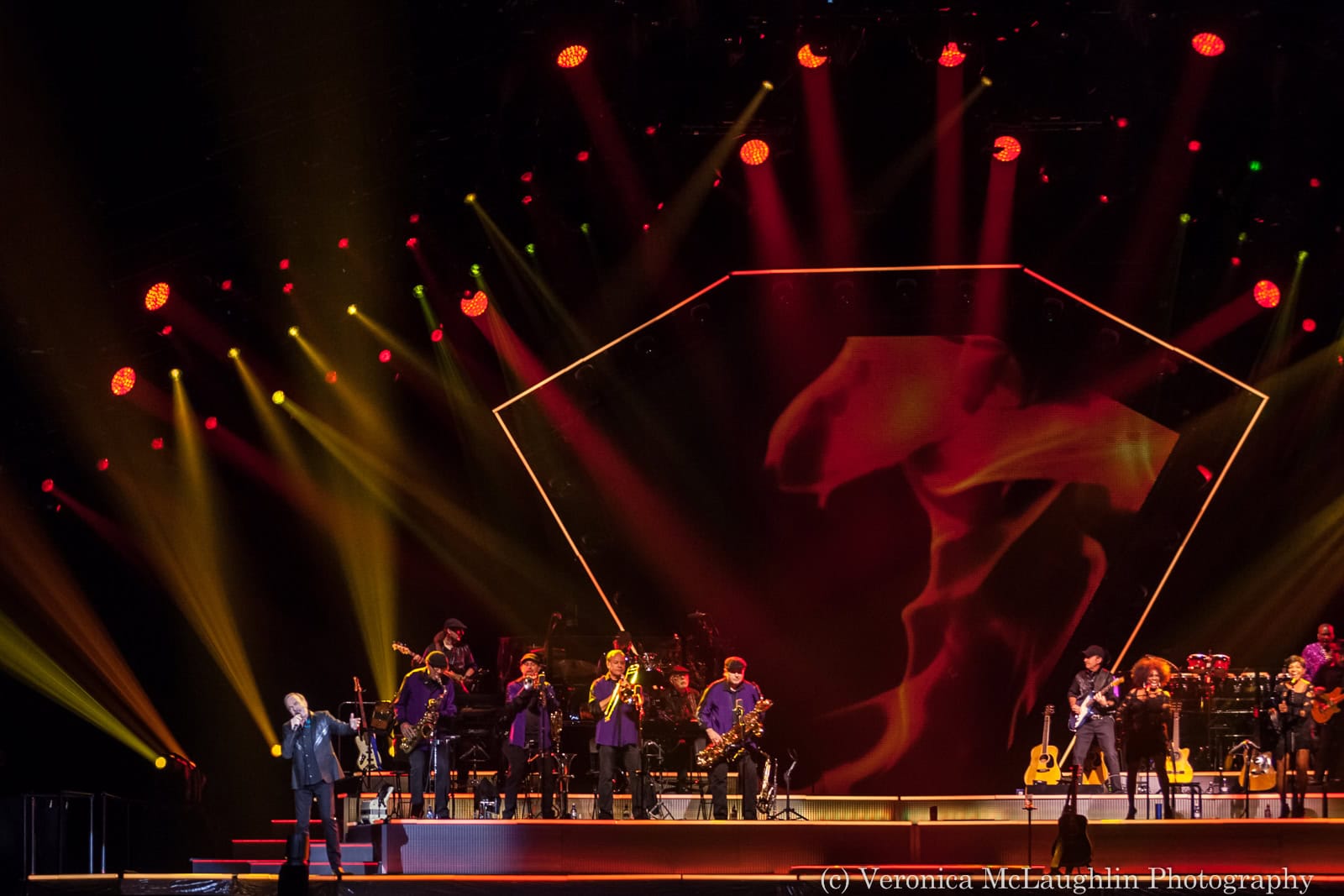 The 74-year old was looking dapper in a black close-fitting, lightly-sequined outfit. He was accompanied by a 13-piece band driven by legendary drummer Ron Tutt, who backed Elvis Presley for many years, along with two female backing singers and a four-piece horn section.