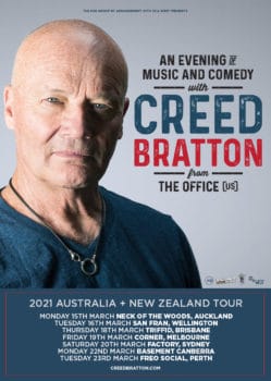 New postponed 2021 dates have been confirmed for American comedian and musician Creed Bratton for his New Zealand shows. Now performing at Auckland’s Neck of the Woods on Monday March 15, 2021 and at Wellington’s San Fran on Tuesday March 16, 2021.