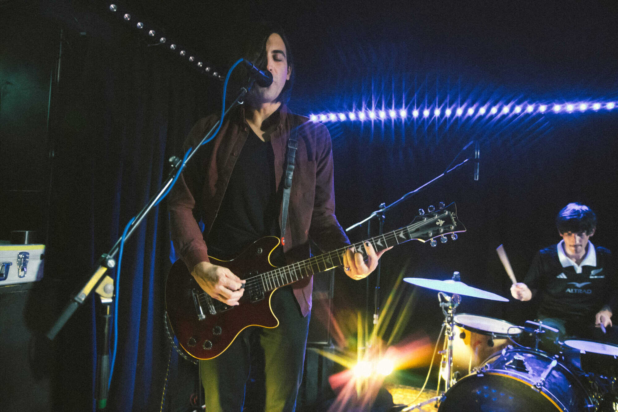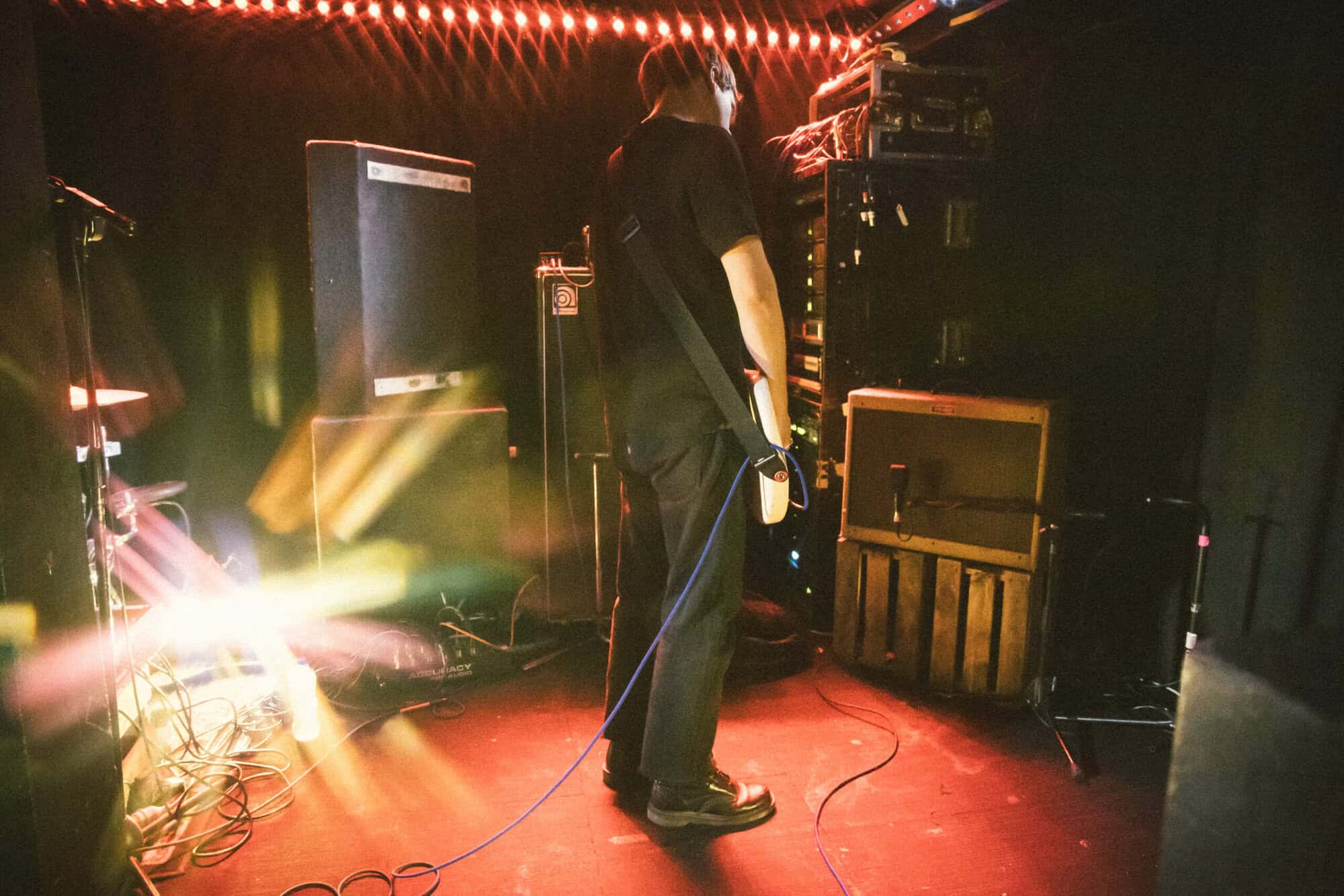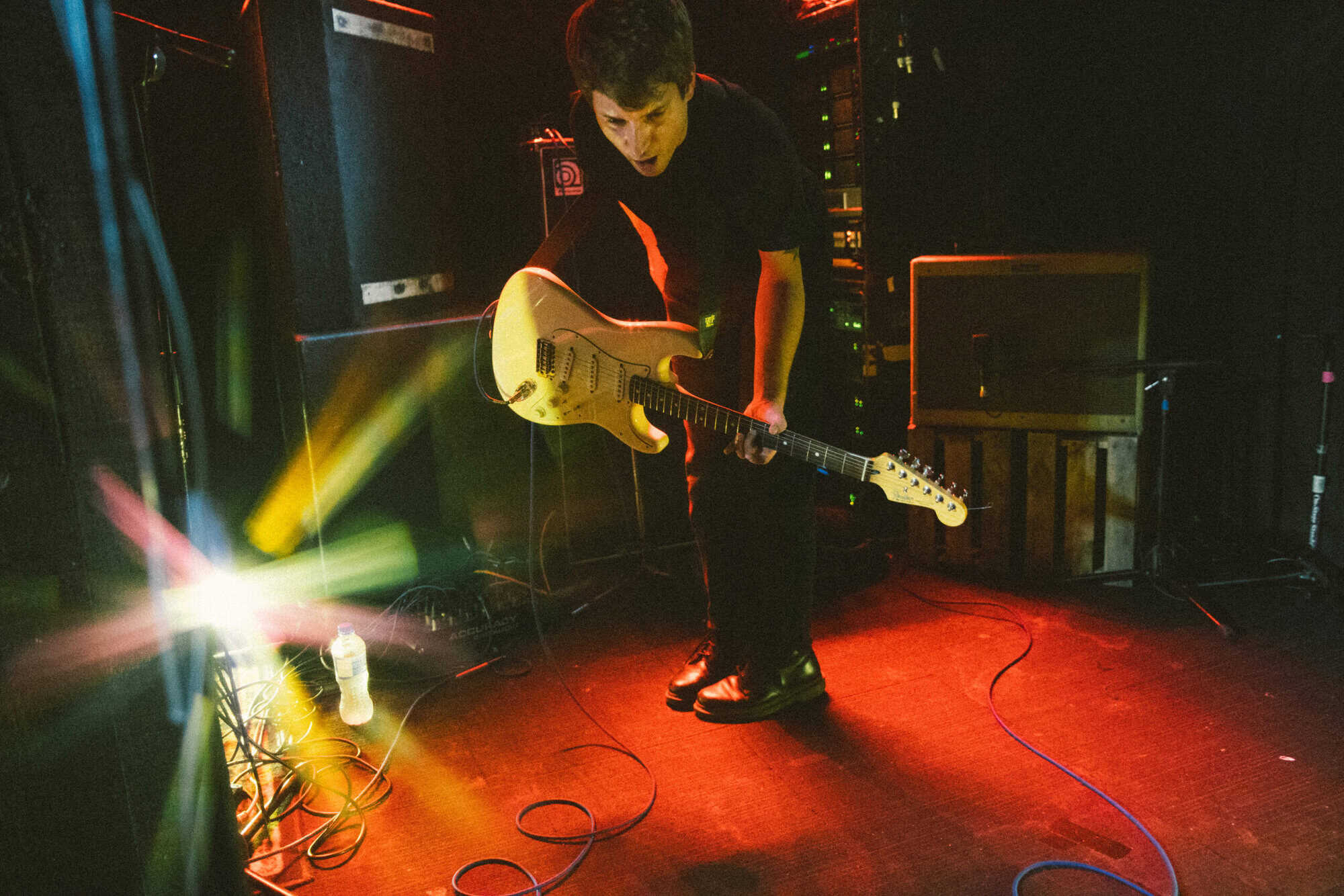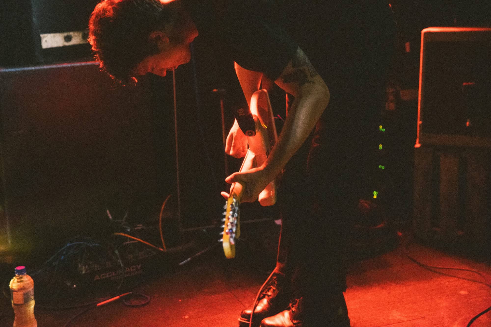 These Venezians start loud, as a wall of sound penetrates the gaps between people, even minus their bassist, their two guitars, drums and sampler are ferocious, perhaps a bass sample is also in the air? There is little dialogue coming from Fernando, like many other brooding acts, it seems the music is the connective missive. From the go, the audience is spellbound. The delivery of fiery psychedelia and post-punk is unrelenting through the next 60 minutes, and those trapped within Whammy’s awful sightlines, are at least able to feed off the eerie introspective tones, being crafted onstage.