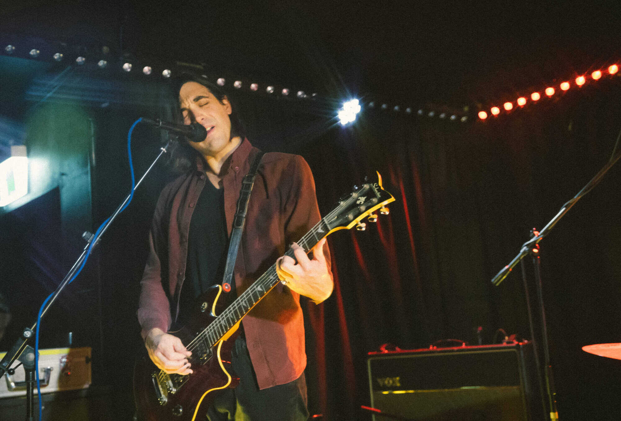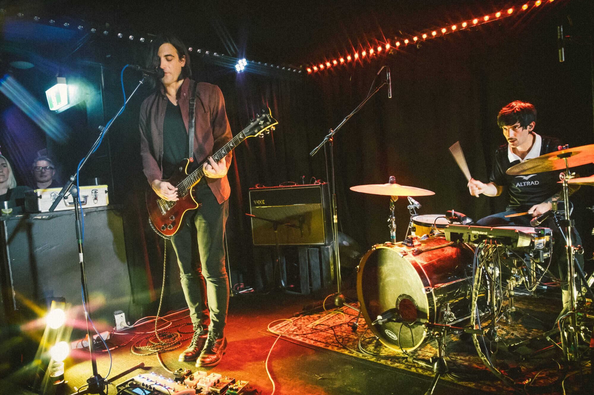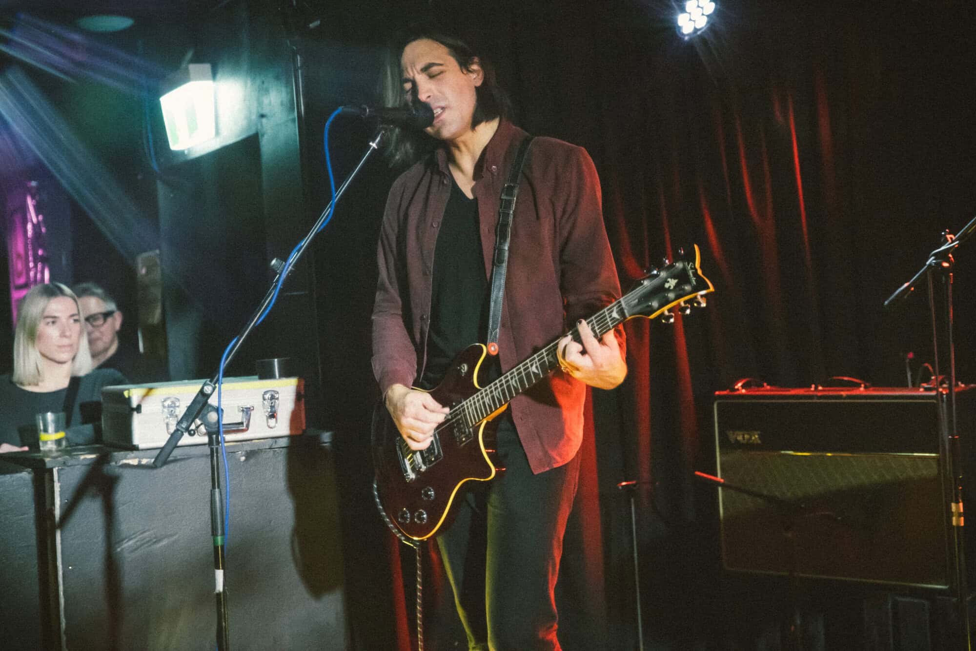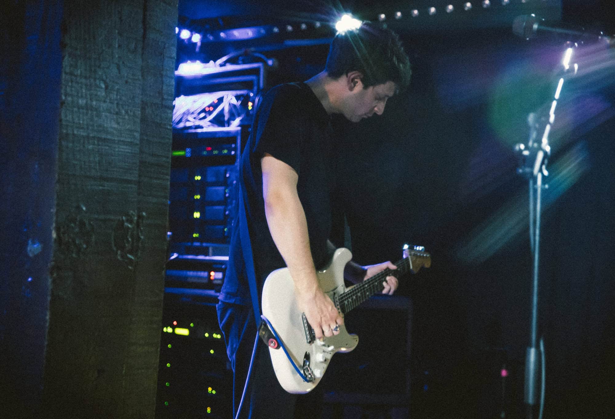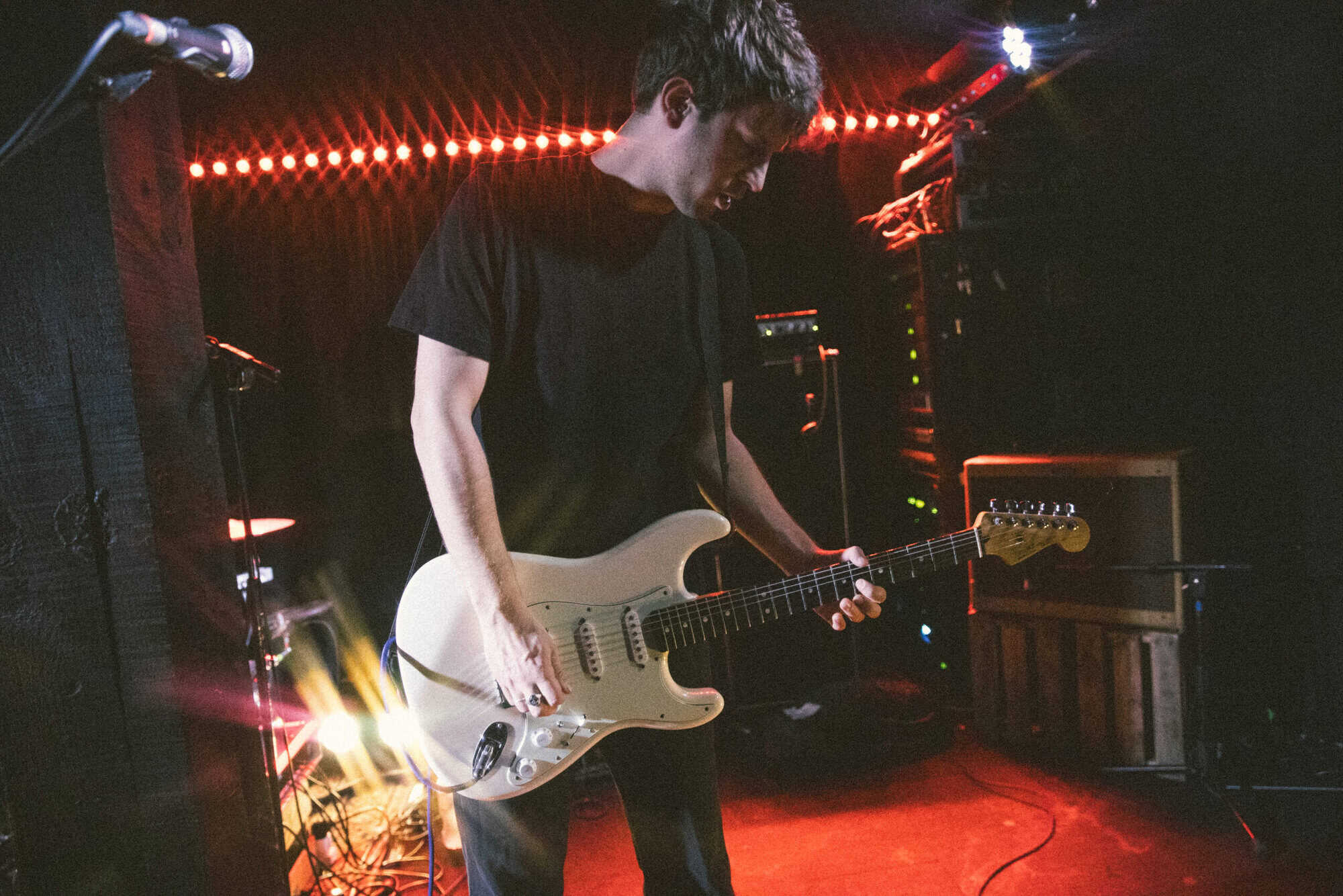 These Venezians start loud, as a wall of sound penetrates the gaps between people, even minus their bassist, their two guitars, drums and sampler are ferocious, perhaps a bass sample is also in the air? There is little dialogue coming from Fernando, like many other brooding acts, it seems the music is the connective missive. From the go, the audience is spellbound. The delivery of fiery psychedelia and post-punk is unrelenting through the next 60 minutes, and those trapped within Whammy’s awful sightlines, are at least able to feed off the eerie introspective tones, being crafted onstage.