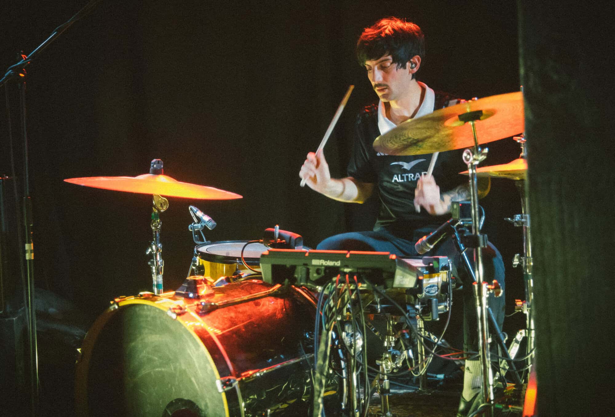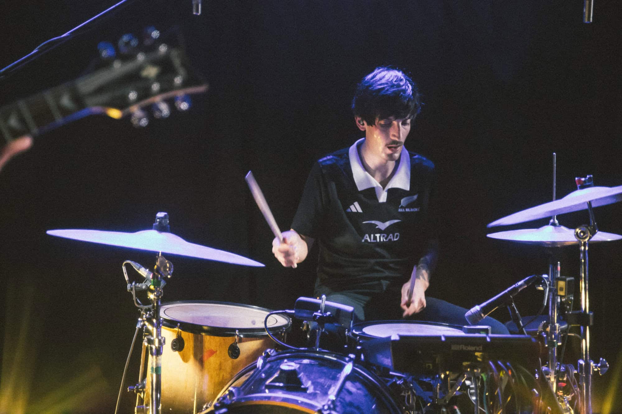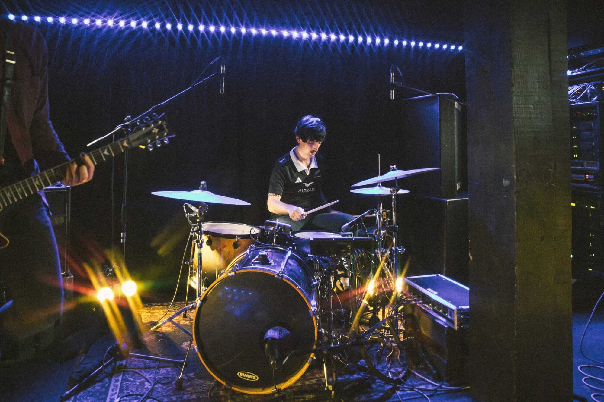 Duo Dorian Noval (drums, vocals) and Nich Cunningham (bass, vocals) have been performing as TOOMS since 2018, musically, TOOMS oscillate between the two onstage, attention switching in song and between songs. There is a sense of (punk) brutalism in their music, and the FLIPPER t-shirt Nich is wearing is a live giveaway as a part of their musical influences. I am pleased when they play my favourite TOOMS song, the one about puppies (still don’t know its title, but Nich usually introduces it as a song about puppies) Not sure if they played Not In Love With The Times, but it’s a great song off their 202 album Fake Teeth.