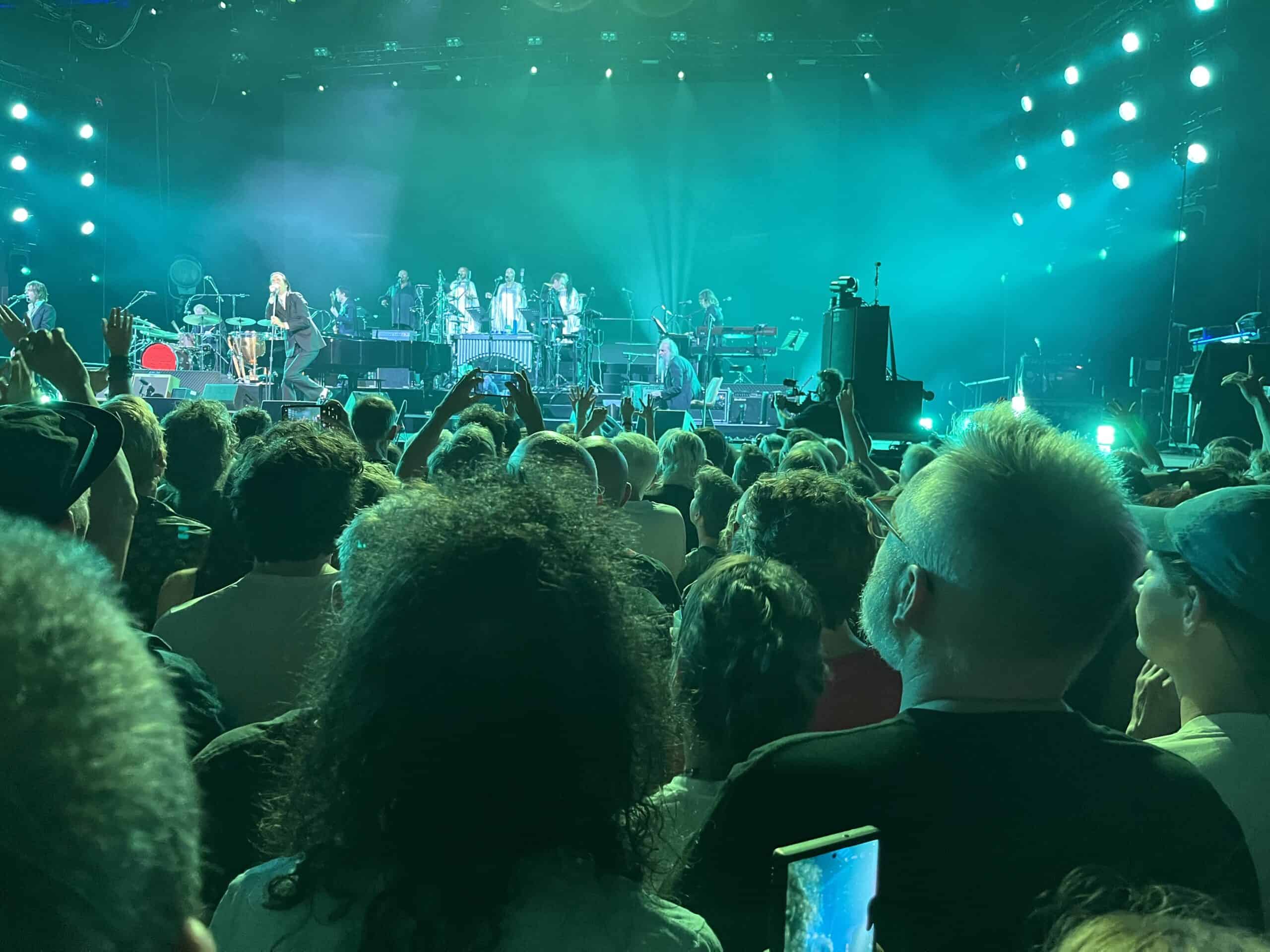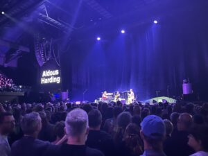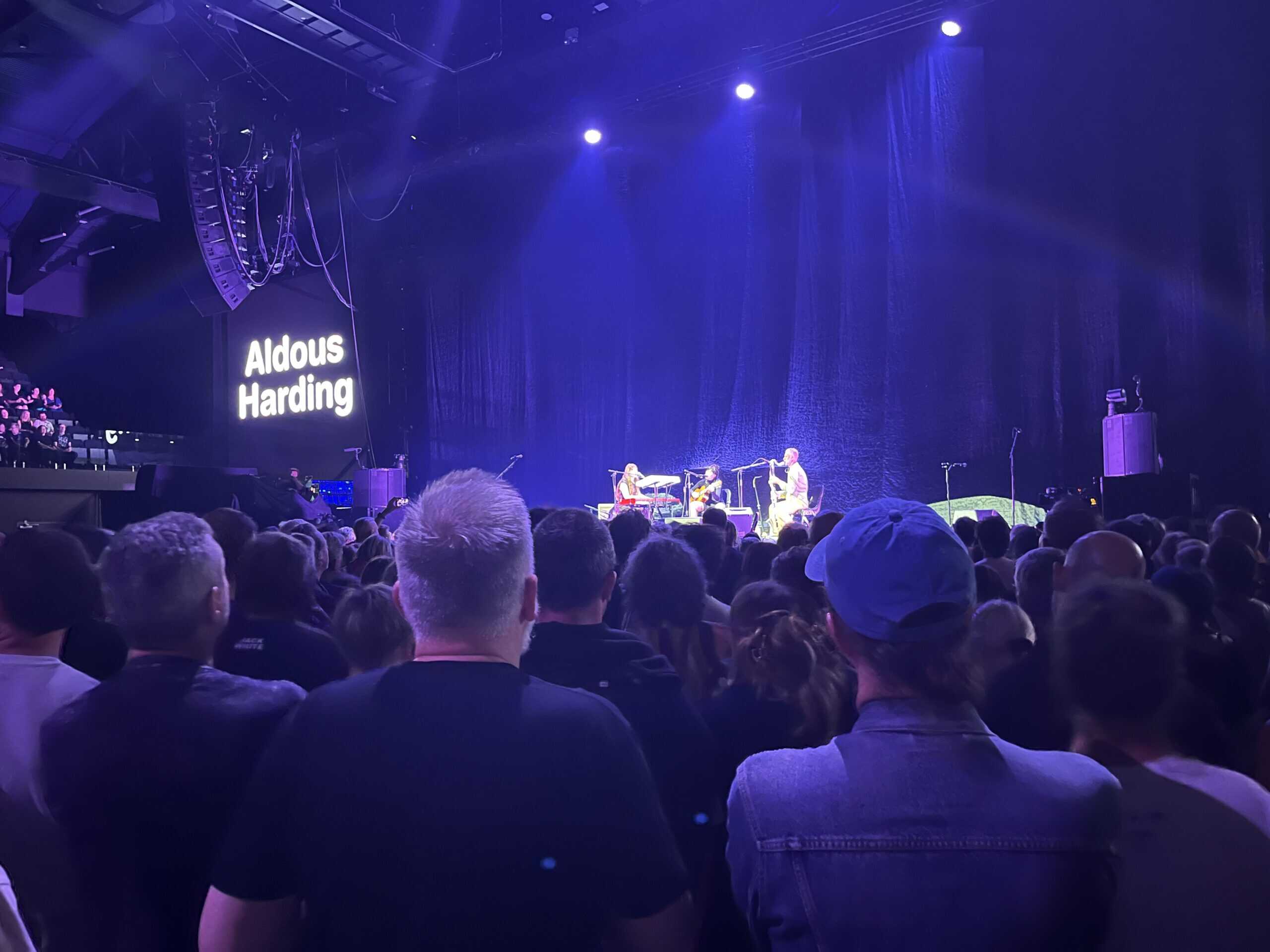 Aldous Harding opened in near minimal conditions: in front of black curtains, with two musicians, and Harding herself dressed in black gym shorts that made her look almost disarmingly everyday. Her brief set of half a dozen songs sat in tension with the arena’s scale. Harding’s voice was precise and close, and what stood out was her ease with awkwardness, the way she allowed silences to stretch between songs, slightly unsettling gaps that felt deliberate and controlled.