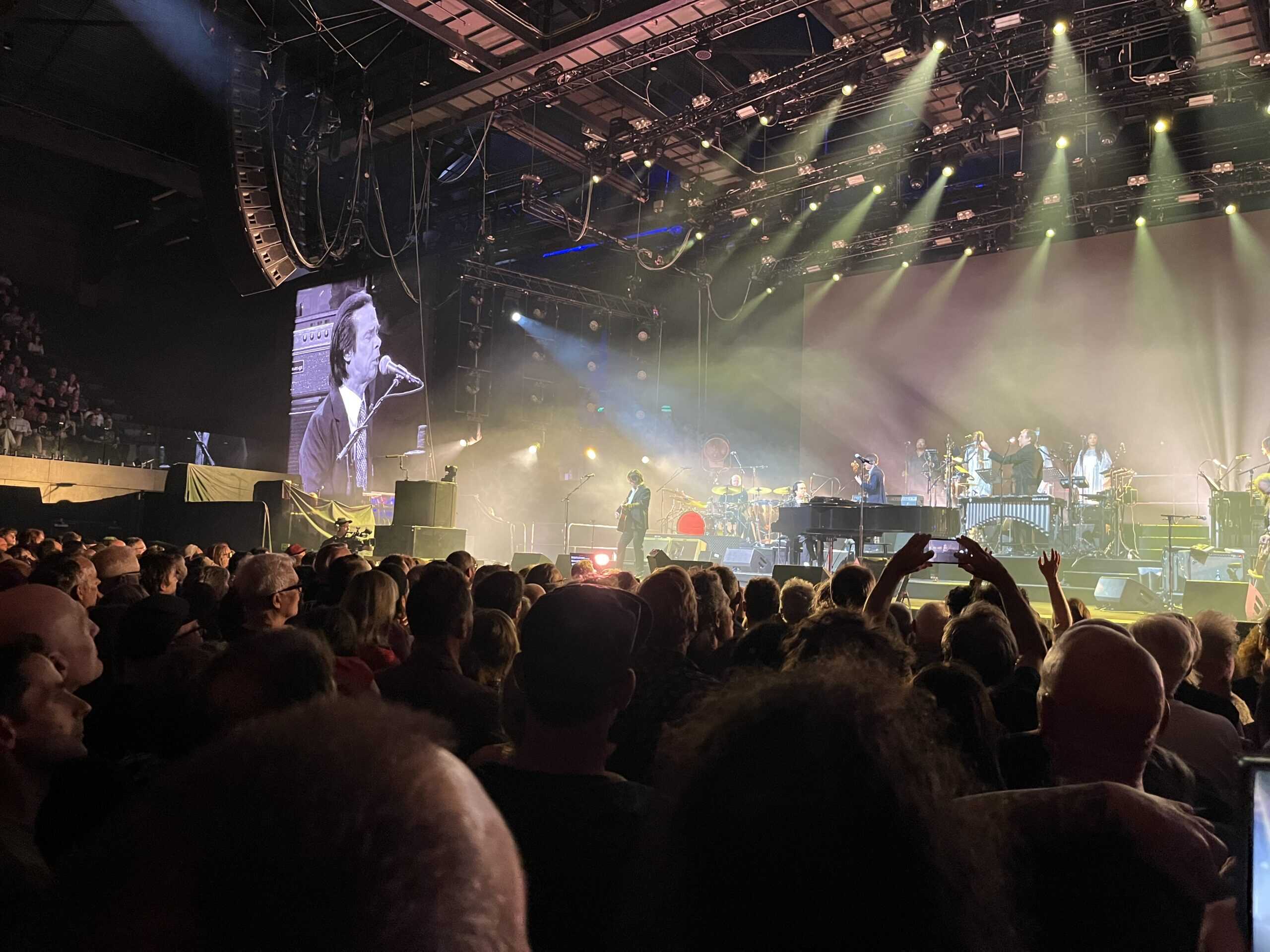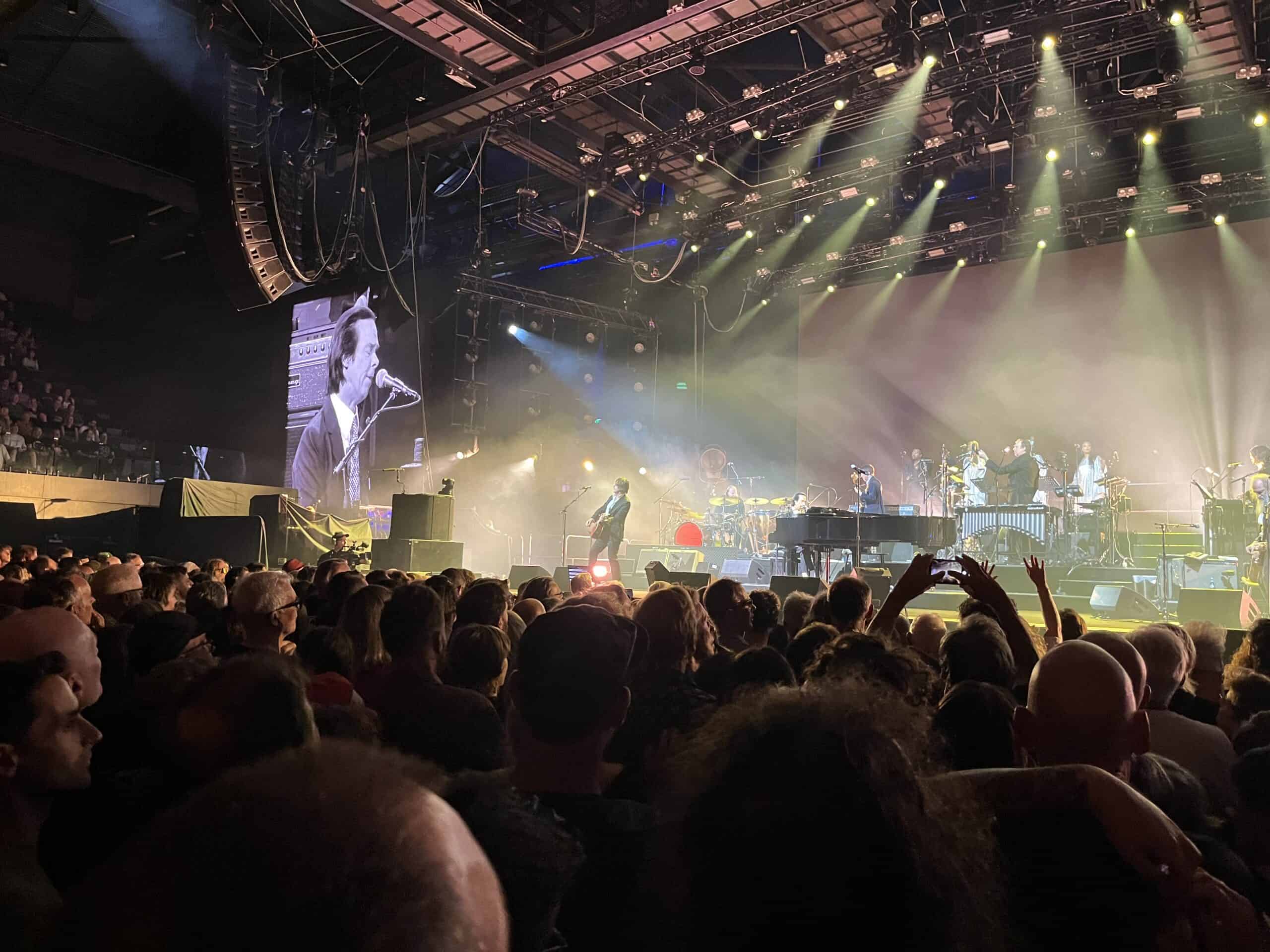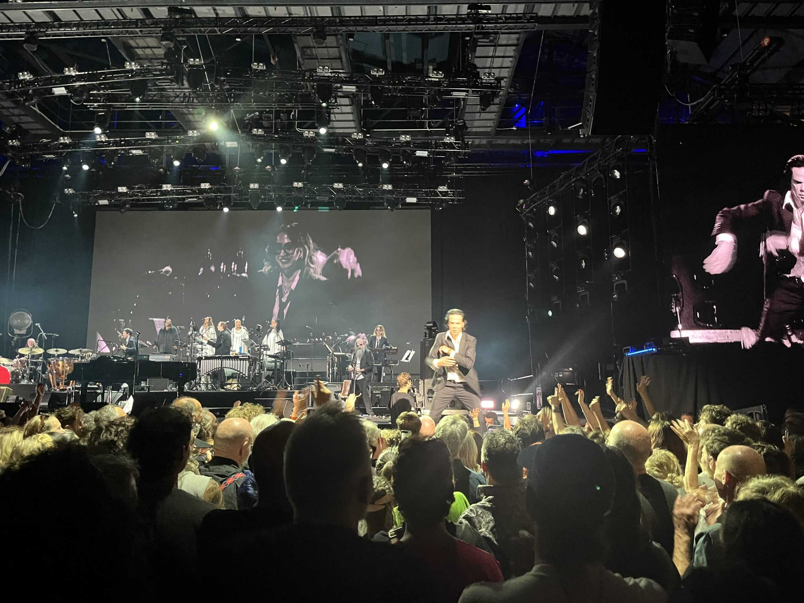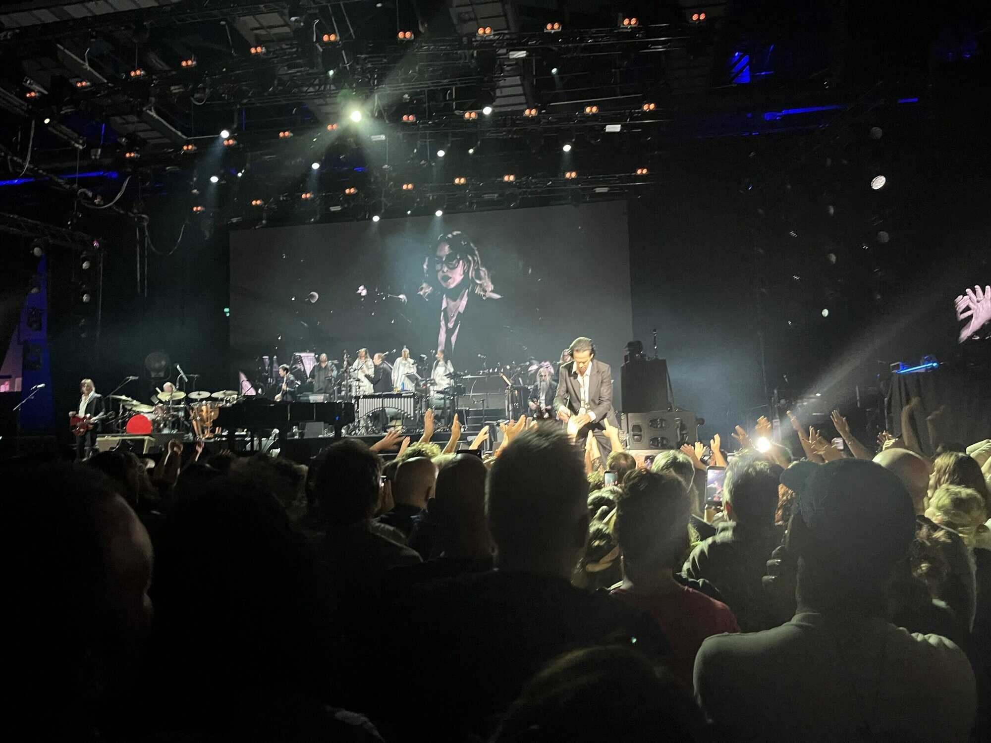 Musically, the set moved in waves. Cave returned to the piano again and again, and some of the evening’s most affecting passages came there. Jubilee Street gathered slowly into something vast. Cinnamon Horses held the arena in a fragile stillness as synths rose behind him. The familiar swing of Red Right Hand brought the room into singalong, while The Mercy Seat expanded from piano rumble into thunder. Other moments hinted at the band’s depth: layered harmonies and rhythmic shifts that made each transition feel purposeful, each arrival full-bodied.