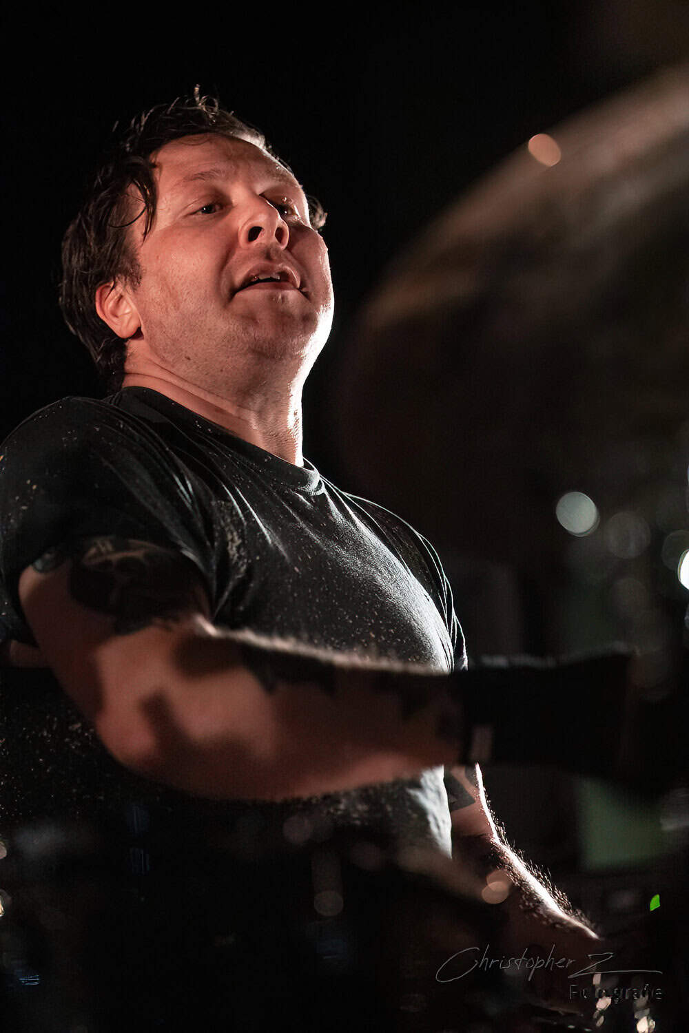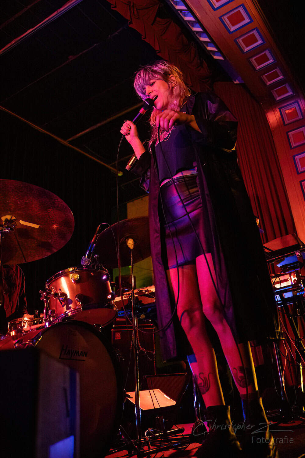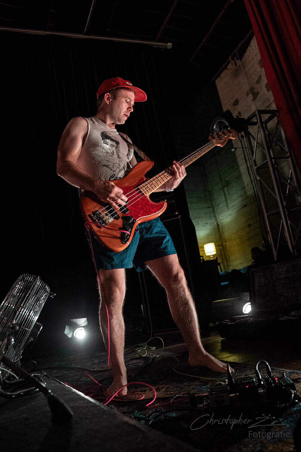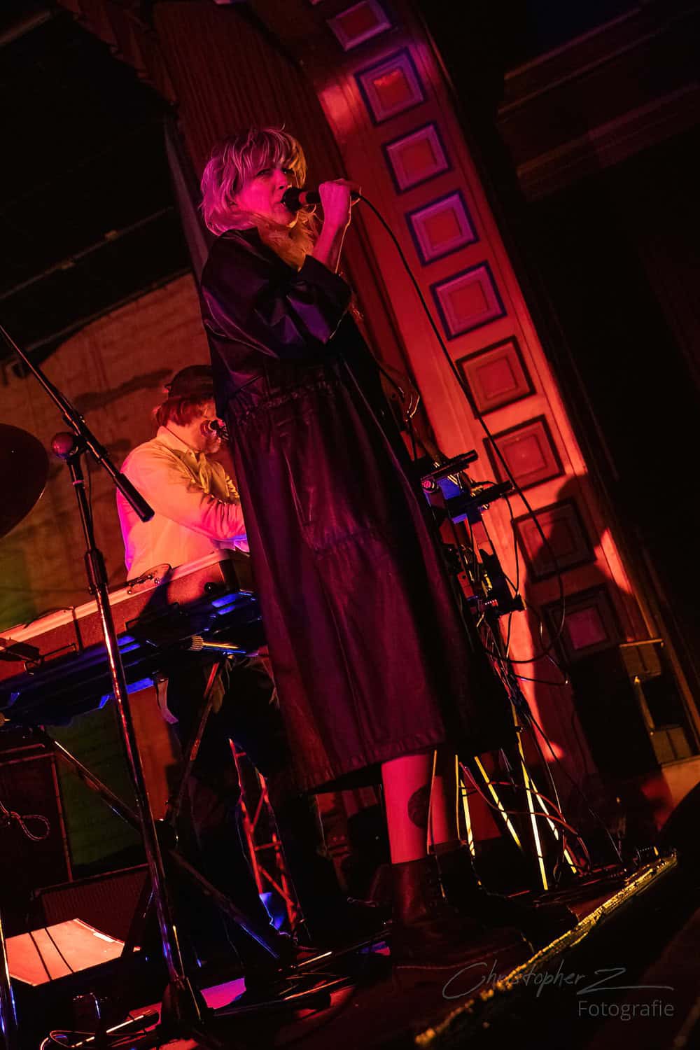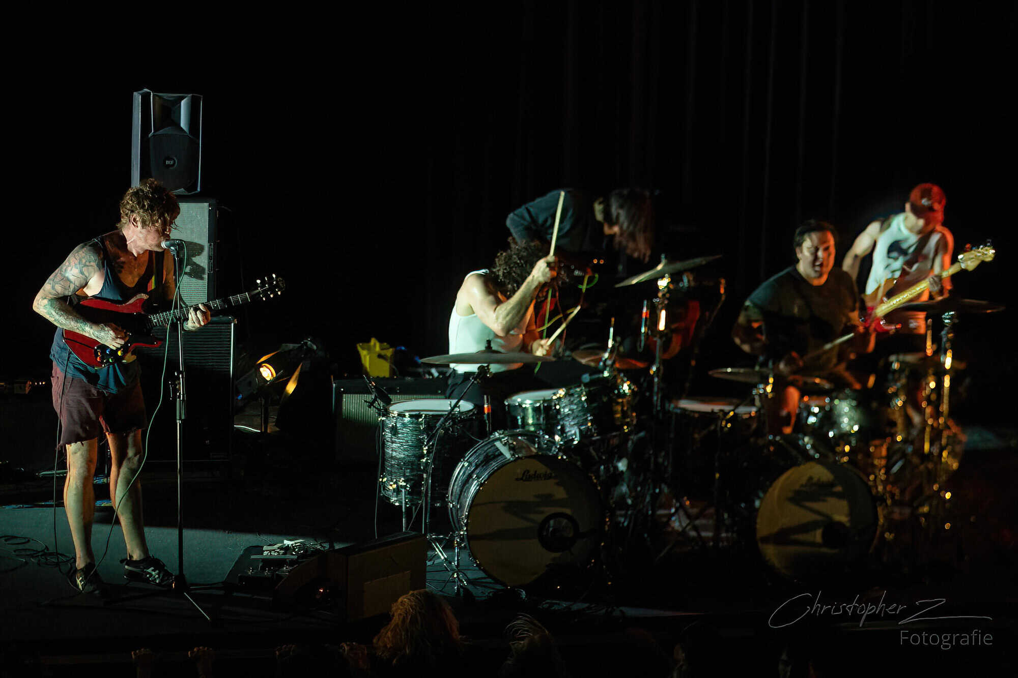 Visually the two-drummer setup is stunning (I remember seeing The Fall and Melvins do the same) thankfully, fears that drummers Dan Rincon and Paul Quattrone will mimic rather than buttress each other are quickly allaid. Playing in-tandem since 2017, they are in-tune, each bringing something different to the table, and with Tim Hellman in on the act on bass, there is a resolute back-beat creating texture and coarseness in the room. There is frenzy, mid set I swear to you that I could’ve been at a Half Japanese or Black Flag hall gig in the 80’s heyday of punk, though the moshpit centre stage is perhaps a little less macho.