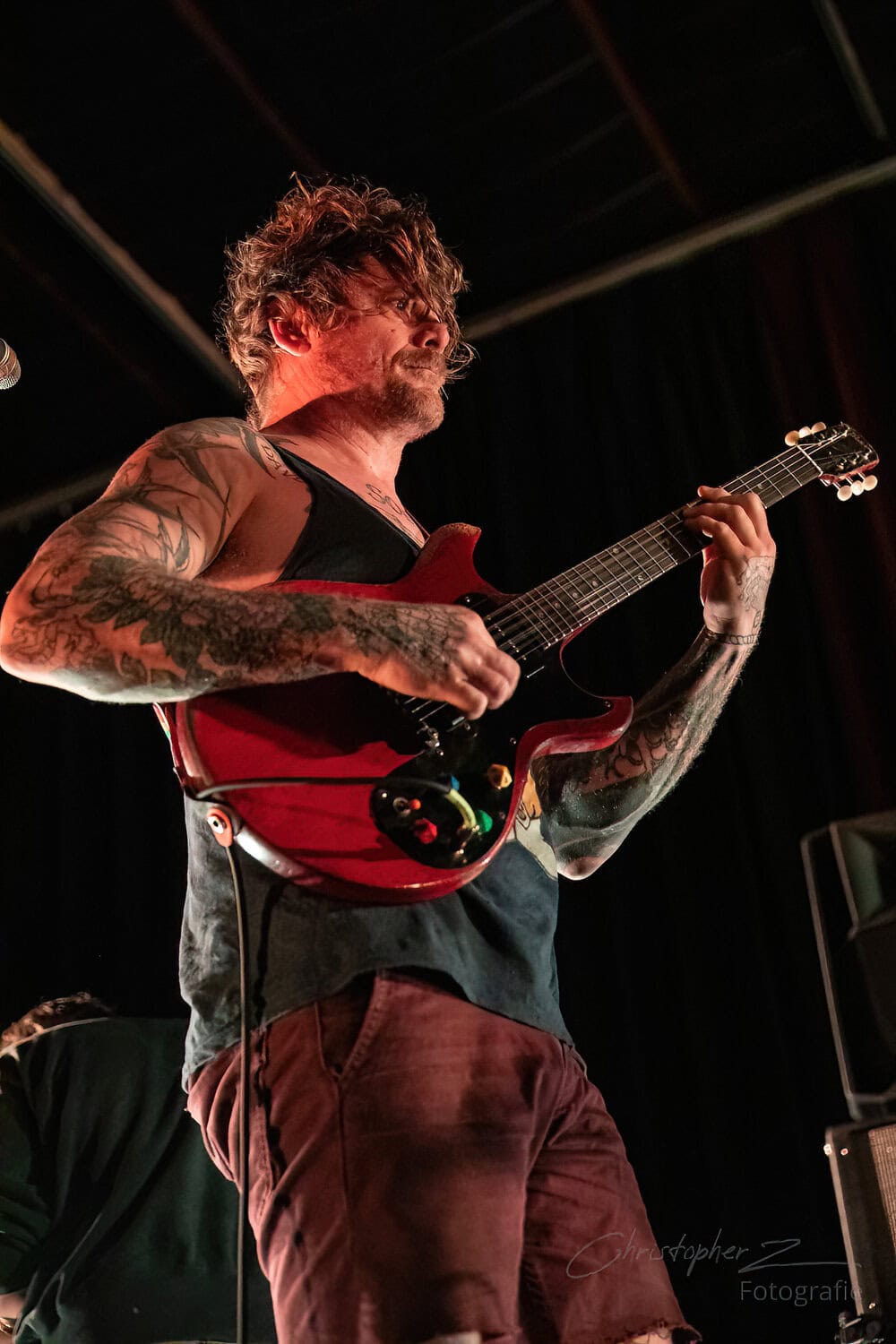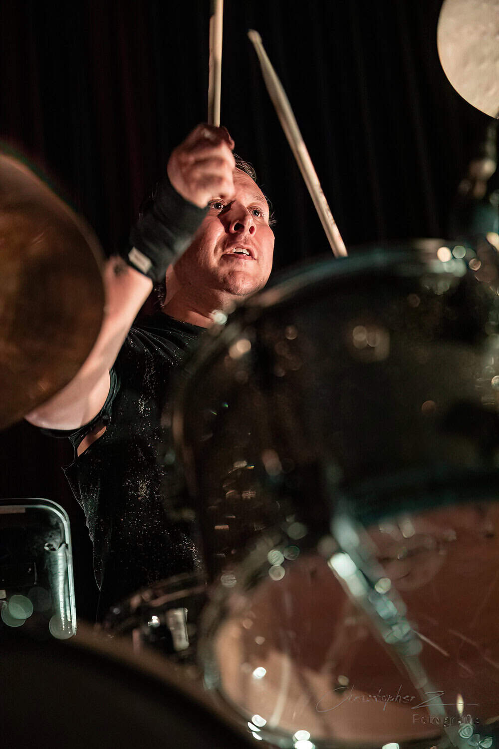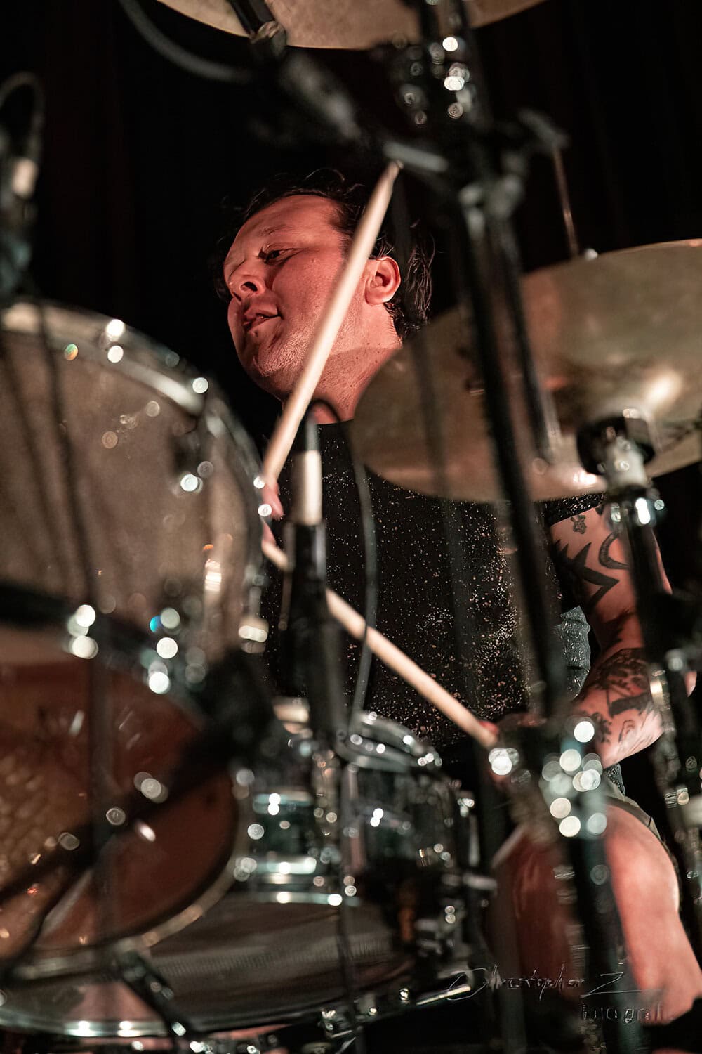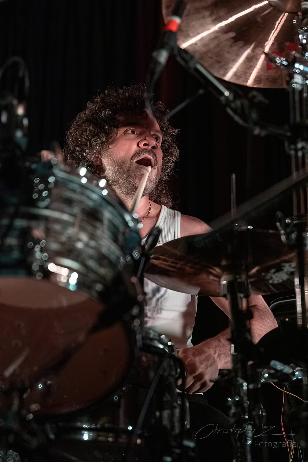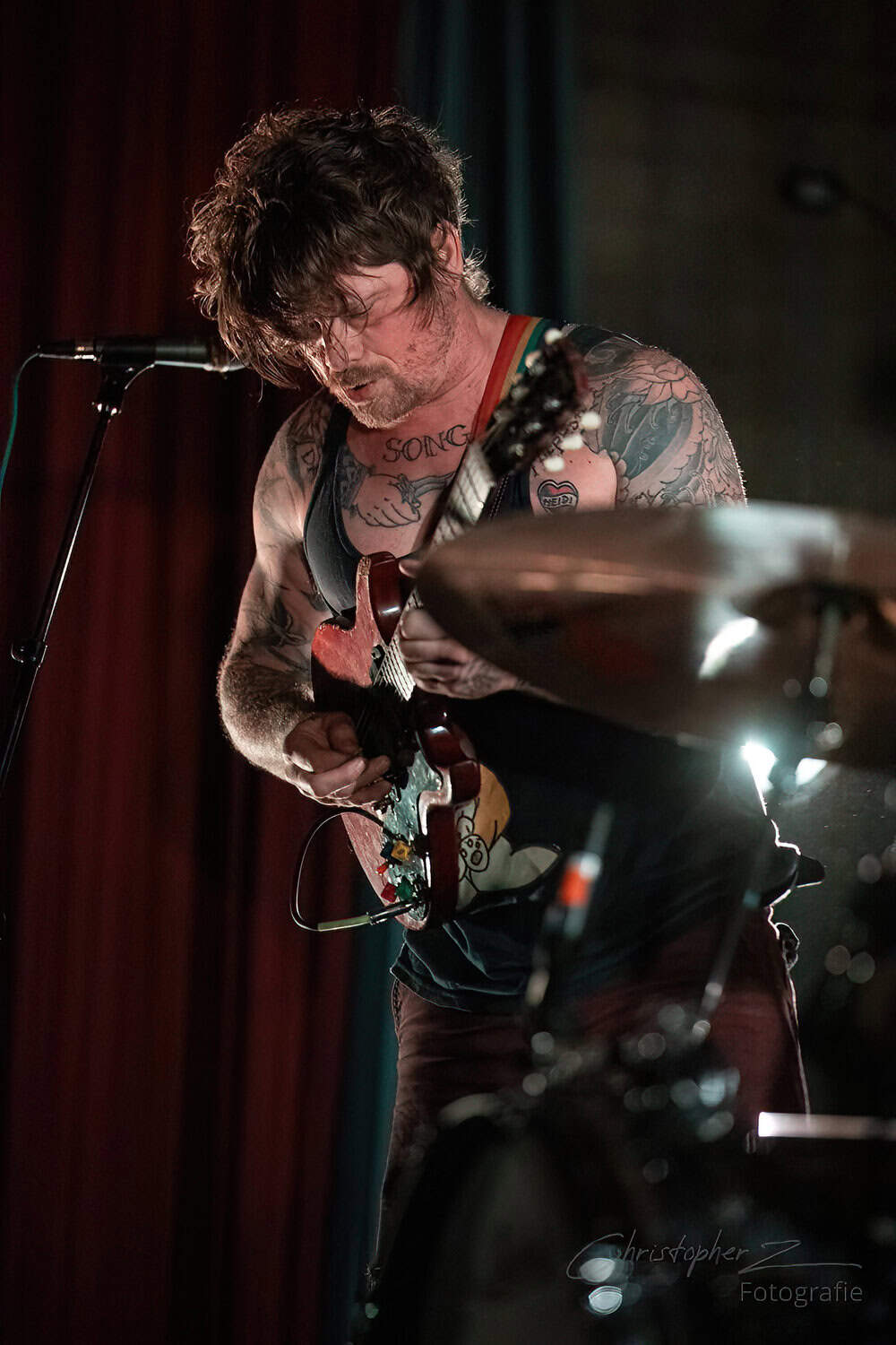 Visually the two-drummer setup is stunning (I remember seeing The Fall and Melvins do the same) thankfully, fears that drummers Dan Rincon and Paul Quattrone will mimic rather than buttress each other are quickly allaid. Playing in-tandem since 2017, they are in-tune, each bringing something different to the table, and with Tim Hellman in on the act on bass, there is a resolute back-beat creating texture and coarseness in the room. There is frenzy, mid set I swear to you that I could’ve been at a Half Japanese or Black Flag hall gig in the 80’s heyday of punk, though the moshpit centre stage is perhaps a little less macho.